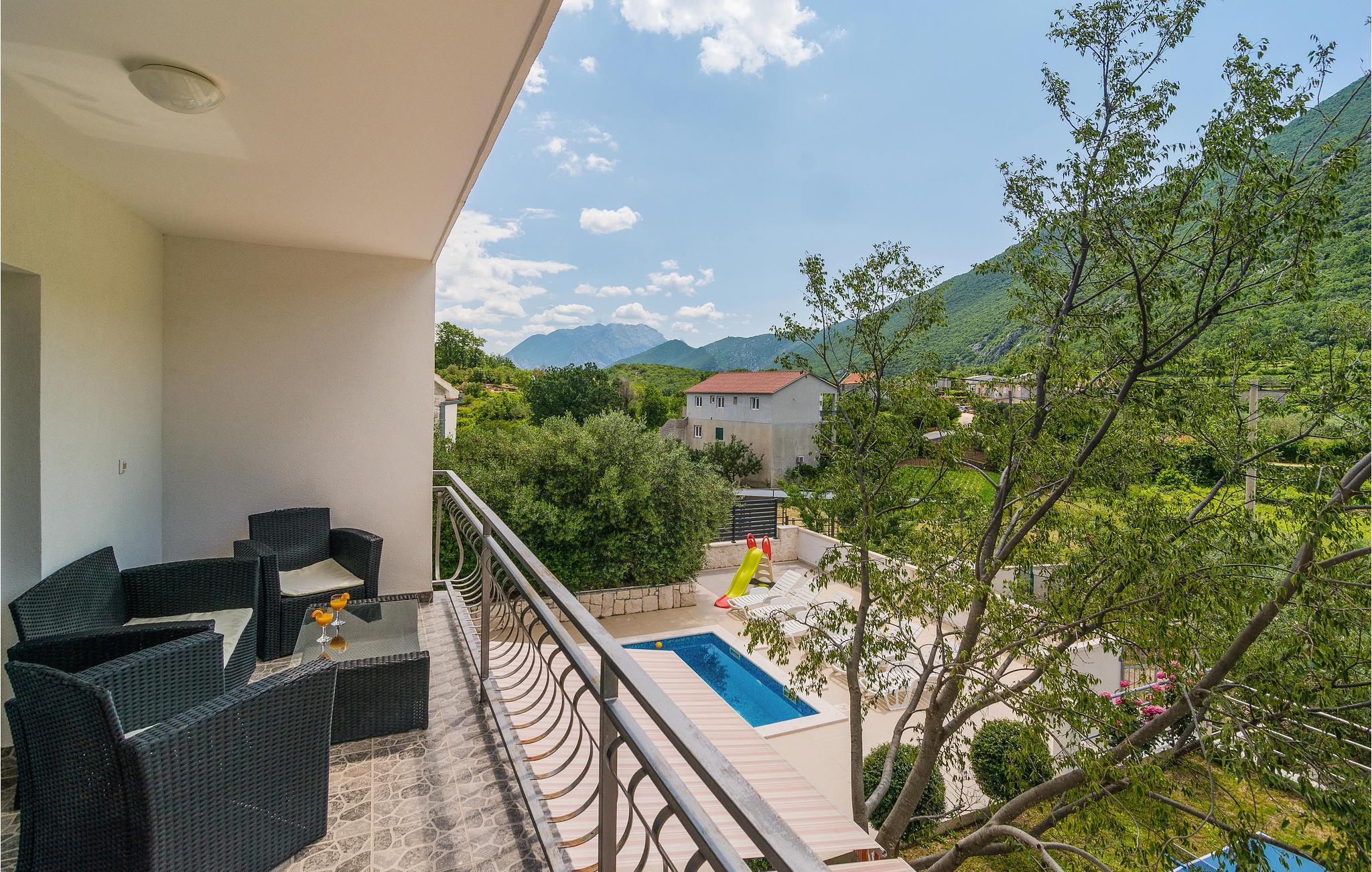 I Omis' bagland ved siden af floden Cetina og i den lille by Kucice ligger dette venligt indrettede halve dobbelthus. Fra hovedindgangen på nordsiden kommer i op på 1. sal, hvor der er et køkken og en dagligstue med terrasse. Til 2. sal kommer I ad indendørs trapper, her ligger soveværelserne og en terrasse med udsigt over landskabet. Stueetagen og poolområdet kan nås ad udendørs trapper. Ved siden af parkeringspladsen er der en overdækket terrasse med sommerkøkken og et glasdækket område med havemøbler, hvor I kan tilbringe mange hyggelige timer i det fri. Se byen Omis, der er rig på muligheder for underholdning og sport såsom cykling, rafting og zipline.