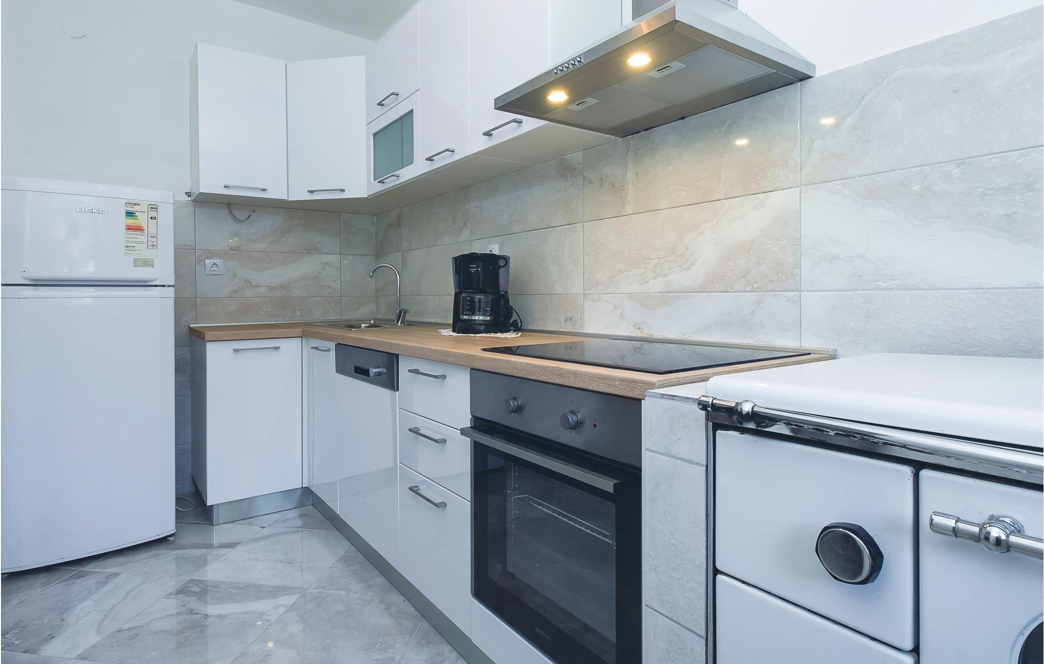 I Omiš bagland, i landsbyen Kucice nær Cetina slugten ligger dette feriehus i tre etager. I stueplan ligger det godt udstyrede køkken og en stue. En udendørs trappe fører op til første og anden sal, der er forbundet via en vindeltrappe. De fire soveværelser ligger på øverste etage med en laveste loftshøjde på 150 cm – der er skråvægge. En 35 m lang sti, der forløber bag ejers andet hus, fører til swimmingpoolen med terrasse til solbad, en udendørs whirlpool og en pavillon med en betagende udsigt over slugten og landskabet. En rigtig god feriebolig til en familie eller venner der gerne vil være sammen i ferien og nyde de lange kroatiske sommerdage. Prøv at rafte på floden Cetina, hvilket husejeren kan arrangere mod merpris og kast jer ud i de mange former for sommerunderholdning i Omiš. Tre klimaanlæg er begrænset til 35 timer om ugen.