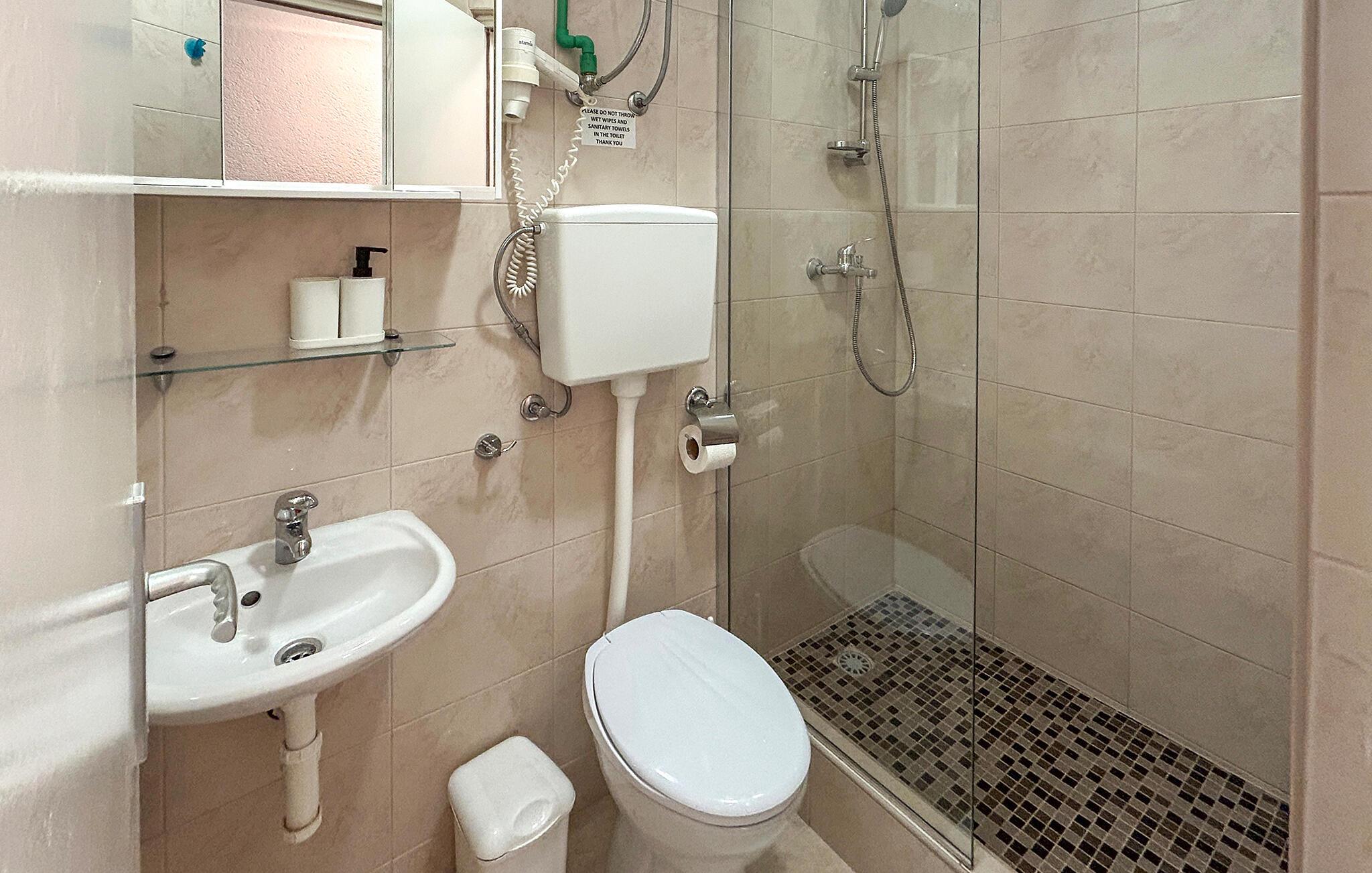 - WC. Varmt og koldt vand, Bruser