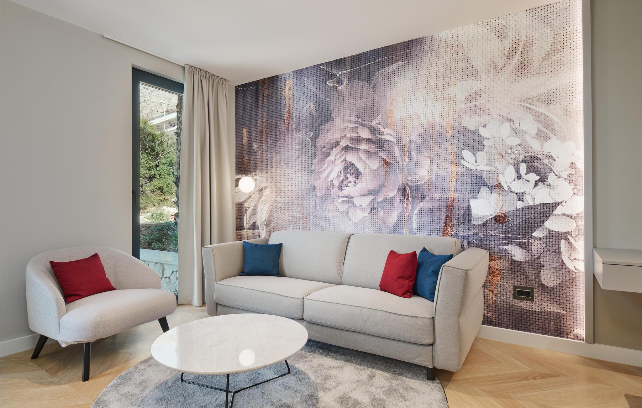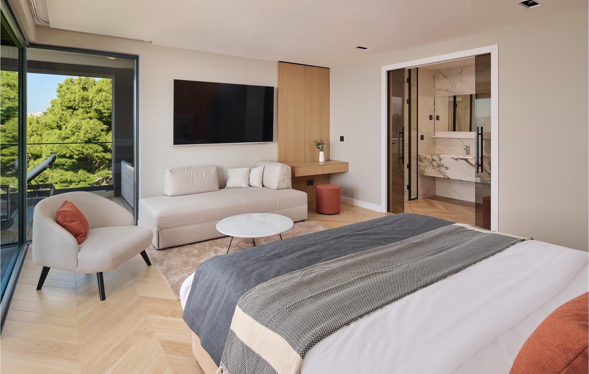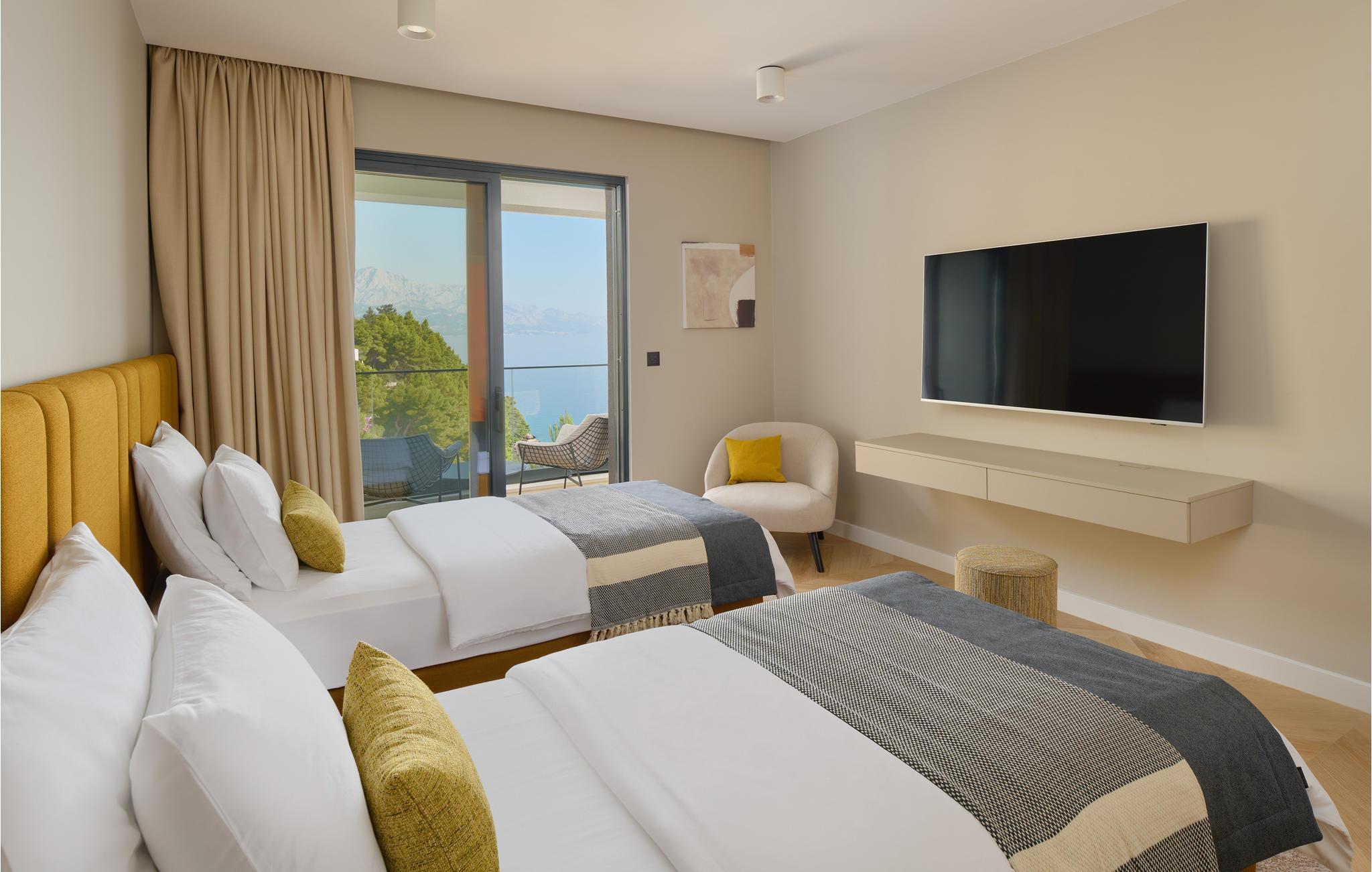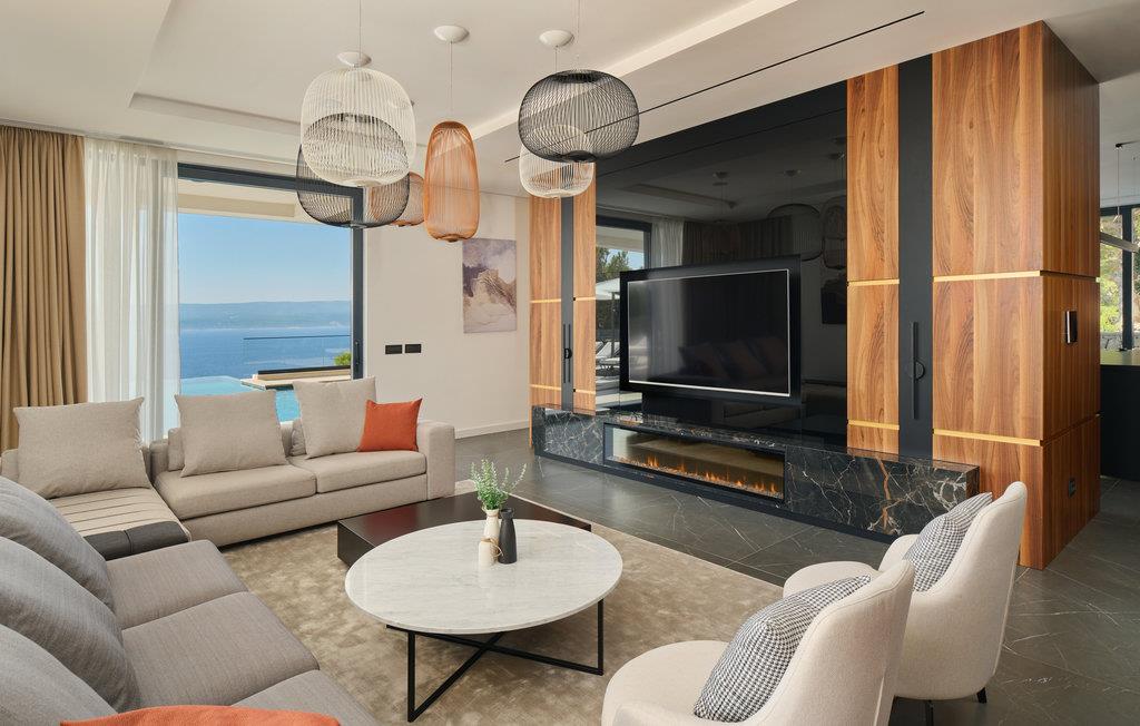 På den store terrasse kan I nyde en betagende panoramaudsigt over havet og de omkringliggende bakker. Infinity-poolen synes at smelte problemfrit sammen med det dybblå hav, som om himmel og vand er ét. Slap af på de stilfulde liggestole under parasollerne eller afslut dagen med en forfriskende drink i loungeområdet.