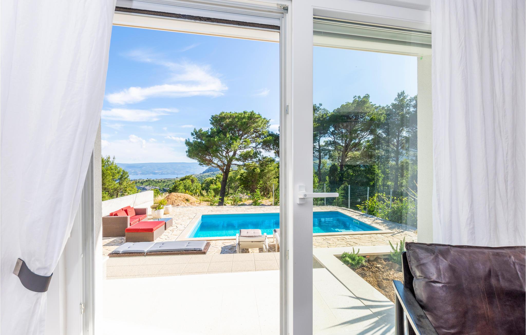 Dette dejlige feriehus ligger over slugten med floden Cetina, med en uforglemmelig og betagende panoramaudsigt over havet, øerne og bjergene i Mellemdalmatien - her er det ikke svært at glemme alt om hverdagen derhjemme, når øjnene fortaber sig i udsigten.