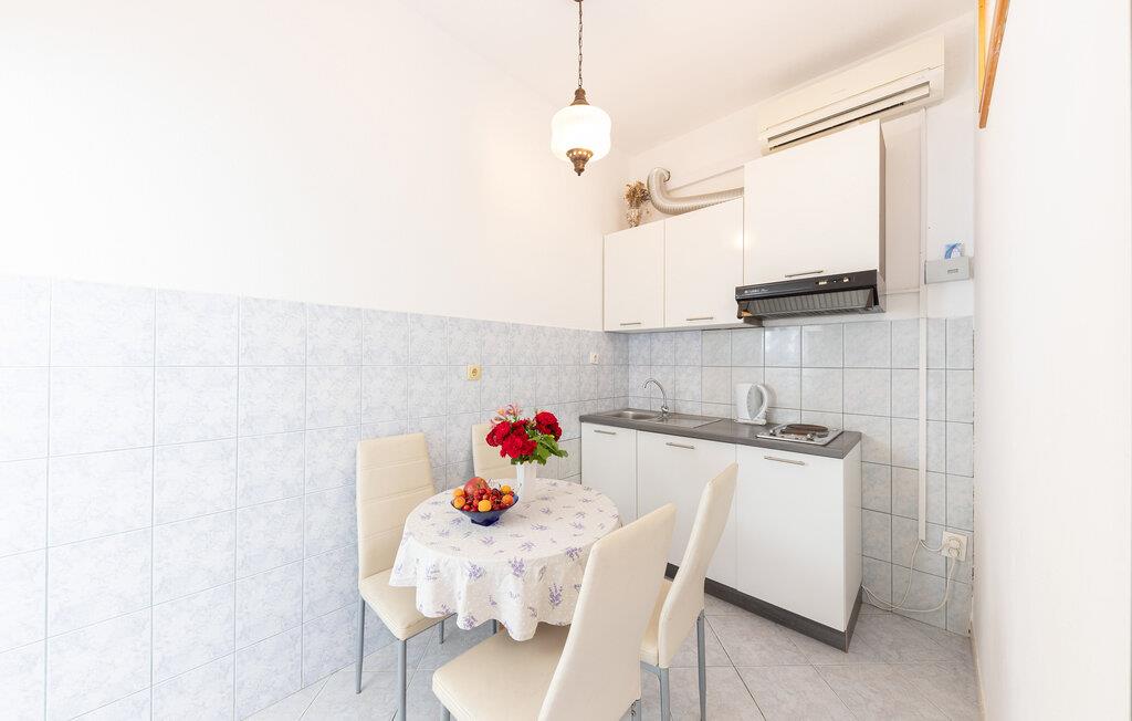Kun få skridt fra stranden inviterer denne velholdte ferielejlighed til en afslappende pause. Tilbered lækre retter i det moderne køkken og sæt jer ved det indbydende spisebord. Efter en lang dag kan I slå jer ned i sofaen, fordybe jer i en god bog eller have en hyggelig spilleaften.