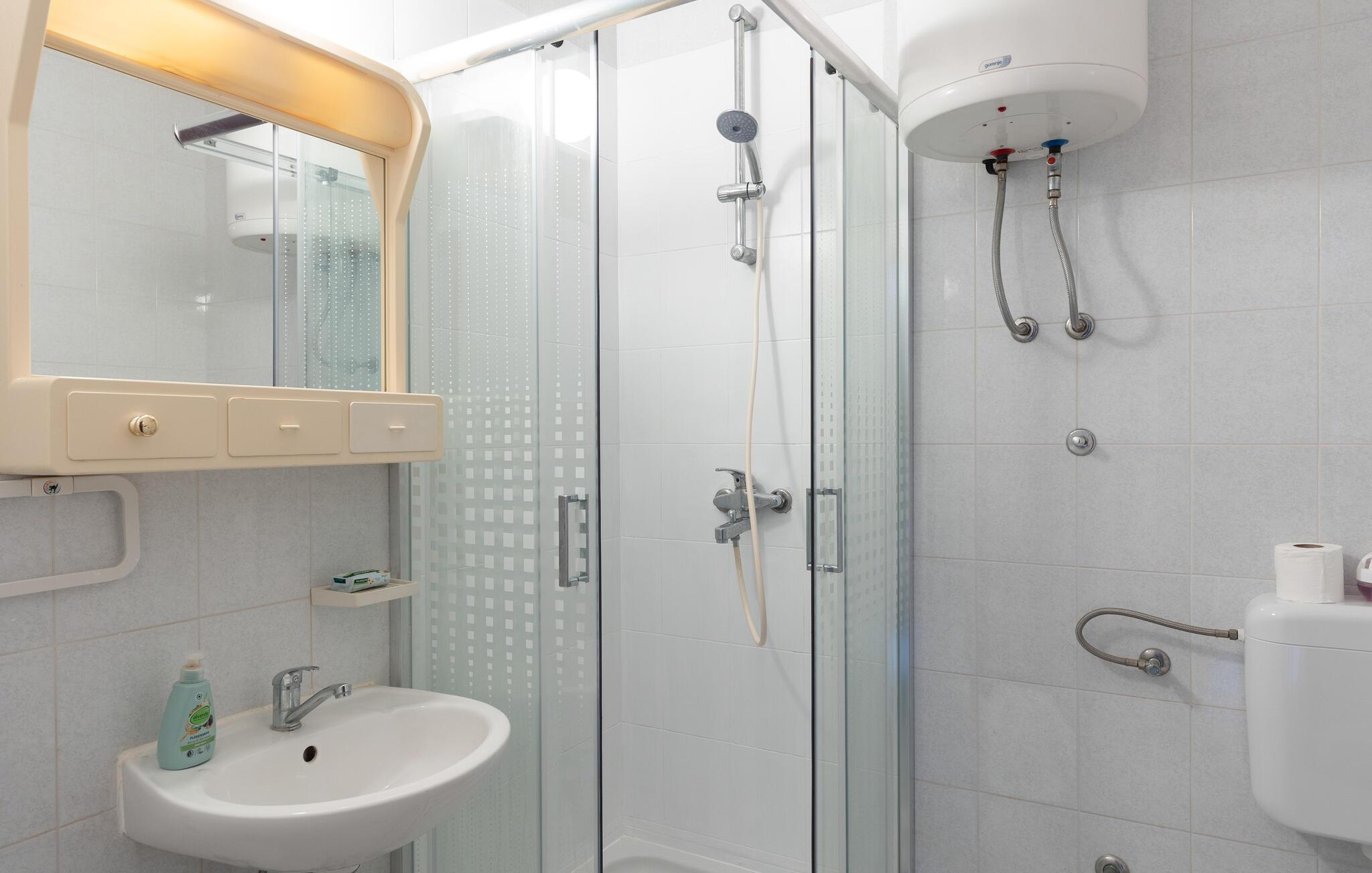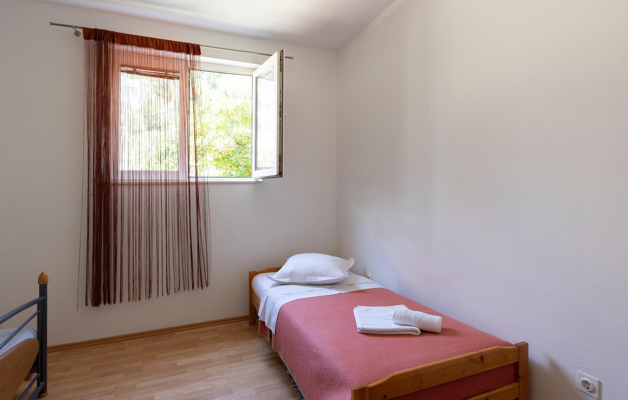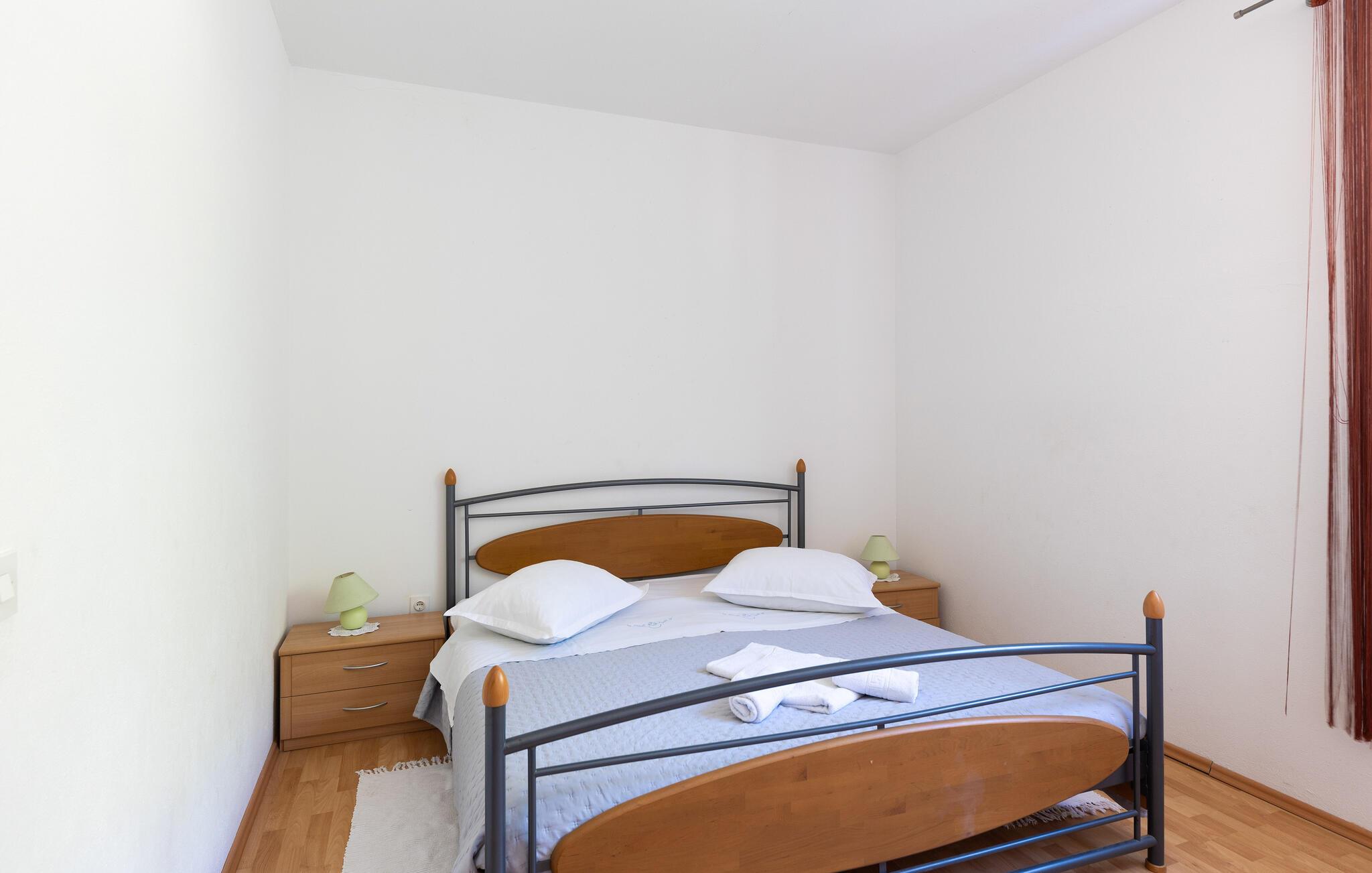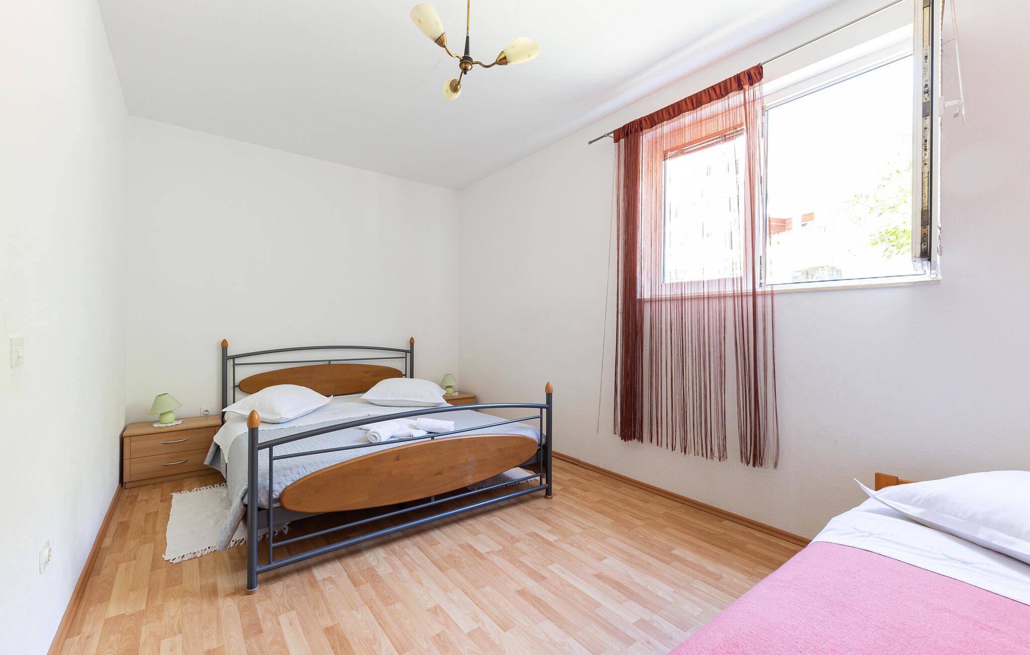Denne lyse og velholdte ferielejlighed ligger kun nogle få skridt fra Adriaterhavets turkisblå vand. Tryll lækre måltider frem i det åbne køkken, lad den behagelige brise strømme gennem værelserne under måltiderne og sæt jer til rette til en spilleaften på sofaen.