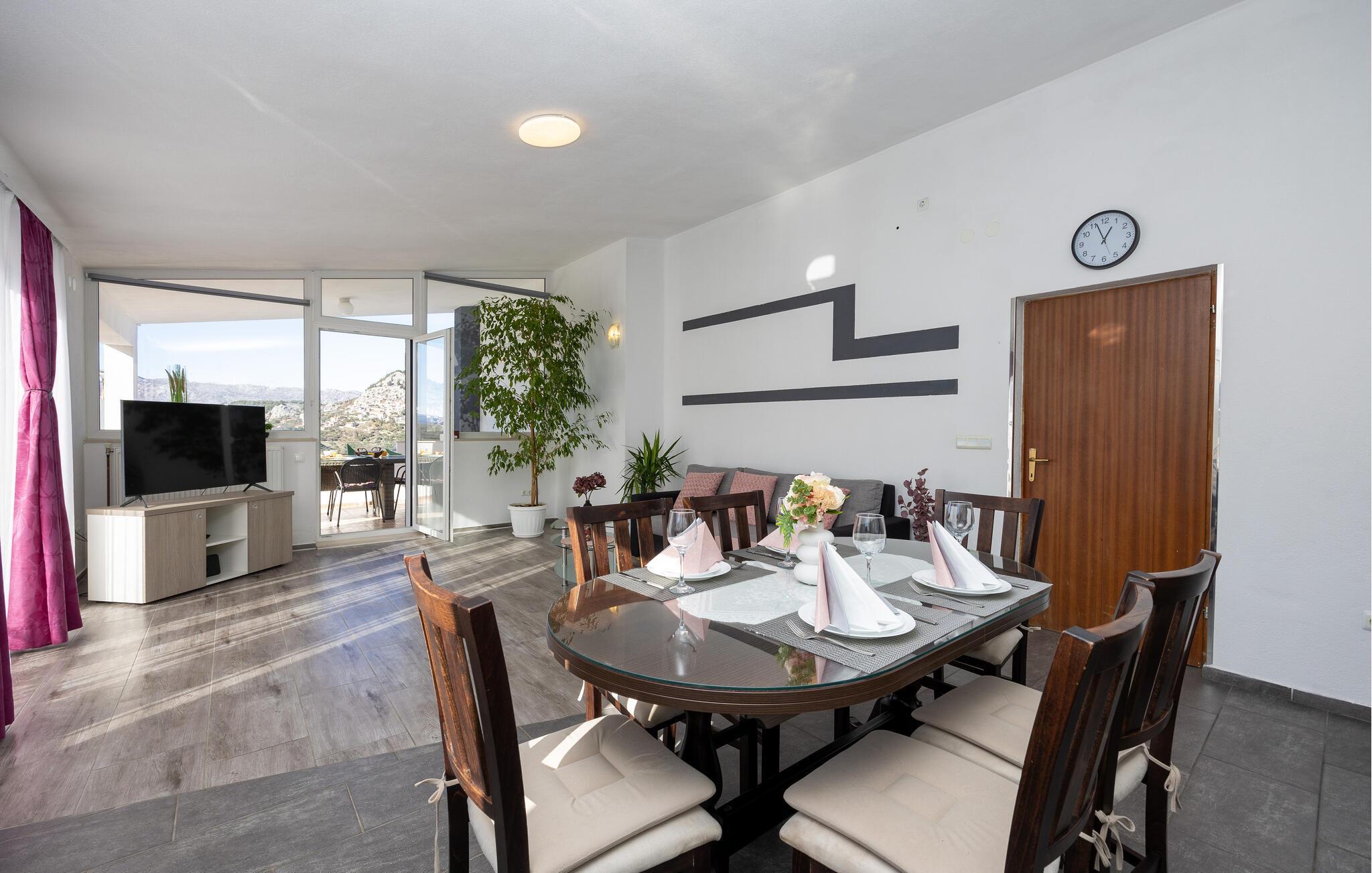 Velkommen til Slime, et sted nær både den vilde flod Cetina og Adriaterhavet. Lejligheden har en ideel beliggenhed for dem, der elsker udendørs aktiviteter. I kan fx både bade i- og rafte på floden. Langs floden op i kløften er der idelle betingelser for smukke vandreture, og de omkringliggende naturparker, såsom Biokovo-bjergene, er også perfekte til dette.
