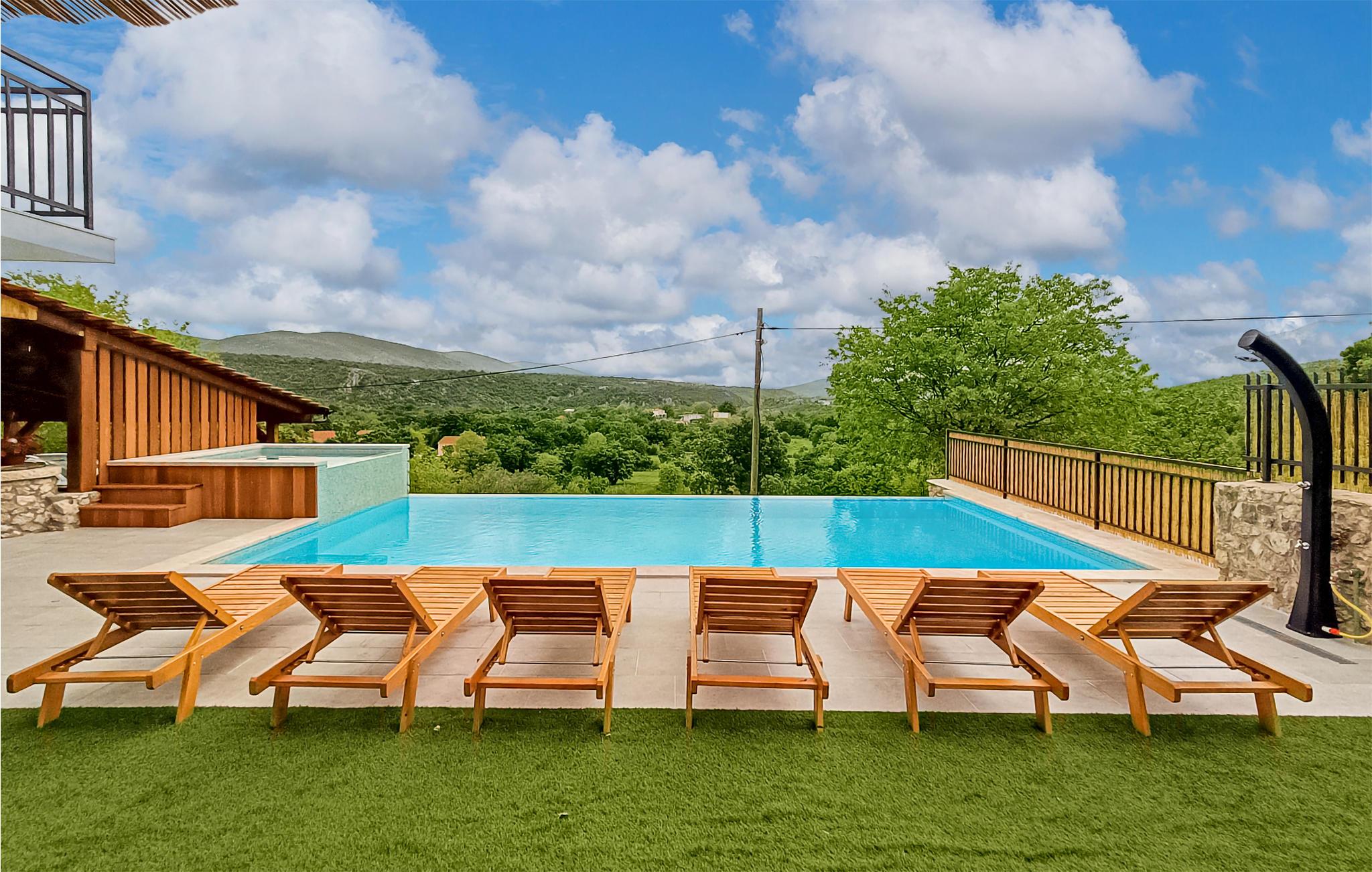 Kom væk fra det hele og slap af i dette store feriehus med swimmingpool i Srijane. Dette rummelige feriehus på to etager byder jer velkommen nær Prancevici reservoiret. Med høj standard og indbydende komfort vil I hurtigt gøre huset til jeres andet hjem. Føl jer godt tilpas her og slap af i den store stue, mens I laver mad, leger eller slapper af. I kan også bruge timer på at grille og spise på verandaen og sole jer i solen i jeres private swimmingpool. Mens I forfrisker jer i vandet, kan I se jeres børn boltre sig og lege i haven. Oplev reservoiret på vandre-, vandre- og cykelture, og oplev en bred vifte af vandaktiviteter langs Cetina-floden, såsom rafting. Oplev vandets kraft og de vidunderlige udsigtspunkter med udsigt over landskabet, mens I vandrer langs ådalen. Besøg også den populære badeby Omis, hvor Cetina løber ud i Adriaterhavet. Nyd den smukke strand og det vidunderlige bjergpanorama, der bygger sig op bag husene. Nyd en begivenhedsrig og på samme tid afslappende ferie i Dalmatien!