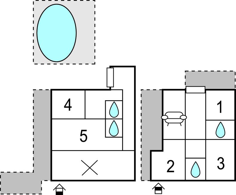 Det smukt og moderne indrettede hus er et ideelt valg for to familier eller vennegrupper, der ønsker at tilbringe deres ferie sammen. Huset strækker sig over to etager, hver med sin egen indgang. På første sal er der en stue med køkken, tre soveværelser og to badeværelser. Fra første sal går stien ned til stueetagen, hvor der er yderligere to soveværelser med badeværelser.