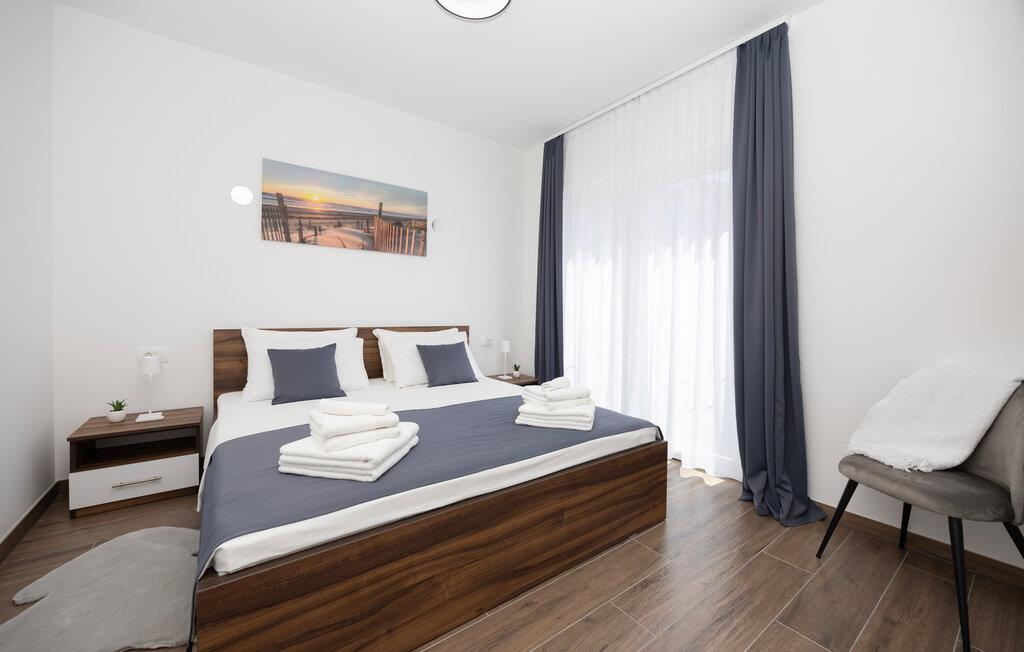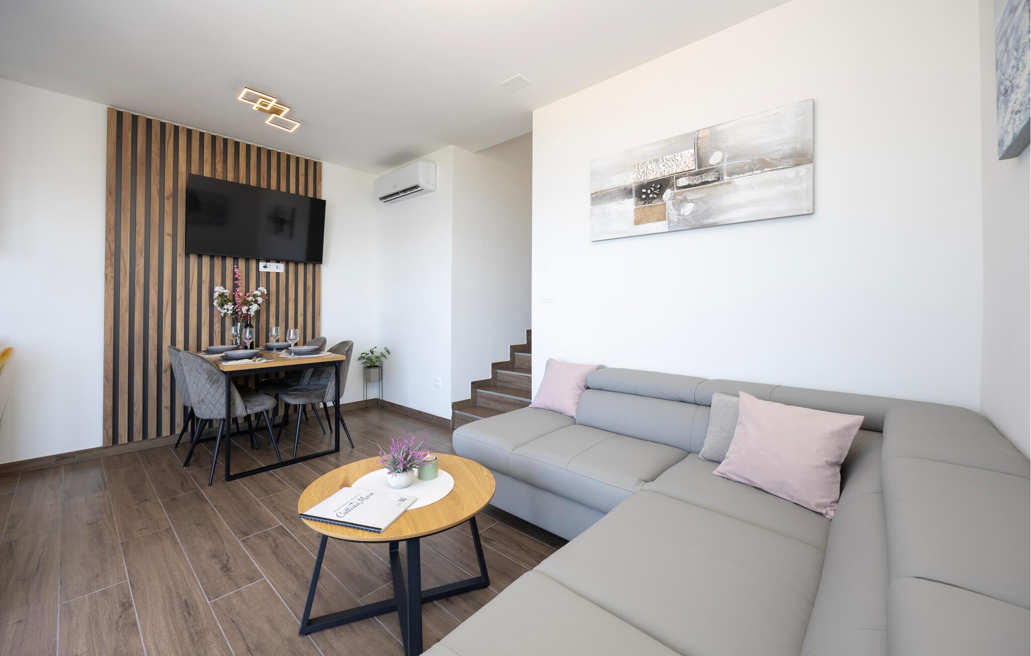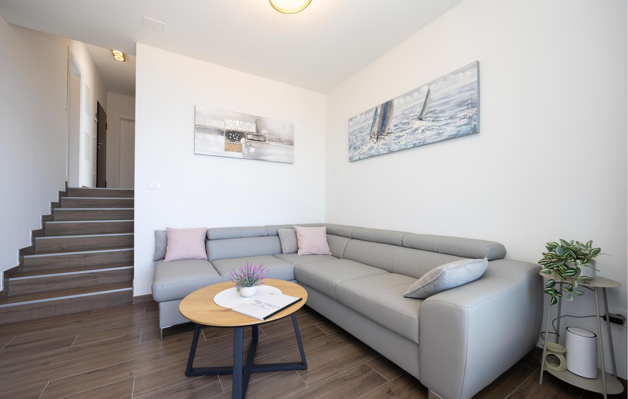 Denne moderne lejlighed tilbyder alt hvad I behøver for et behageligt ophold. Nyd den ideelle beliggenhed kun få minutters gang fra stranden og den nære beliggenhed til restauranter, caféer og butikker. Gør det behageligt i den store sofa i opholdsstuen, nyd måltiderne sammen ved spisebordet, og tilbered lækre retter i køkkenet. Lejligheden har også direkte adgang til terrassen med udsigt over Adriaterhavet.