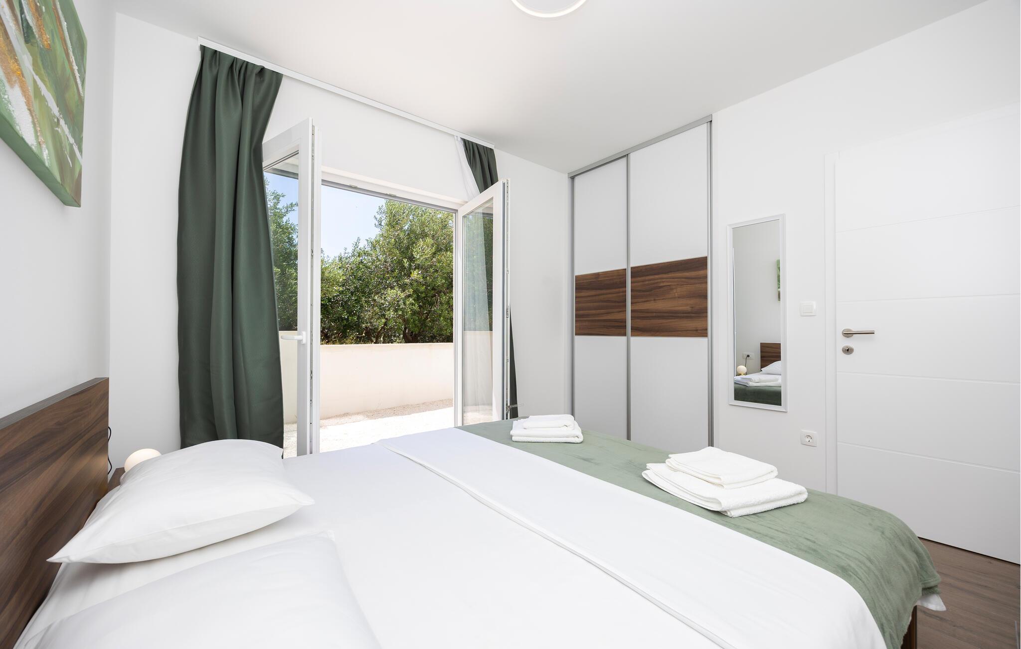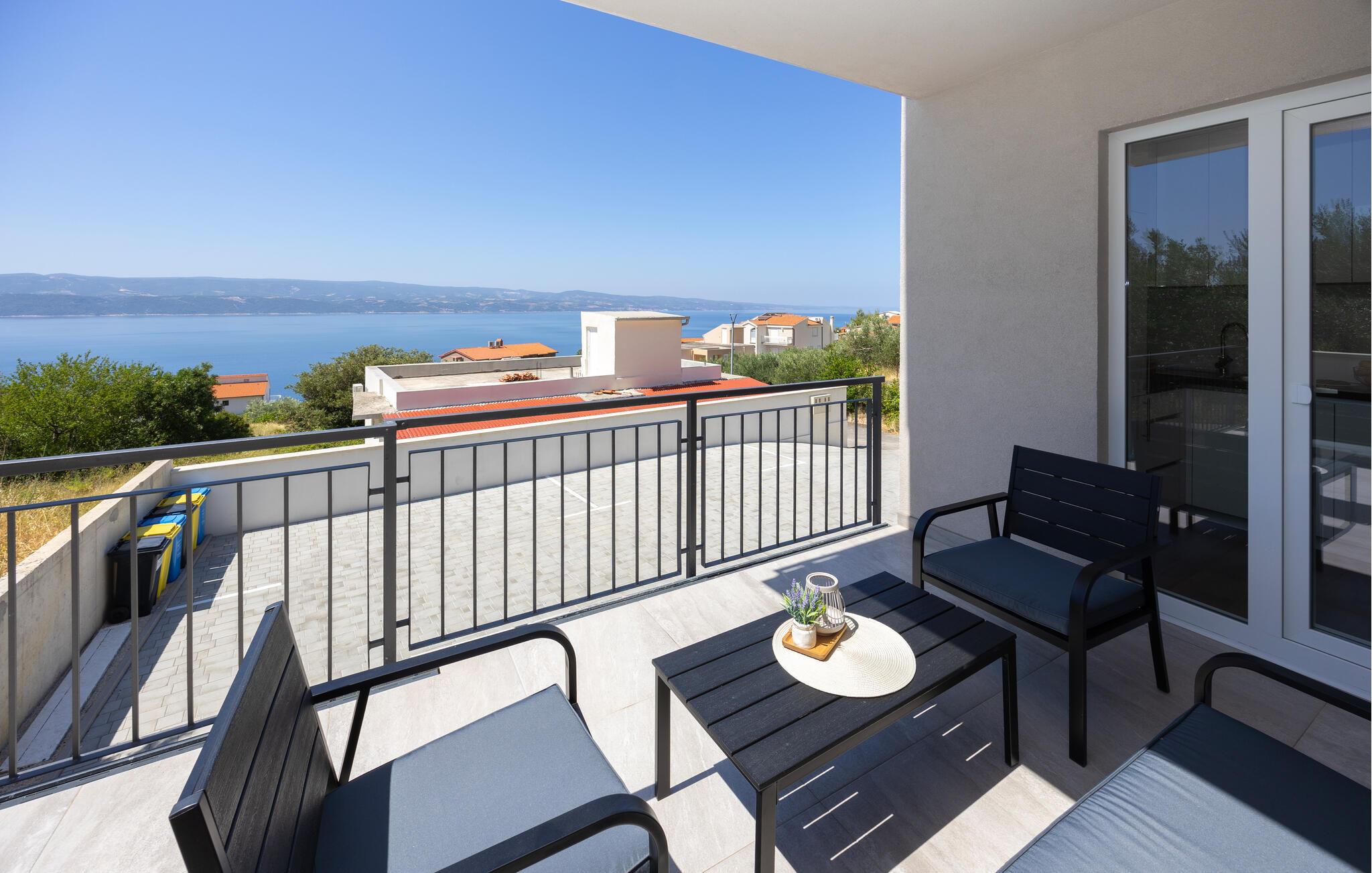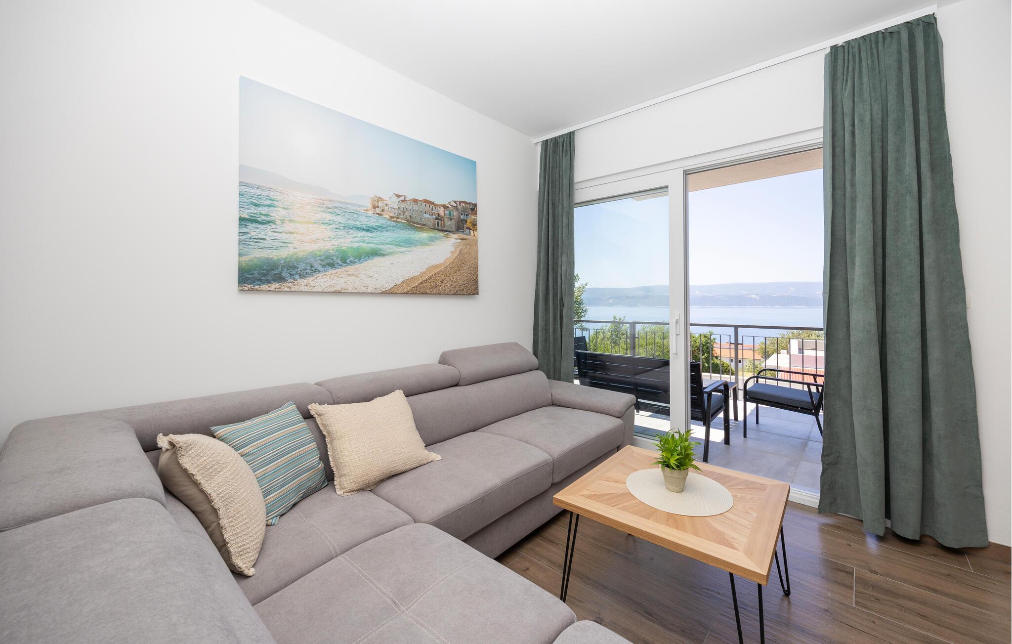 Denne moderne lejlighed tilbyder alt hvad I behøver for et behageligt ophold. Nyd den ideelle beliggenhed kun få minutters gang fra stranden og den nære beliggenhed til restauranter, caféer og butikker. Gør det behageligt i den store sofa i opholdsstuen, nyd måltiderne sammen ved spisebordet, og tilbered lækre retter i køkkenet. Lejligheden har også direkte adgang til terrassen med udsigt over Adriaterhavet.