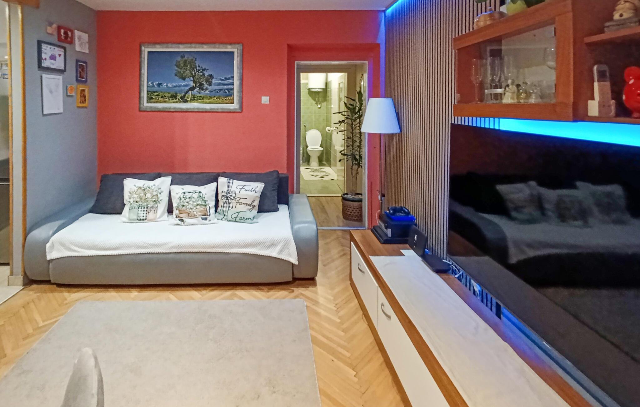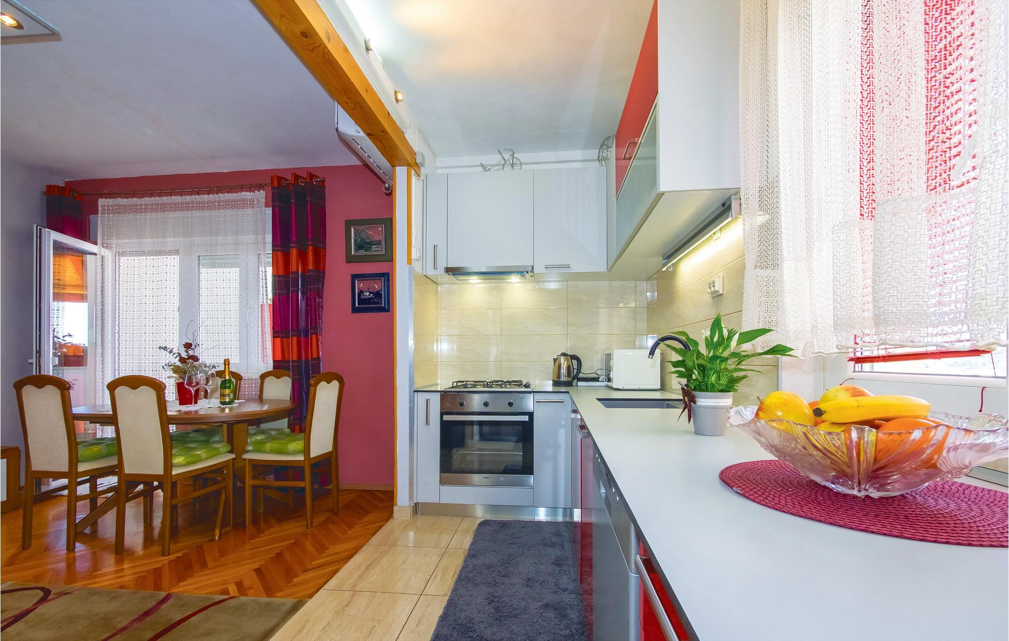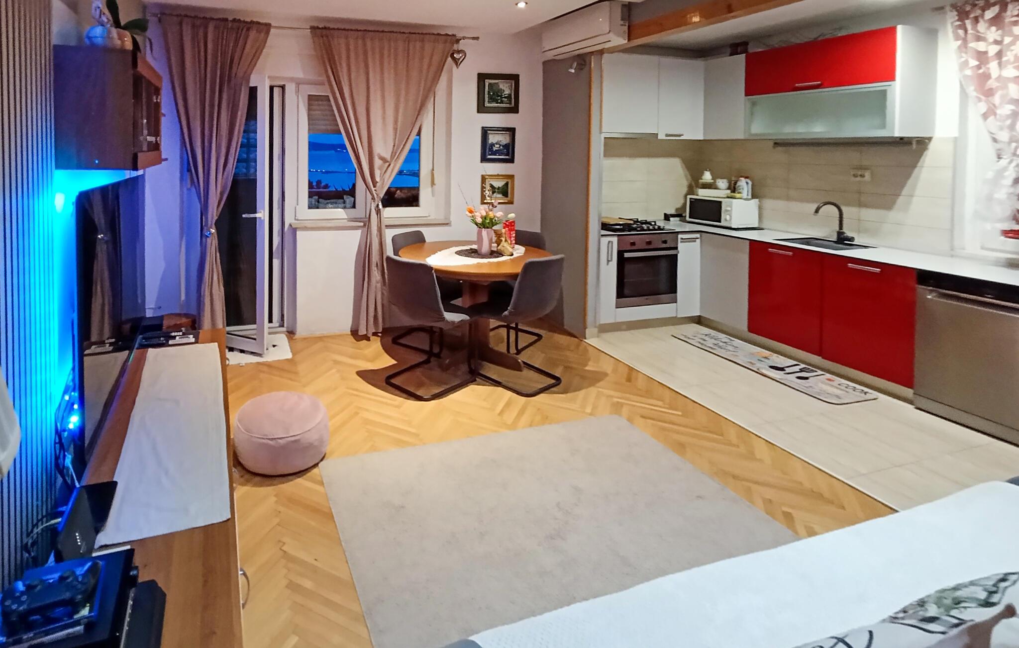 Denne ferielejlighed ligger dejligt i bydelen Borak, i Omis. Den er ideel til en rolig ferie med familien. Værelserne er tiltalende indrettet og lejlighedens overdækkede terrasse byder jer på en panoramaudsigt over havet, den lange sandstrand og floden Cetina, byen og bjergene, mens I tilbereder et lækkert måltid på grillen. I når nemt byens centrum, stranden og butikkerne til fods. Omis er en charmerende dalmatisk by, der byder på en bred vifte arrangementer og aktiviteter i sommermånederne.
