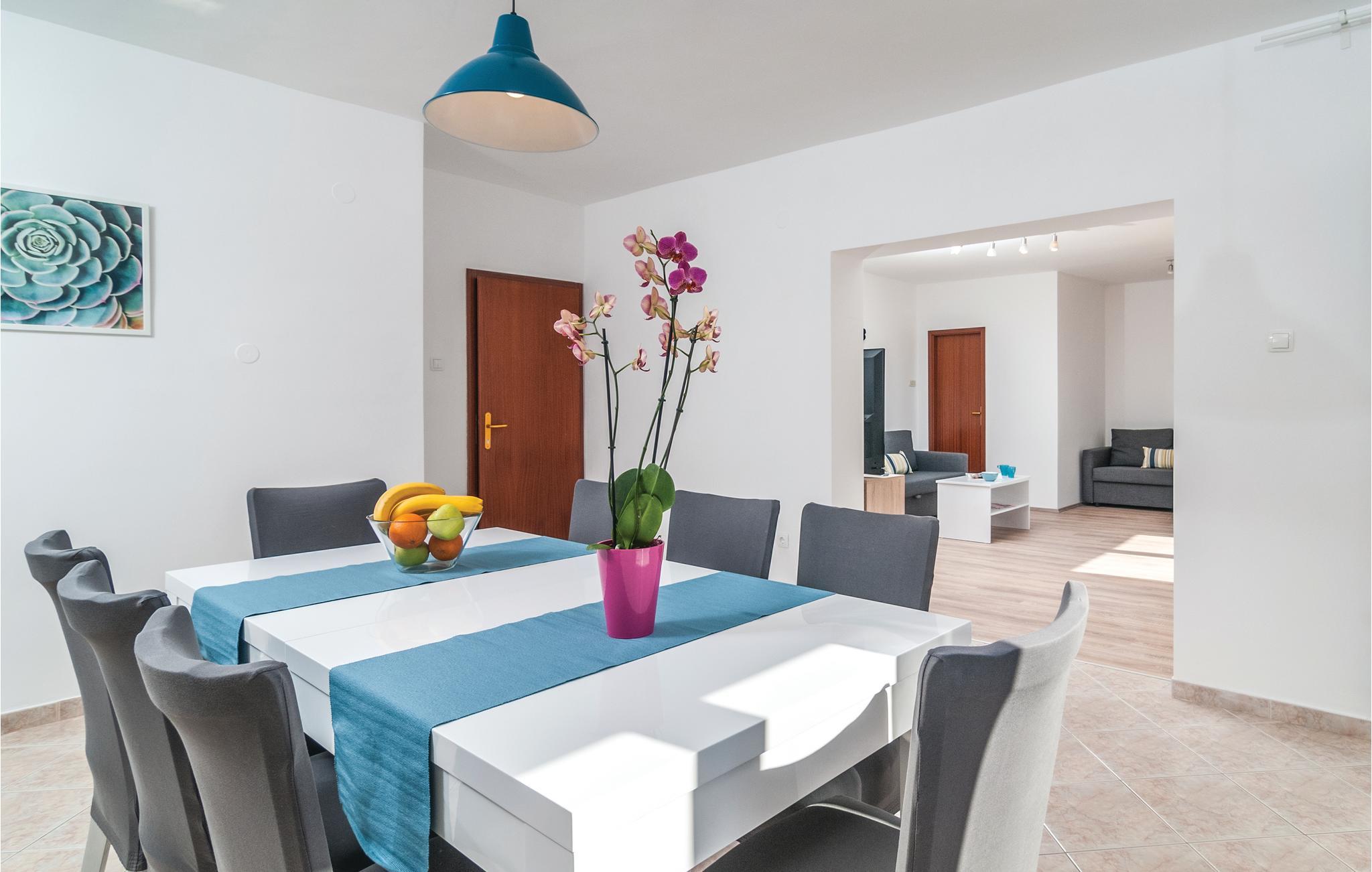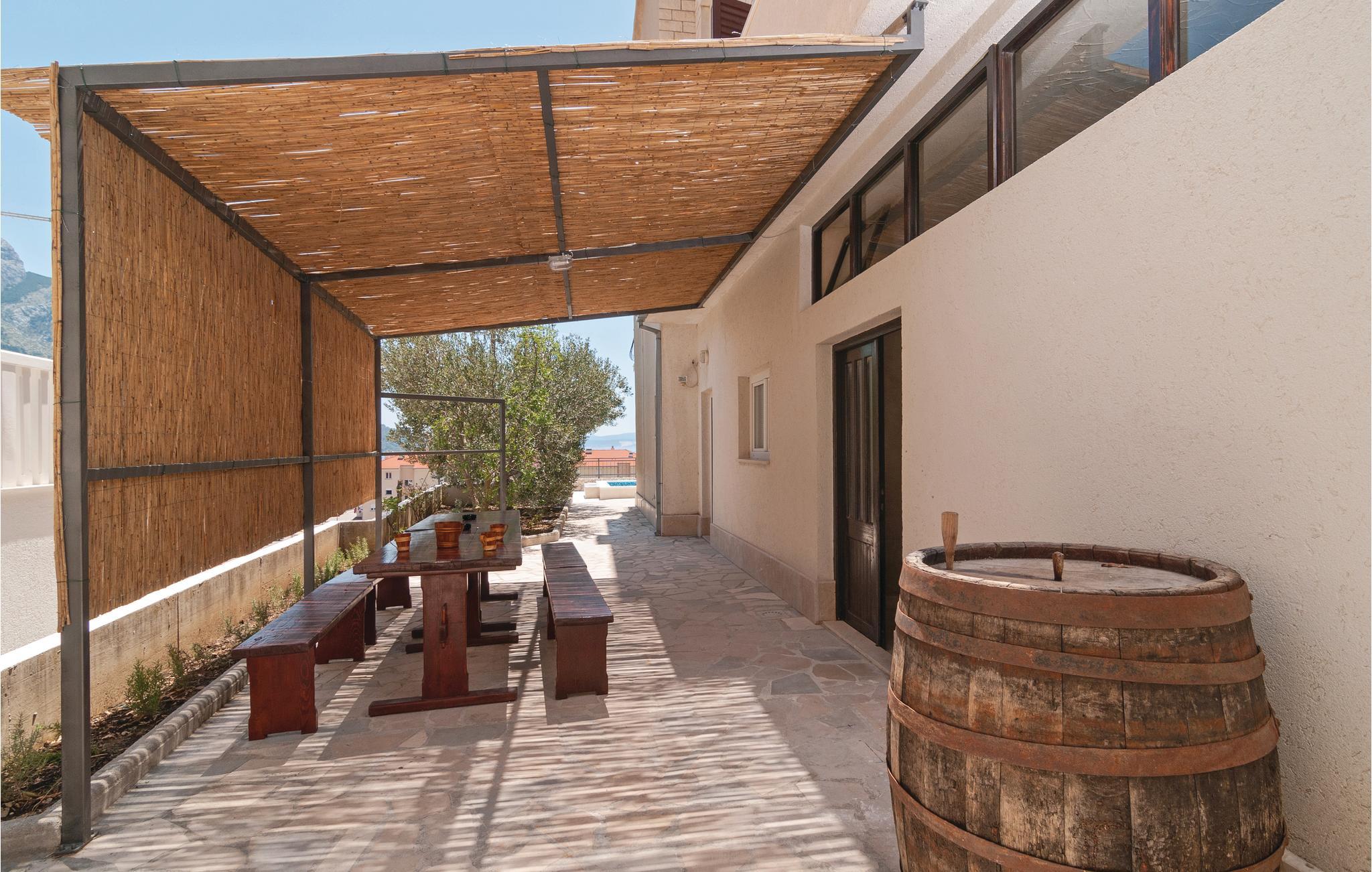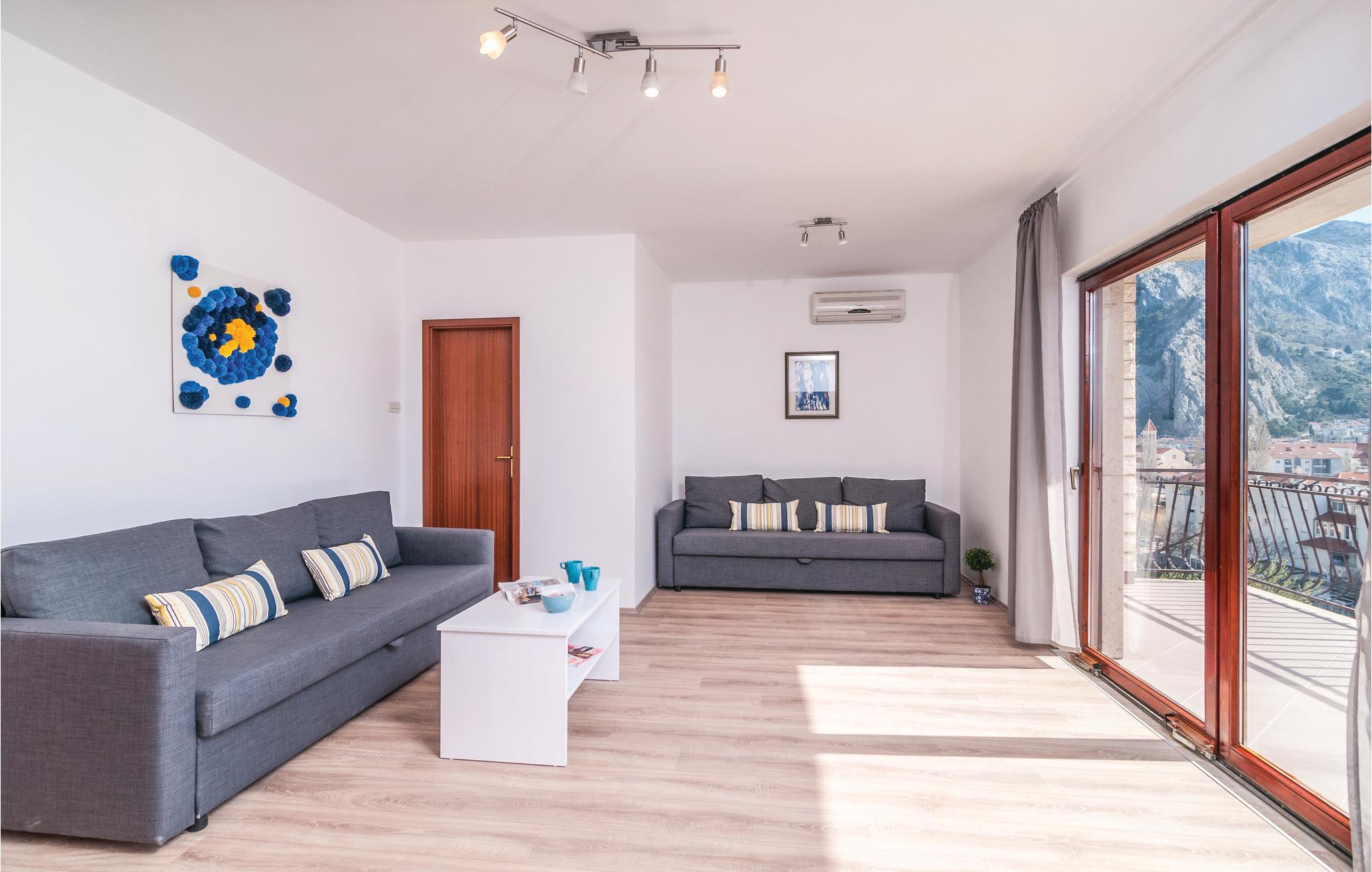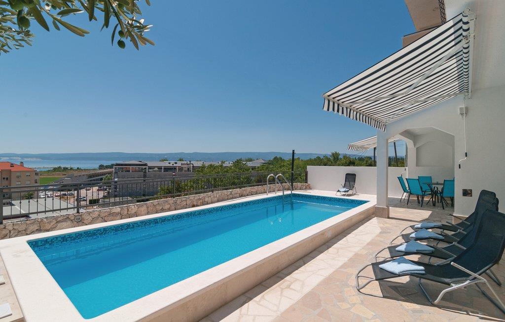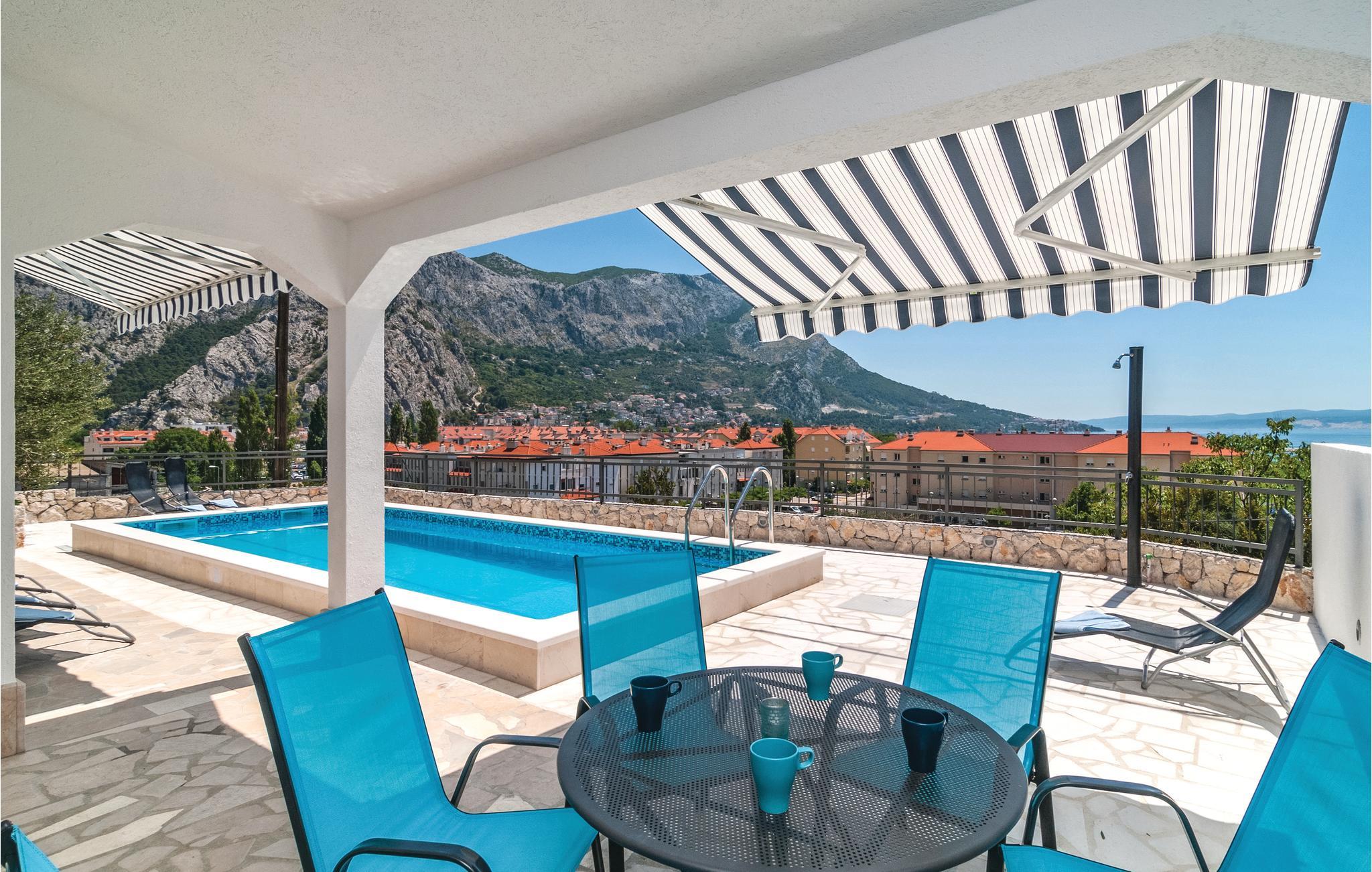 Dette smagfuldt indrettede dobbelthus med swimmingpool ligger i et kuperet område, hvorfra der er den skønneste udsigt over havet og den fascinerende by Omiš. Fra parkeringspladsen er der direkte indgang til første sal, hvor køkken, stue og to soveværelser og to badeværelser ligger og via indre trappe kommer I op på anden sal med endnu to badeværelser og soveværelser. Udendørs trapper fører ned i tueplan med det store køkken og stue med udgang til den overdækkede terrasse og poolen. Dette hus er et oplagt valg hvis I er mange der rejser sammen. I Omiš er der skønne strande – både sand og kies – ligesom byen er omgivet af flod, øer, bjerge og havet, så er her et stort udbud af aktivitetsmuligheder. Tag til Cetinafloden og sus over vandet på zip-line, eller tag en udfordrende rafting-tur, det helt rigtige til alle der har is i maven.