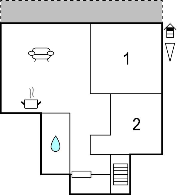 Opholdsstue/køkken - 2 Sovepladser. (Sofa, madras eller lignende).