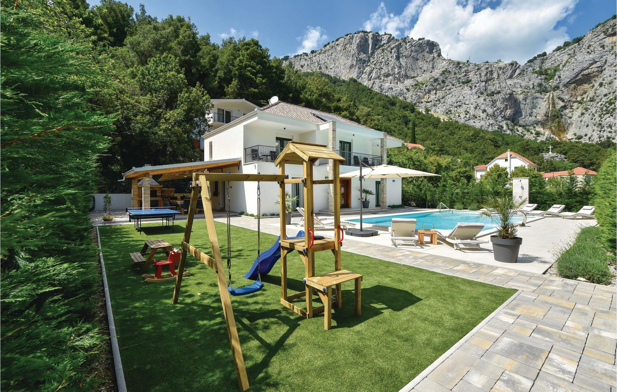 En kombination af tradition med en antydning af luksus er den rigtige beskrivelse af dette feriehus, der også har en helt privat stor udendørs pool som I kan hoppe i lige når I har lyst. Huset ligger ved floden Cetinas udmunding, i byen Omiš, i rolige omgivelser. Det havnære flodklima er sundt for den menneskelige organisme. Nyd den store, indhegnede grund, med en smagfuldt anlagt have og forskellige former for underholdning. I stueplan ligger det godt udstyrede køkken. Indre trapper fører op til soveværelserne på første sal. I stueplan ligger det godt udstyrede køkken, den rummelige stue, samt et mini-wellness-område, hvor I kan slappe af i saunaen. Der er ikke langt til den lokale, lange sandstrand og den gamle bydel, hvor I kan smage lokale lækkerier på restauranterne. Vil I udfordre jer selv med adrenalinsportsarter, så er det muligt at rafte, suse afsted på zipline og vandre i bjergene – og den venlige ejer hjælper jer gerne med at finde ud af hvor, hvornår og hvad det koster.