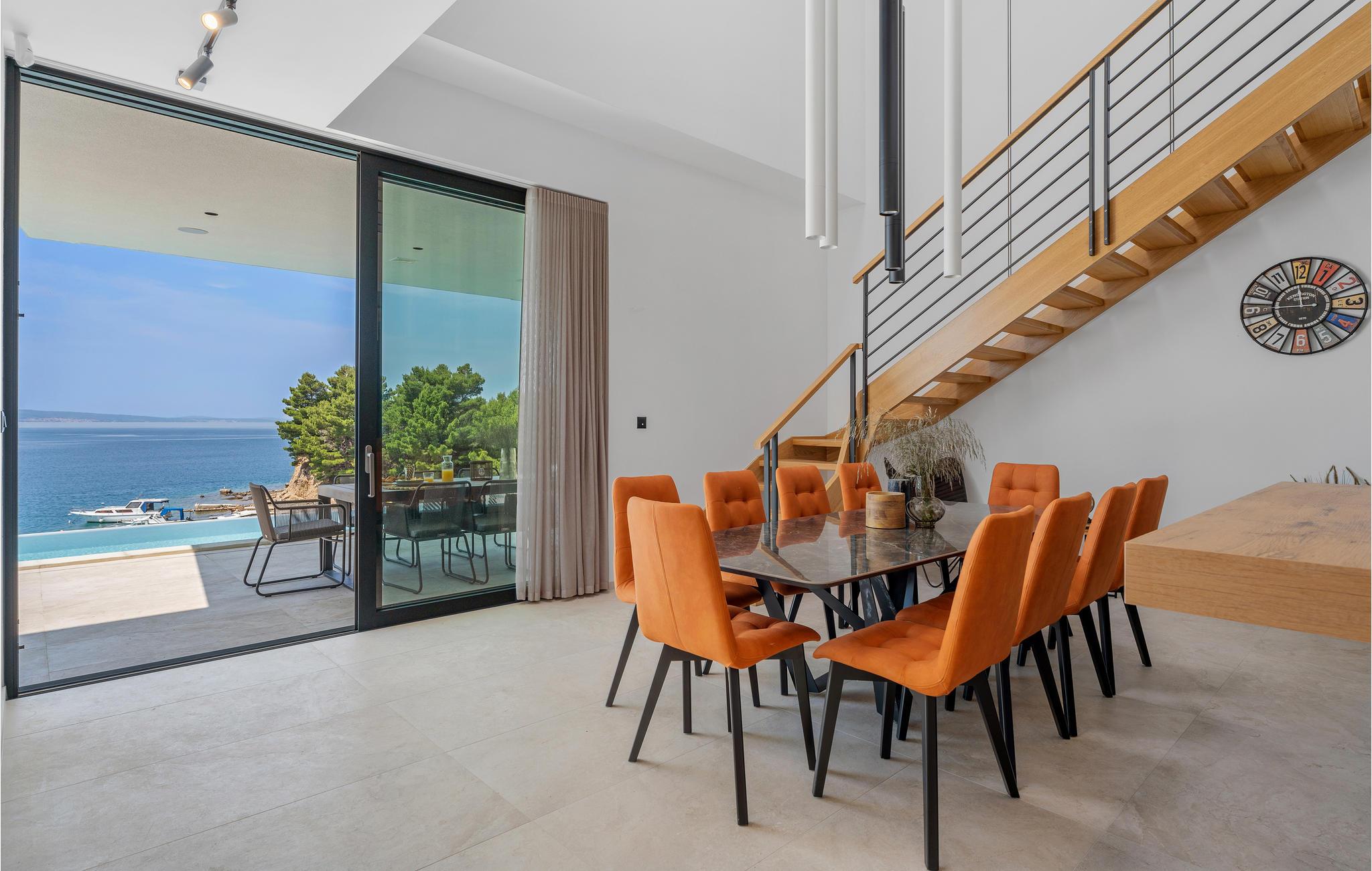 Det yderst komfortable og rummelige hus ligger i en fremragende panorama-position og er optimal til en familieferie ved havet, som I altid har i tankerne under jeres aktiviteter her, så snart I vågner kan I blive fortryllet af det vidunderlige havpanorama . Find jer godt til rette i de lyse og hyggelige lokaler, tilbered lækre feriemåltider sammen og nyd måltiderne sammen ved det lange spisebord efter en træning eller et spil billard. Efter en begivenhedsrig dag kan I føle jer godt tilpas i den indbydende sofa, nyde den fantastiske udsigt og beroligende ferieafslapning. Et ophold i saunaen giver også ny energi.
