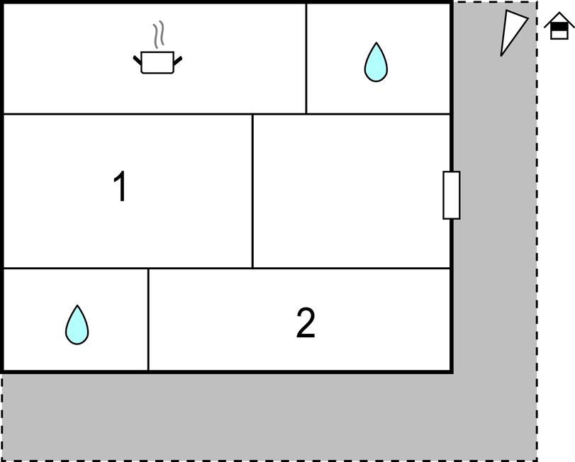 Badeværelse 2m2 (nr. 1) - WC. Varmt og koldt vand. Bruser