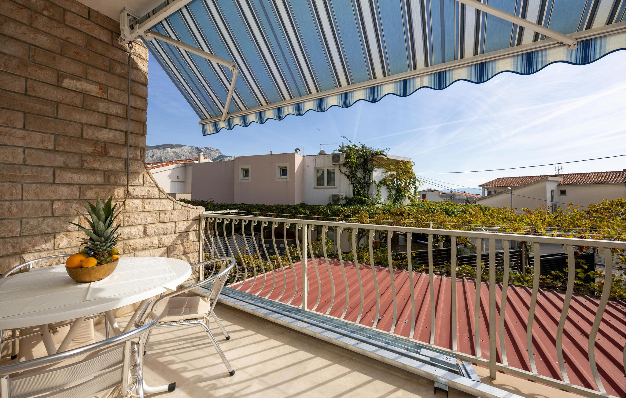 Jeres private terrasse med udsigt over vinranker og videre ud mod havet er det perfekte sted til en afslappet morgenmad og fælles måltider under åben himmel. Tag en forfriskende dukkert i fællespoolen, og nyd solens varme på en af de komfortable liggestole.