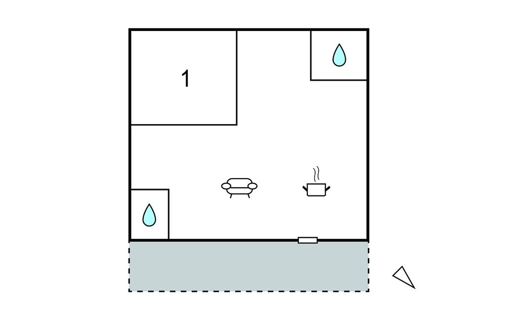 Opholdsstue/køkken - 2 Sovepladser. (Sofa, madras eller lignende).