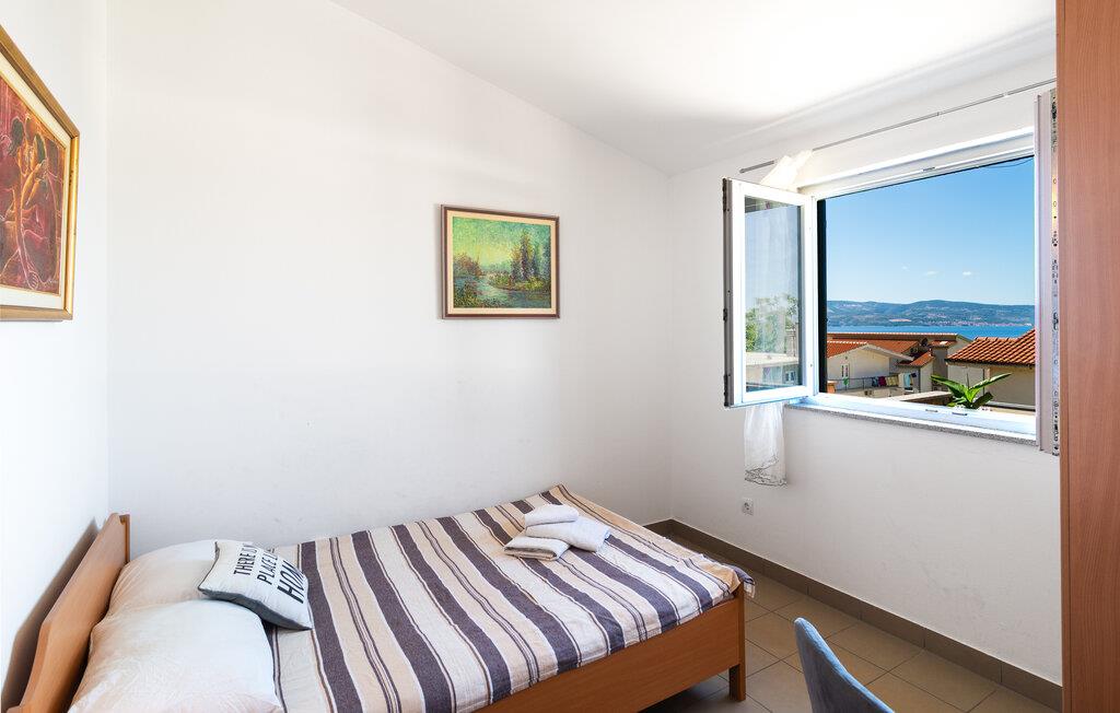 Forkæl jer selv med en afslappende ferie i denne hyggelige ferielejlighed med en fantastisk havudsigt. Denne komfortabelt møblerede bolig tilbyder alt, hvad I behøver for en afslappende ferie: en komfortabel sofa, et tv og et funktionelt køkken skaber en behagelig atmosfære. Uanset om I lytter til musik, laver mad eller blot slapper af – her kan I planlægge jeres dag, som I ønsker. Start morgenen med en kop kaffe på terrassen og nyd det glitrende hav. Nyd en let morgenmad under åben himmel og nyd den rolige middelhavsatmosfære. Om aftenen vil solnedgangen ledsage jer ind i en fredelig nat. Gå en tur til stranden og tilbring afslappende timer med at svømme, solbade eller nippe til en kølig drink ved havet. Udforsk den gamle bydel i Omiš med dens historiske gader, små butikker og hyggelige caféer. Tag en bådtur på Cetina-floden, der snor sig malerisk gennem kløften og byder på eventyr som rafting eller ziplining. For vandreentusiaster er en klatring til Mirabela-fæstningen umagen værd, der tilbyder en betagende udsigt over byen, havet og floddalen.