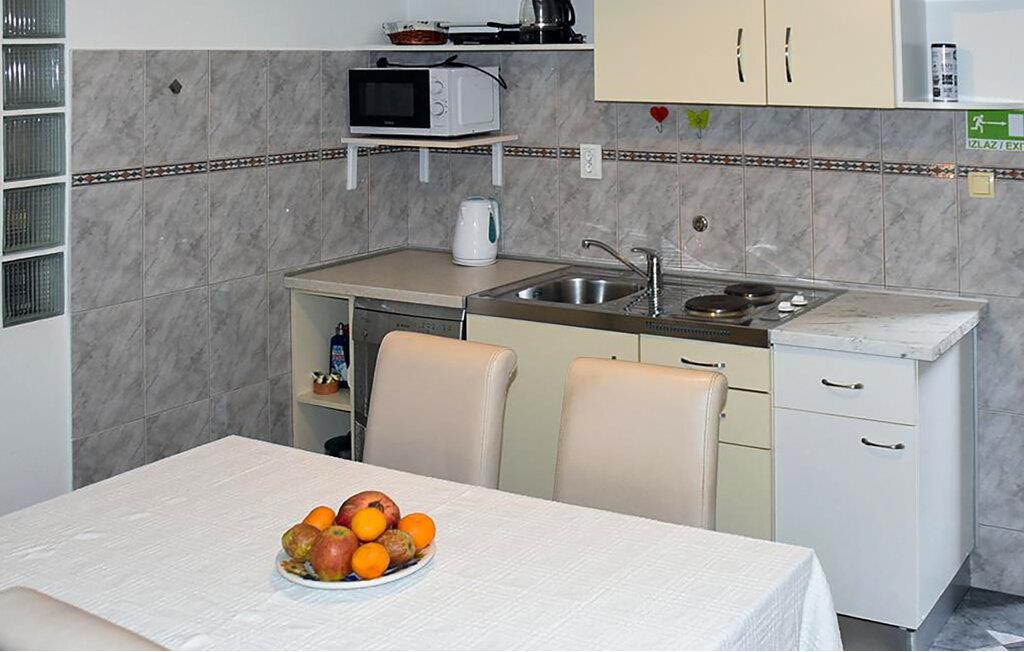 Tilbring en afslappende ferie i denne lejlighed med havudsigt og en imponerende bjergkulisse. Træd ind i det lyse interiør, nyd det funktionelle design, og brug jeres lejlighed til at slappe af i timevis efter en begivenhedsrig dag. Møblerne er rene og praktiske og tilbyder alt, hvad I behøver for et behageligt ophold. Tilbered nemt enkle måltider i det praktiske tekøkken. Gå udenfor og sæt jer ved det lille bord. Nyd morgenmaden her, eller lad aftenen slutte med udsigt over hustagene og havet. Udendørsområdet tilbyder et beskyttet tilflugtssted med en betagende udsigt. Udnyt den høje beliggenhed til rolige øjeblikke væk fra travlheden og nyd den friske luft i afslappede omgivelser. Oplev Omiš' varierede omgivelser. Slentr gennem den historiske gamle bydel med dens smalle gader, og besøg Starigrad-fæstningen, der tilbyder en betagende udsigt over kysten. Tilbring dage med at svømme ved sand- og stenstrandene langs Cetina-flodmundingen. Tag på rafting på Cetina-floden, eller tag på vandretur i de omkringliggende bjerge. Udforsk kystpromenaden med dens restauranter og caféer, eller planlæg udflugter til nærliggende byer langs den dalmatiske kyst.