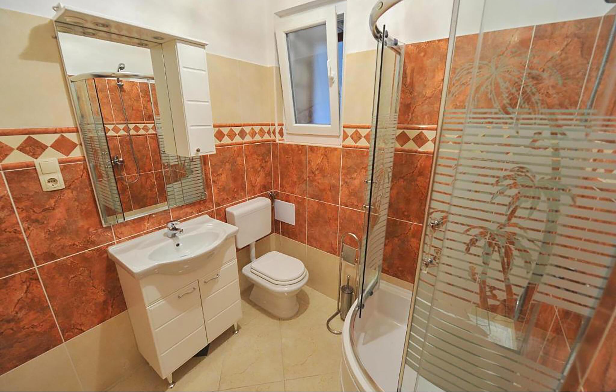 Badeværelse 15m2 (nr. 1) - WC. Varmt og koldt vand. Håndbruser og badekar