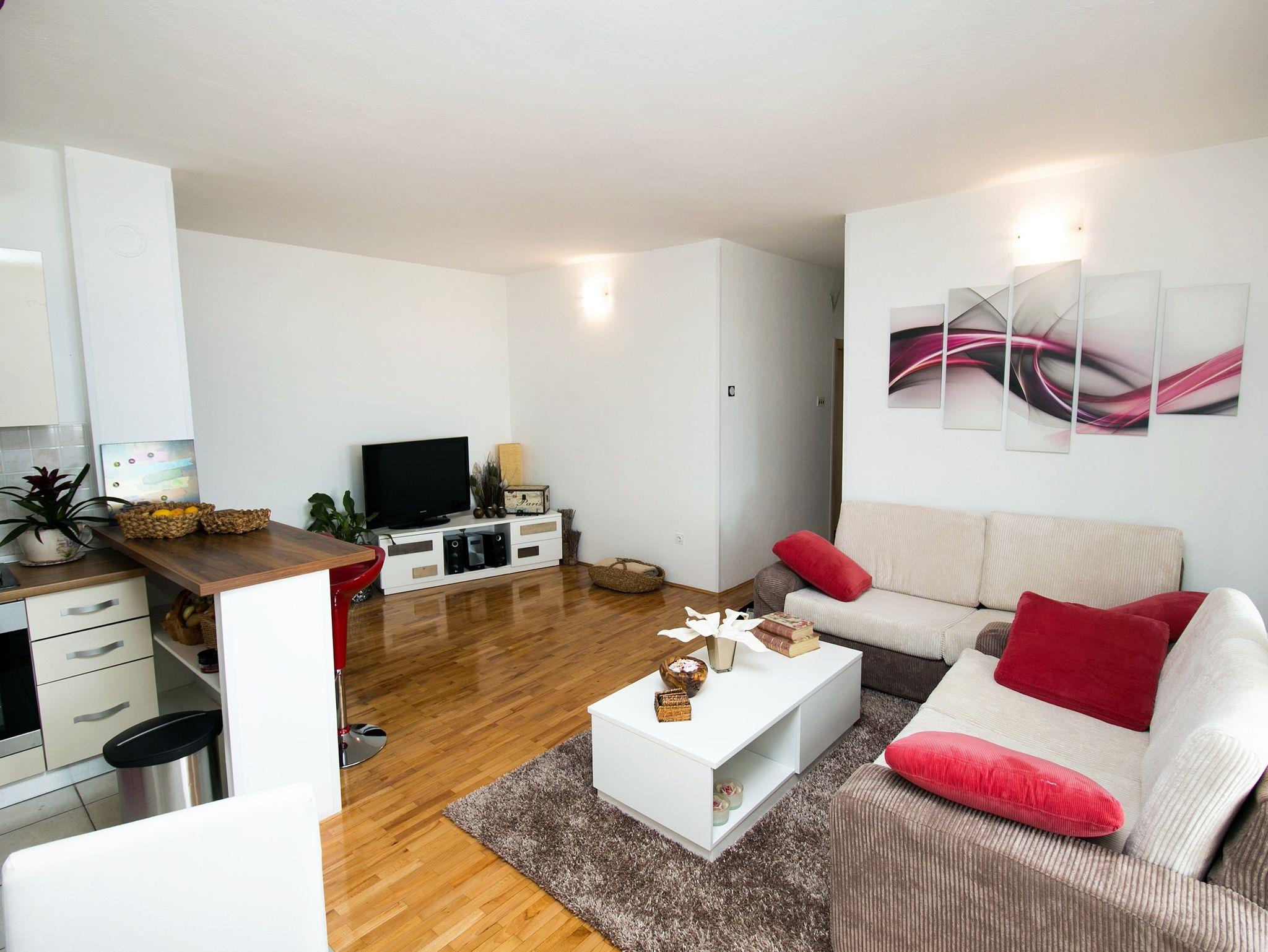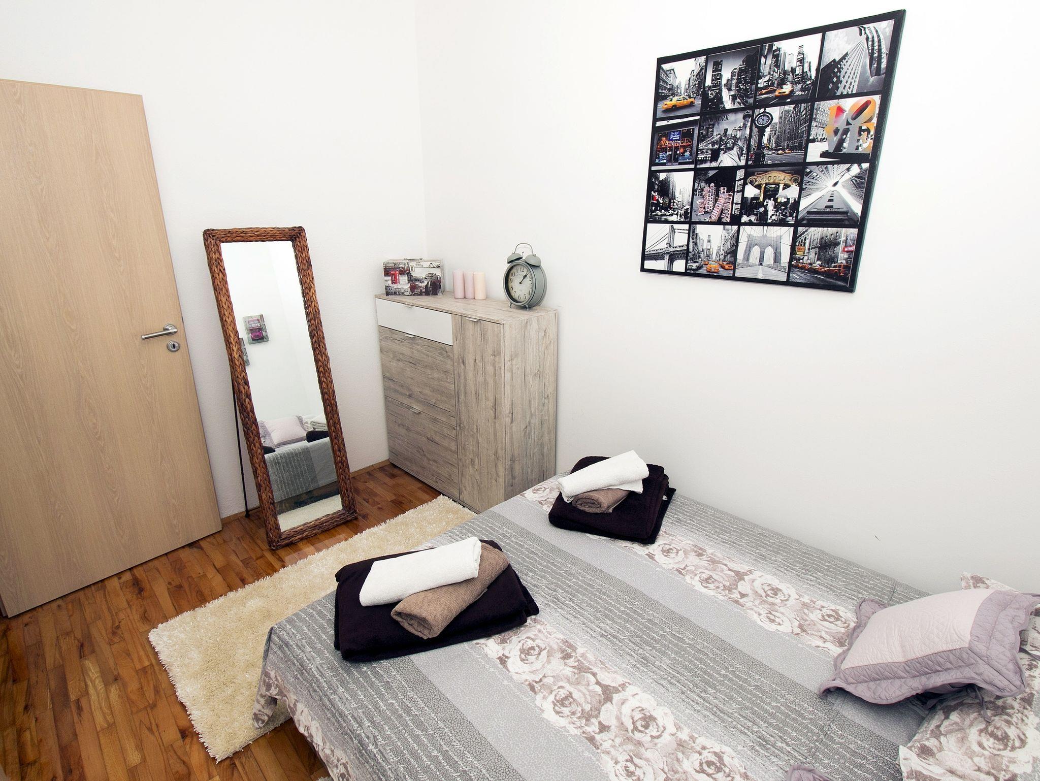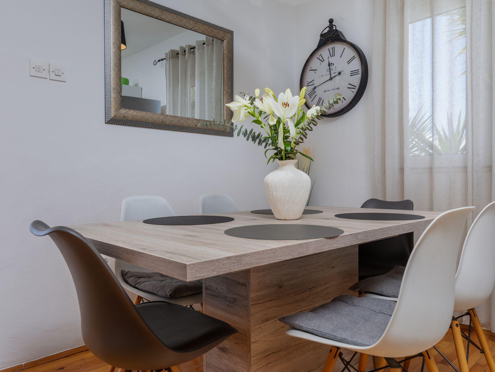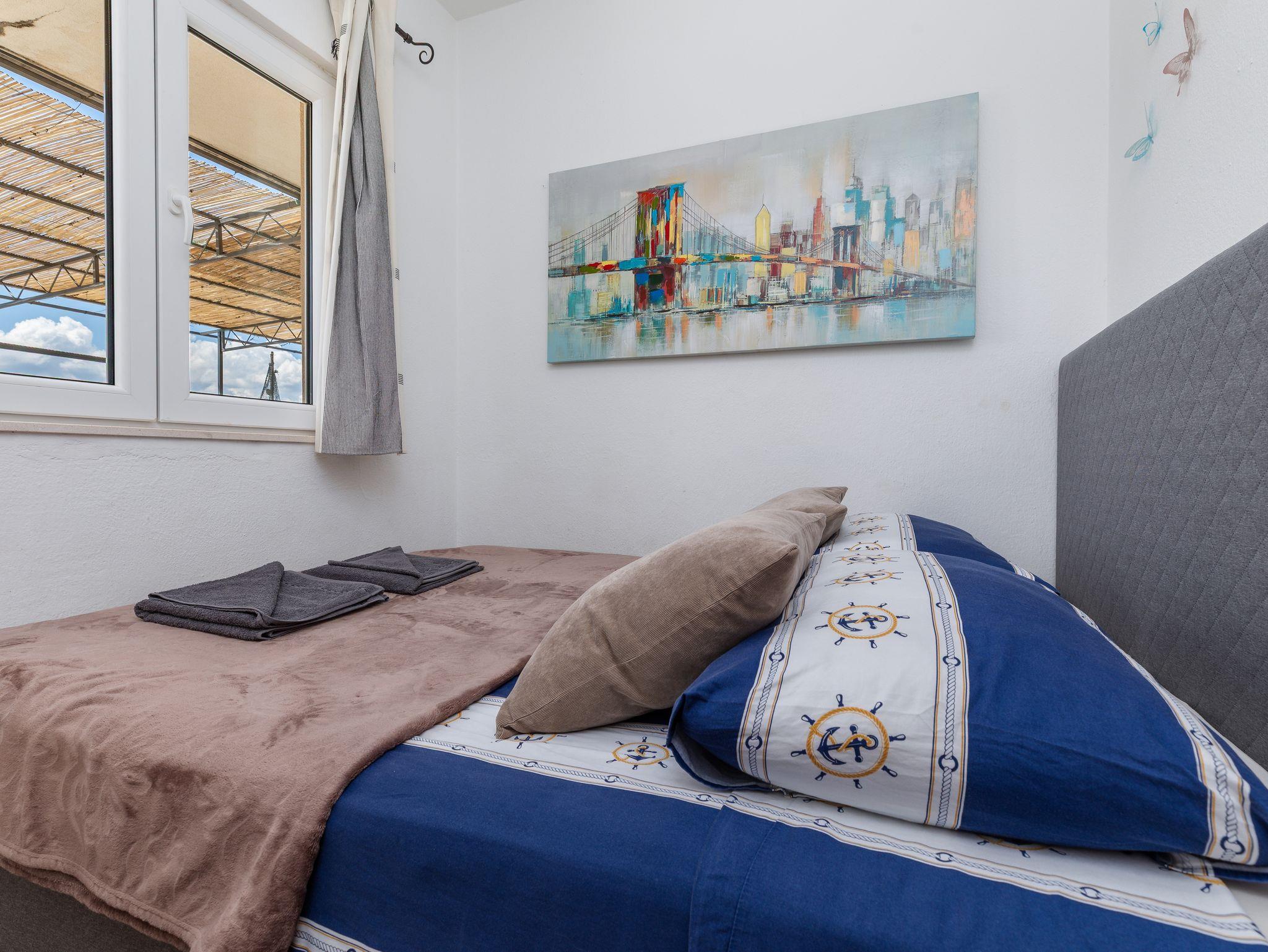 Ferienwohnung bietet Platz für 9 Gäste. Die Betten sind in Schlafzimmern, die es 3 gibt, und in Wohnzimmer, innerhalb einer Gesamtfläche von 69m2, angeordnet. Die Gäste haben eine eigene Terrasse zur Verfügung, auf der sie in warmen Sommernächten genießen können. Das Apartment bietet Meerblick. Es ist erlaubt, Speisen auf dem Gemeinschafts-Grill vorzubereiten. In der Unterkunftseinheit besteht die Möglichkeit des Mitbringens von Haustieren gegen Aufpreis. IM PREIS INBEGRIFFEN: Kurtaxe, Endreinigung, Klimatisierung, Parkplatz, Internet, Kinderbett. VERBINDLICHE ZUSÄTZLICHE KOSTEN: Aufzahlung für Kurzaufenthalte (prozentualer Zuschlag pro Nächtigungsanzahl: 30% - 1, 20% - 2, 10% - 3). UNVERBINDLICHE ZUSÄTZLICHE KOSTEN: Haustiere (5,00 € pro Nacht). Die Verfügbarkeit zusätzlicher Dienstleistungen in Ihrem reservierten Termin und die Preise derselben (falls nicht aufgeführt) müssen im Voraus überprüft werden. Zusätzliche Dienstleistungen die in der Zahlungsaufforderung nicht aufgeführt sind werden direkt beim Vermieter bezahlt, angenommen der Gast nutzt auch diese.