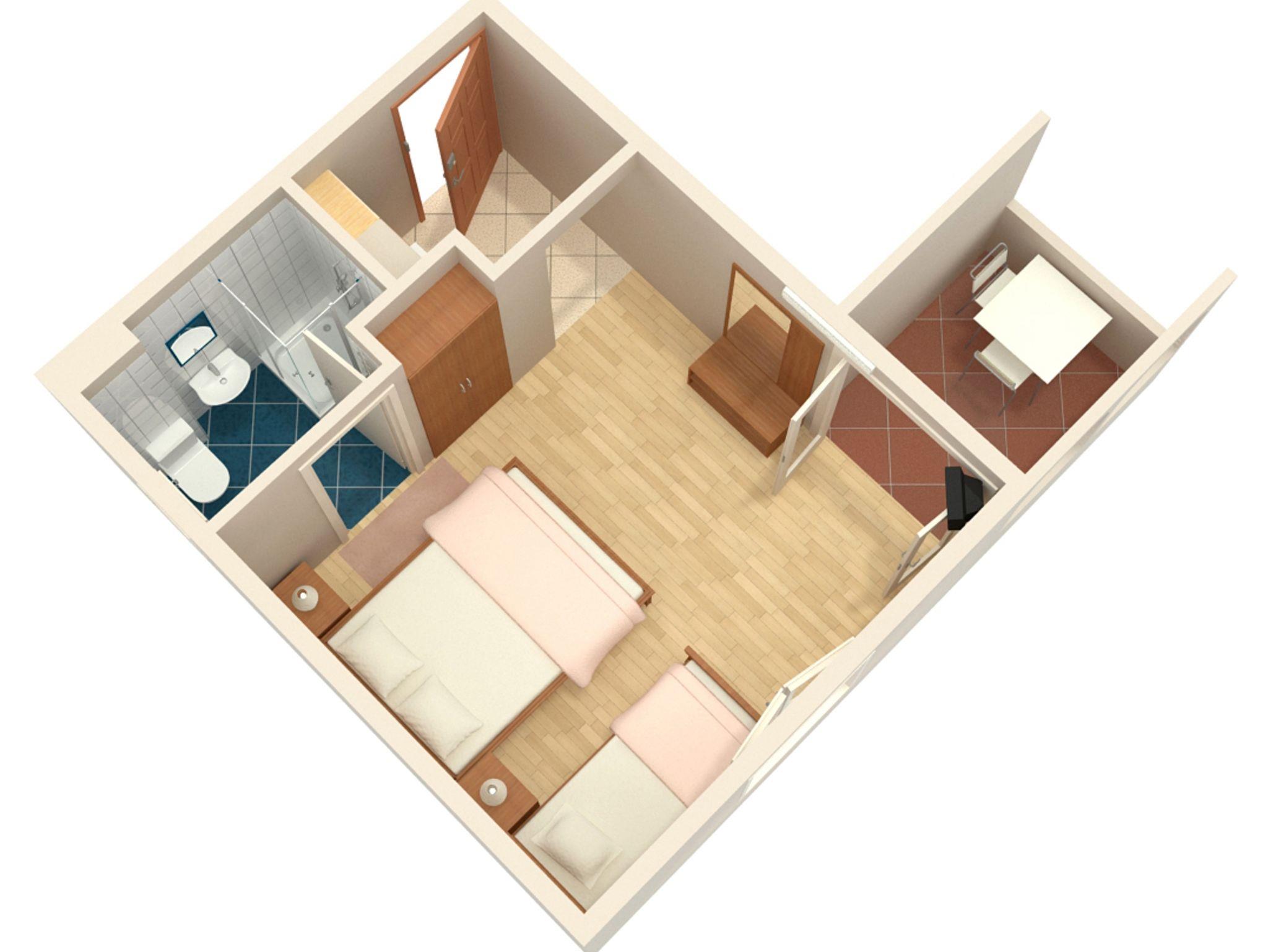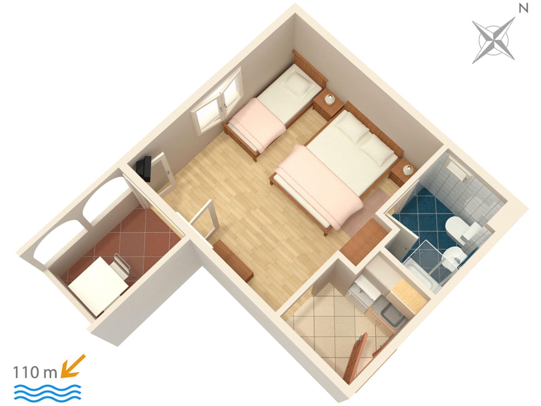 Studio bietet Platz für 3 Gäste. Die Betten sind in Schlafzimmern, die es 1 gibt, innerhalb einer Gesamtfläche von 21m2, angeordnet. Die Gäste haben eine eigene Terrasse zur Verfügung, auf der sie in warmen Sommernächten genießen können. Das Studio-Apartment bietet Meerblick. Es ist erlaubt, Speisen auf dem Gemeinschafts-Grill vorzubereiten. IM PREIS INBEGRIFFEN: Kurtaxe, Endreinigung, Klimatisierung, Parkplatz, Internet, Wäschewaschen, Bügeleisen, Bügelbrett, Föhn. VERBINDLICHE ZUSÄTZLICHE KOSTEN: Aufzahlung für Kurzaufenthalte (prozentualer Zuschlag pro Nächtigungsanzahl: 30% - 1, 20% - 2, 10% - 3). UNVERBINDLICHE ZUSÄTZLICHE KOSTEN: Zusatzbett (5,00 € pro Nacht). Die Verfügbarkeit zusätzlicher Dienstleistungen in Ihrem reservierten Termin und die Preise derselben (falls nicht aufgeführt) müssen im Voraus überprüft werden. Zusätzliche Dienstleistungen die in der Zahlungsaufforderung nicht aufgeführt sind werden direkt beim Vermieter bezahlt, angenommen der Gast nutzt auch diese.