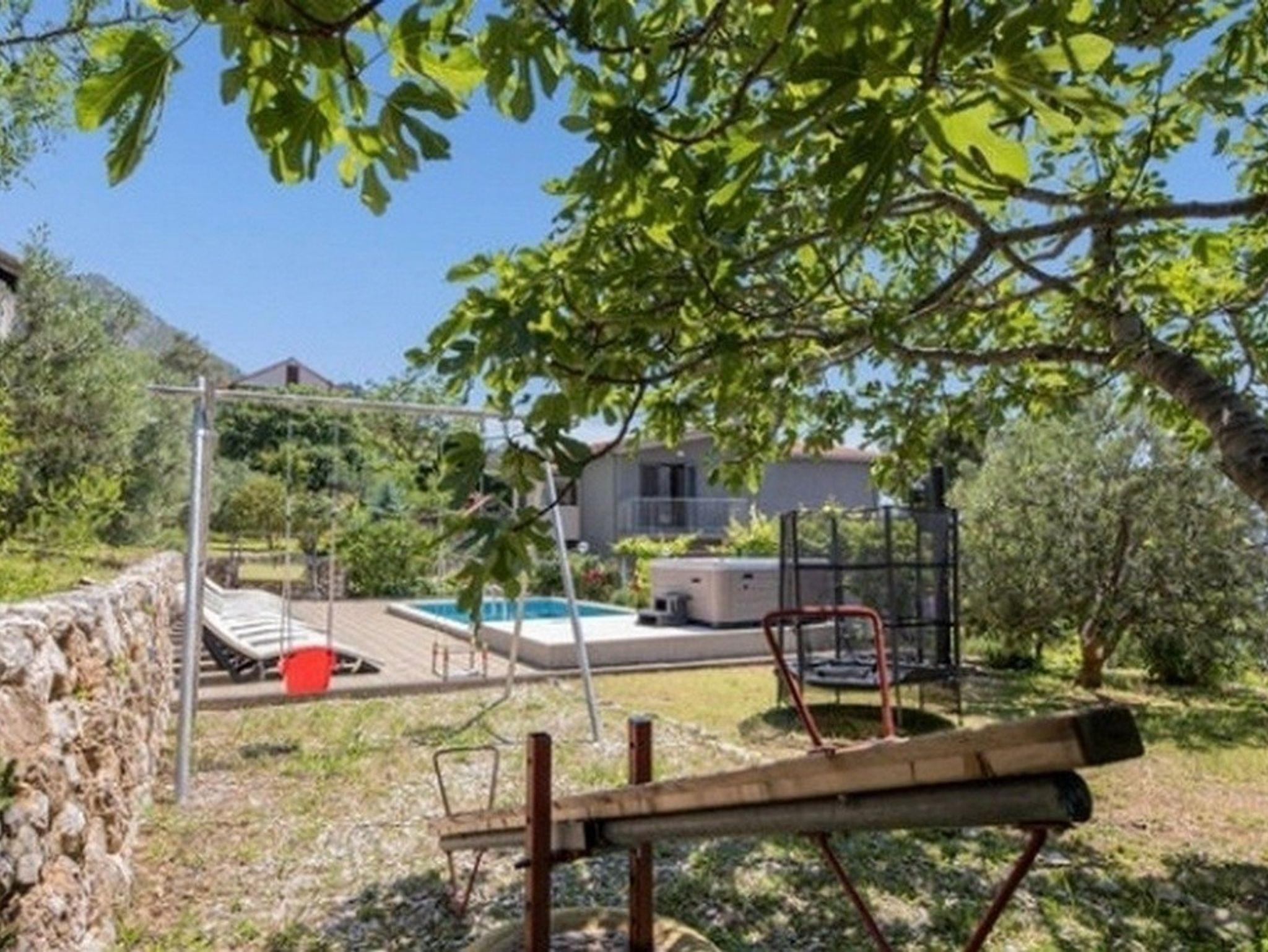 Umgebung des Objekts (Eingerichtet), Hof (800m2, Kinderbereich, Sitzbereich), Parkplatz (Anzahl der Parkplätze: 8, Entfernung vom Objekt: im Hof), Pool: privat, Dimensionen: 7m x 3.5m x 1.6m, Wassertyp: Süßwasser, WiFi Internet, Föhn, Bügeleisen, Bügelbrett, Liegestühle, Kinderbett