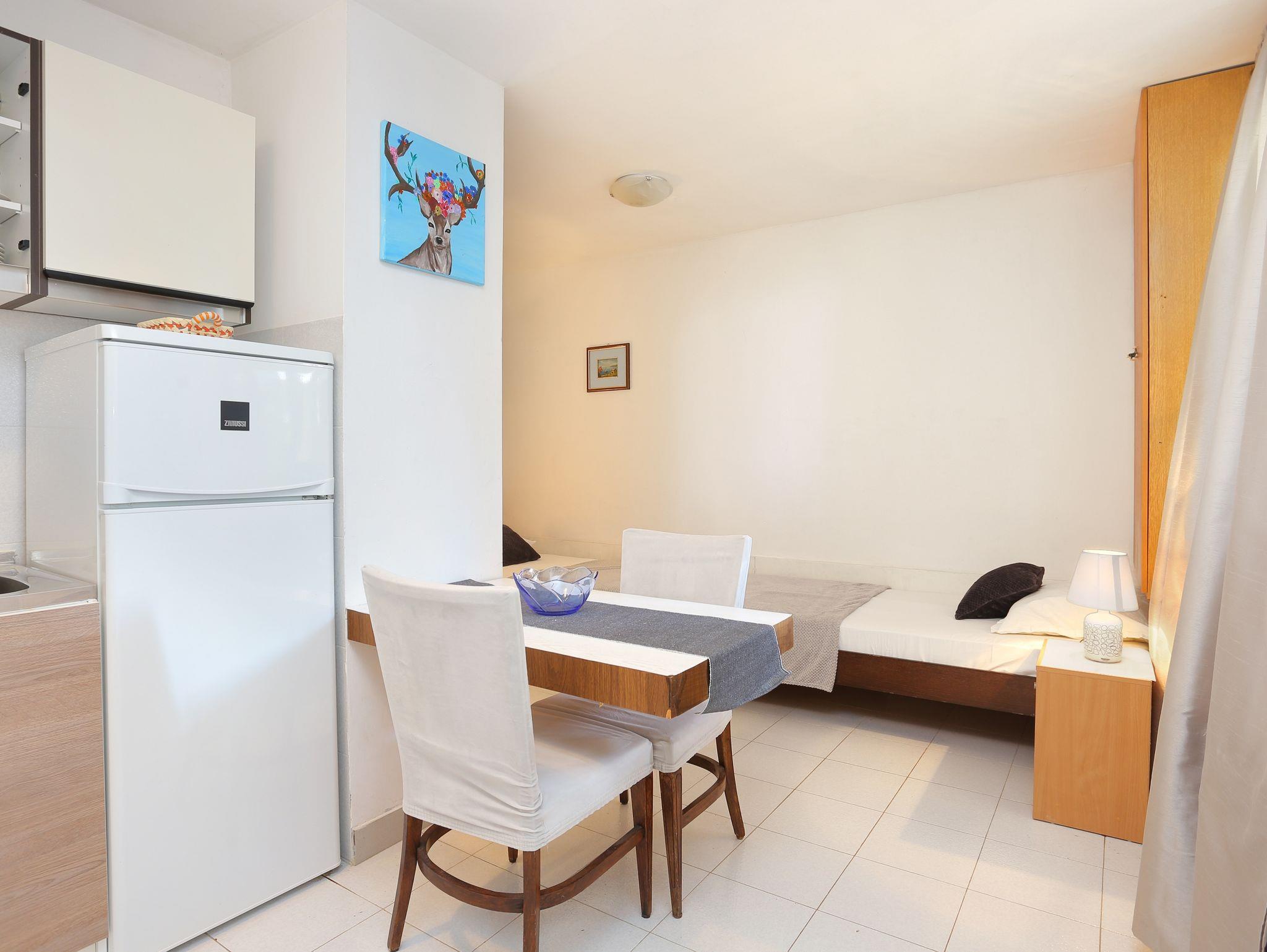 Studio bietet Platz für 3 Gäste. Die Betten sind in Schlafzimmern, die es 1 gibt, und in Esszimmer, innerhalb einer Gesamtfläche von 15m2, angeordnet. Die Gäste haben eine eigene Terrasse zur Verfügung, auf der sie in warmen Sommernächten genießen können. In der Unterkunftseinheit besteht die Möglichkeit des Mitbringens von Haustieren gegen Aufpreis. IM PREIS INBEGRIFFEN: Kurtaxe, Endreinigung, Klimatisierung, Parkplatz, Internet, Föhn. VERBINDLICHE ZUSÄTZLICHE KOSTEN: Aufzahlung für Kurzaufenthalte (prozentualer Zuschlag pro Nächtigungsanzahl: 30% - 1, 20% - 2, 10% - 3). UNVERBINDLICHE ZUSÄTZLICHE KOSTEN: Haustiere (15,00 € pro Nacht). Die Verfügbarkeit zusätzlicher Dienstleistungen in Ihrem reservierten Termin und die Preise derselben (falls nicht aufgeführt) müssen im Voraus überprüft werden. Zusätzliche Dienstleistungen die in der Zahlungsaufforderung nicht aufgeführt sind werden direkt beim Vermieter bezahlt, angenommen der Gast nutzt auch diese.