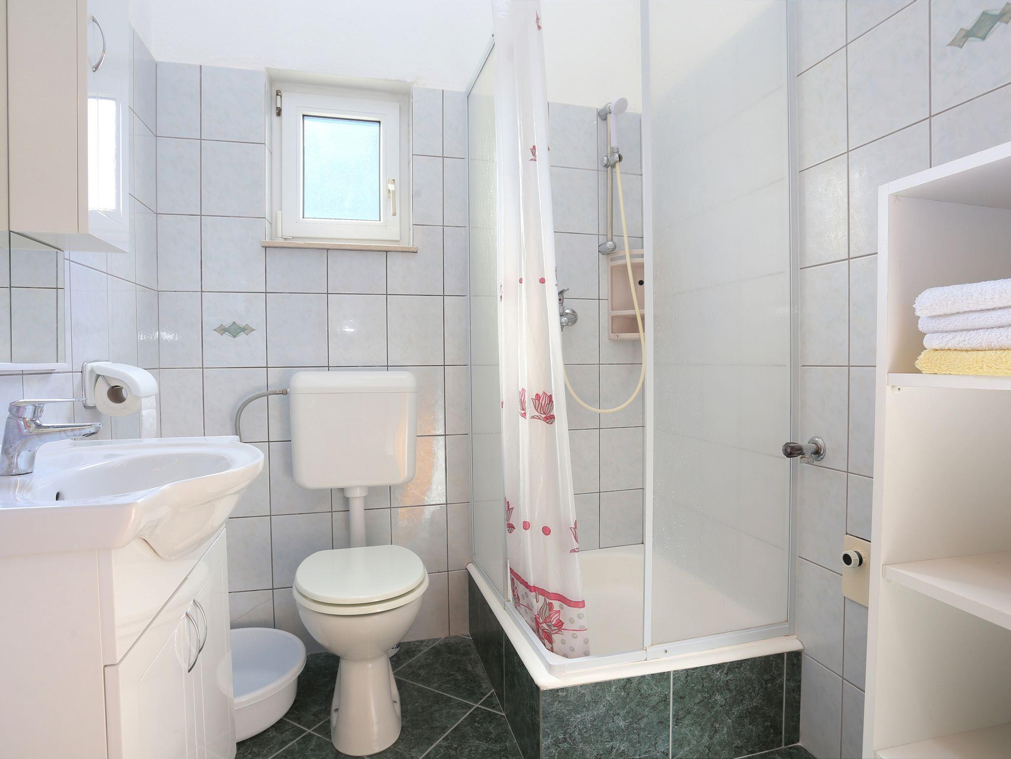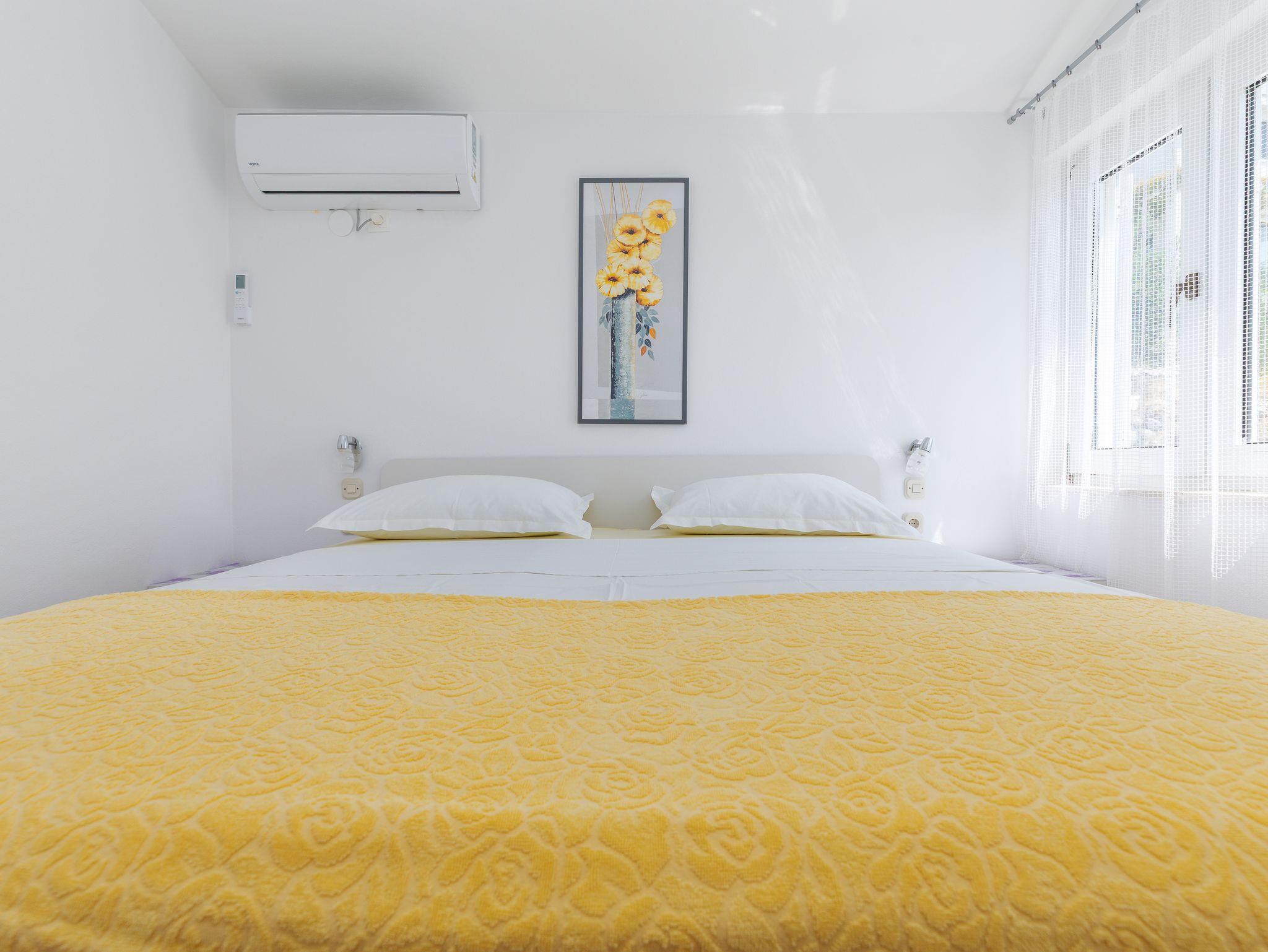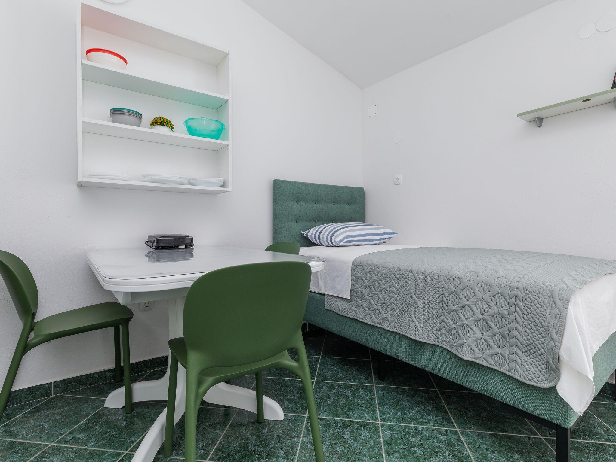 Ferienwohnung bietet Platz für 3 Gäste. Die Betten sind in Schlafzimmern, die es 1 gibt, und in Esszimmer, innerhalb einer Gesamtfläche von 27m2, angeordnet. Die Gäste haben eine eigene Terrasse zur Verfügung, auf der sie in warmen Sommernächten genießen können. Das Apartment bietet Meerblick. Es ist erlaubt, Speisen auf dem Gemeinschafts-Grill vorzubereiten. IM PREIS INBEGRIFFEN: Kurtaxe, Endreinigung, Klimatisierung, Parkplatz, Garage, Internet, Bügeleisen, Bügelbrett, Föhn, tragbarer Grill. VERBINDLICHE ZUSÄTZLICHE KOSTEN: Aufzahlung für Kurzaufenthalte (prozentualer Zuschlag pro Nächtigungsanzahl: 30% - 1, 20% - 2, 10% - 3). UNVERBINDLICHE ZUSÄTZLICHE KOSTEN: Wäschewaschen (3,00 € Waschen). Die Verfügbarkeit zusätzlicher Dienstleistungen in Ihrem reservierten Termin und die Preise derselben (falls nicht aufgeführt) müssen im Voraus überprüft werden. Zusätzliche Dienstleistungen die in der Zahlungsaufforderung nicht aufgeführt sind werden direkt beim Vermieter bezahlt, angenommen der Gast nutzt auch diese.
