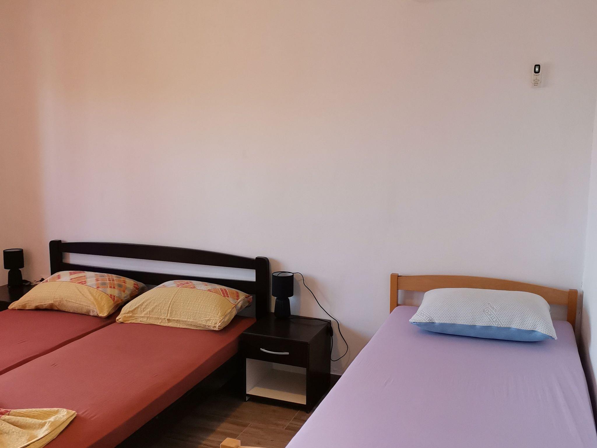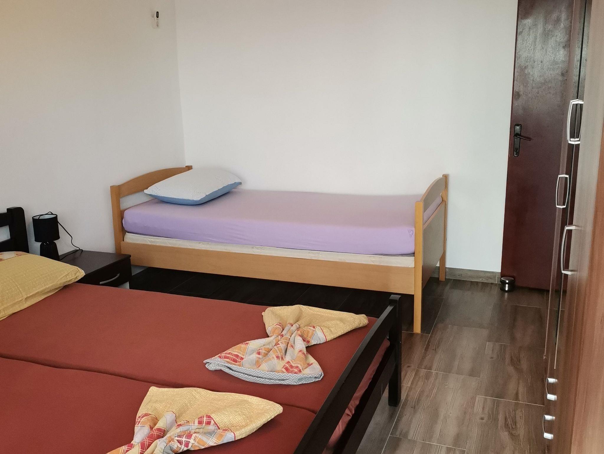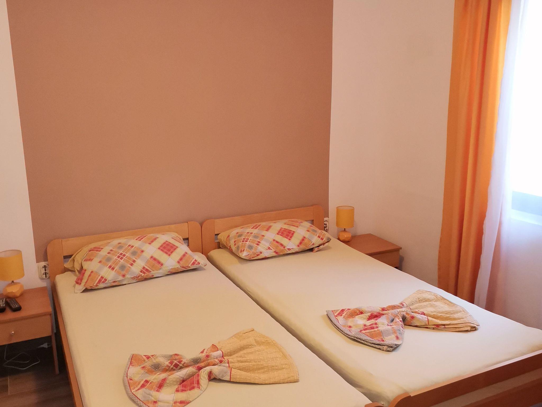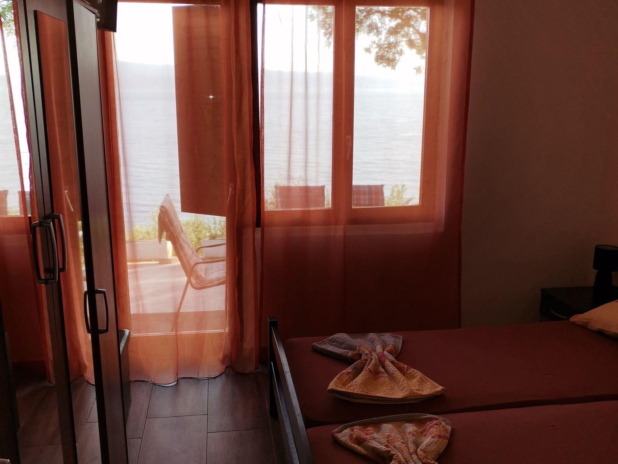 Ferienwohnung bietet Platz für 5 Gäste. Die Betten sind in Schlafzimmern, die es 2 gibt, innerhalb einer Gesamtfläche von 45m2, angeordnet. Die Gäste haben eine eigene Terrasse zur Verfügung, auf der sie in warmen Sommernächten genießen können. Das Apartment bietet Meerblick. Es ist erlaubt, Speisen auf dem Gemeinschafts-Grill vorzubereiten. IM PREIS INBEGRIFFEN: Kurtaxe, Endreinigung, Klimatisierung, Parkplatz, Internet, Bügeleisen, Bügelbrett, Föhn, tragbarer Grill, Sonnenschirm. VERBINDLICHE ZUSÄTZLICHE KOSTEN: Aufzahlung für Kurzaufenthalte (prozentualer Zuschlag pro Nächtigungsanzahl: 30% - 1, 20% - 2, 10% - 3). UNVERBINDLICHE ZUSÄTZLICHE KOSTEN: Bootsanlegeplatz (20,00 € pro Nacht). Die Verfügbarkeit zusätzlicher Dienstleistungen in Ihrem reservierten Termin und die Preise derselben (falls nicht aufgeführt) müssen im Voraus überprüft werden. Zusätzliche Dienstleistungen die in der Zahlungsaufforderung nicht aufgeführt sind werden direkt beim Vermieter bezahlt, angenommen der Gast nutzt auch diese. Ermäßigung auf den Grundpreis: Gratistag 14=13 (bei einem Aufenthalt von 14 Tagen oder mehr erhalten Sie einen Gratistag für den Aufenthalt bis 31.12.26).