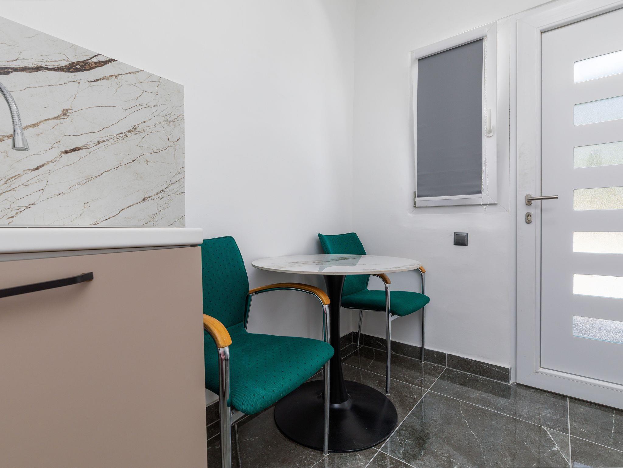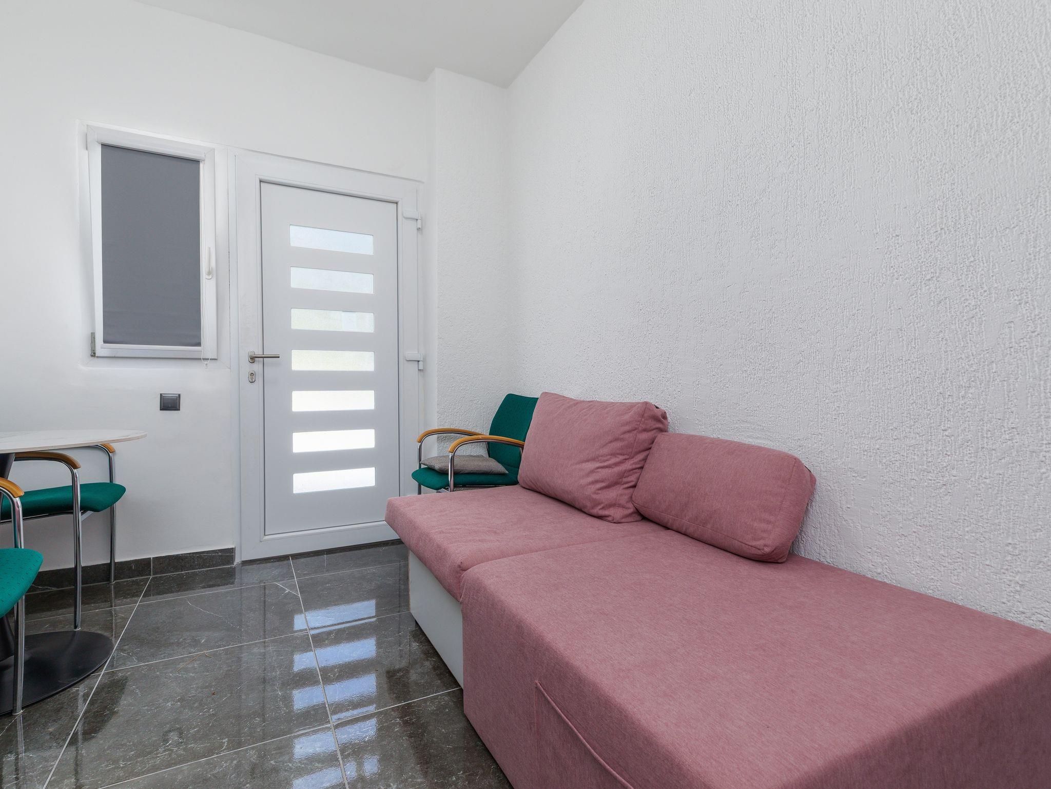 Ferienwohnung bietet Platz für 3 Gäste. Die Betten sind in Schlafzimmern, die es 1 gibt, und in Esszimmer, innerhalb einer Gesamtfläche von 22m2, angeordnet. Die Gäste haben eine eigene Terrasse zur Verfügung, auf der sie in warmen Sommernächten genießen können. Das Apartment bietet Meerblick. Es ist erlaubt, Speisen auf dem Gemeinschafts-Grill vorzubereiten. IM PREIS INBEGRIFFEN: Kurtaxe, Endreinigung, Parkplatz, Internet. VERBINDLICHE ZUSÄTZLICHE KOSTEN: Aufzahlung für Kurzaufenthalte (prozentualer Zuschlag pro Nächtigungsanzahl: 30% - 1, 20% - 2, 10% - 3). UNVERBINDLICHE ZUSÄTZLICHE KOSTEN: Klimatisierung (5,00 € pro Nacht). Die Verfügbarkeit zusätzlicher Dienstleistungen in Ihrem reservierten Termin und die Preise derselben (falls nicht aufgeführt) müssen im Voraus überprüft werden. Zusätzliche Dienstleistungen die in der Zahlungsaufforderung nicht aufgeführt sind werden direkt beim Vermieter bezahlt, angenommen der Gast nutzt auch diese.