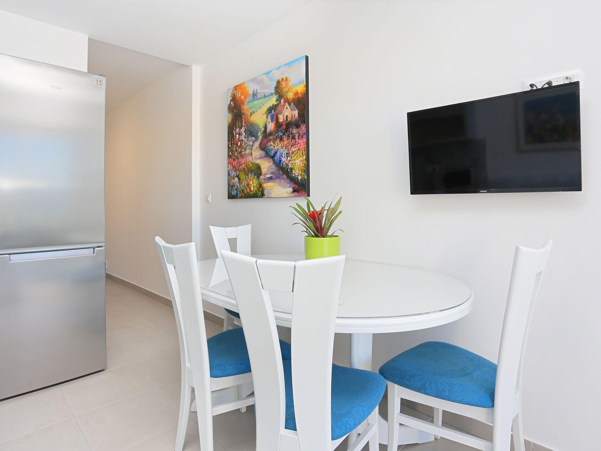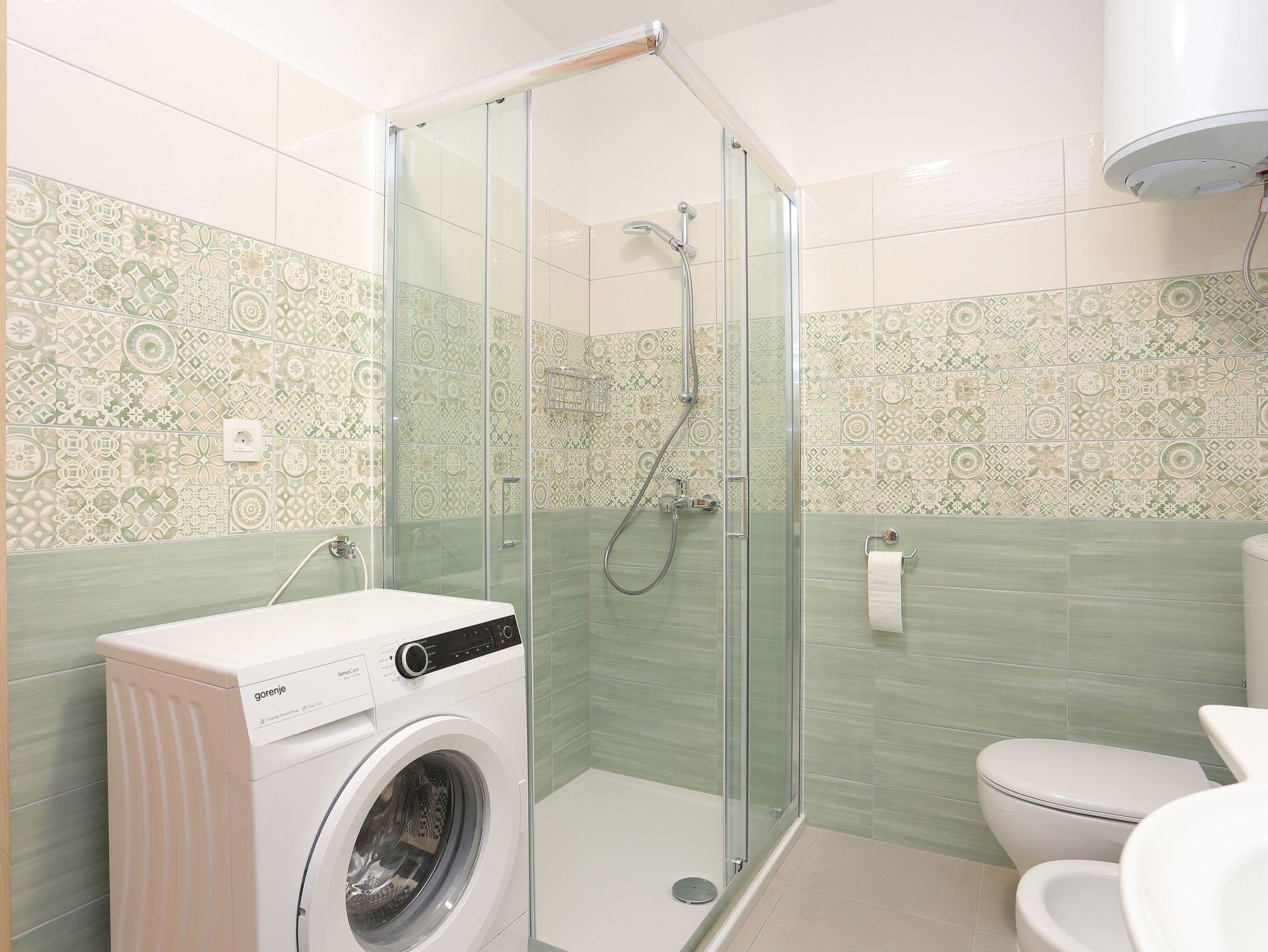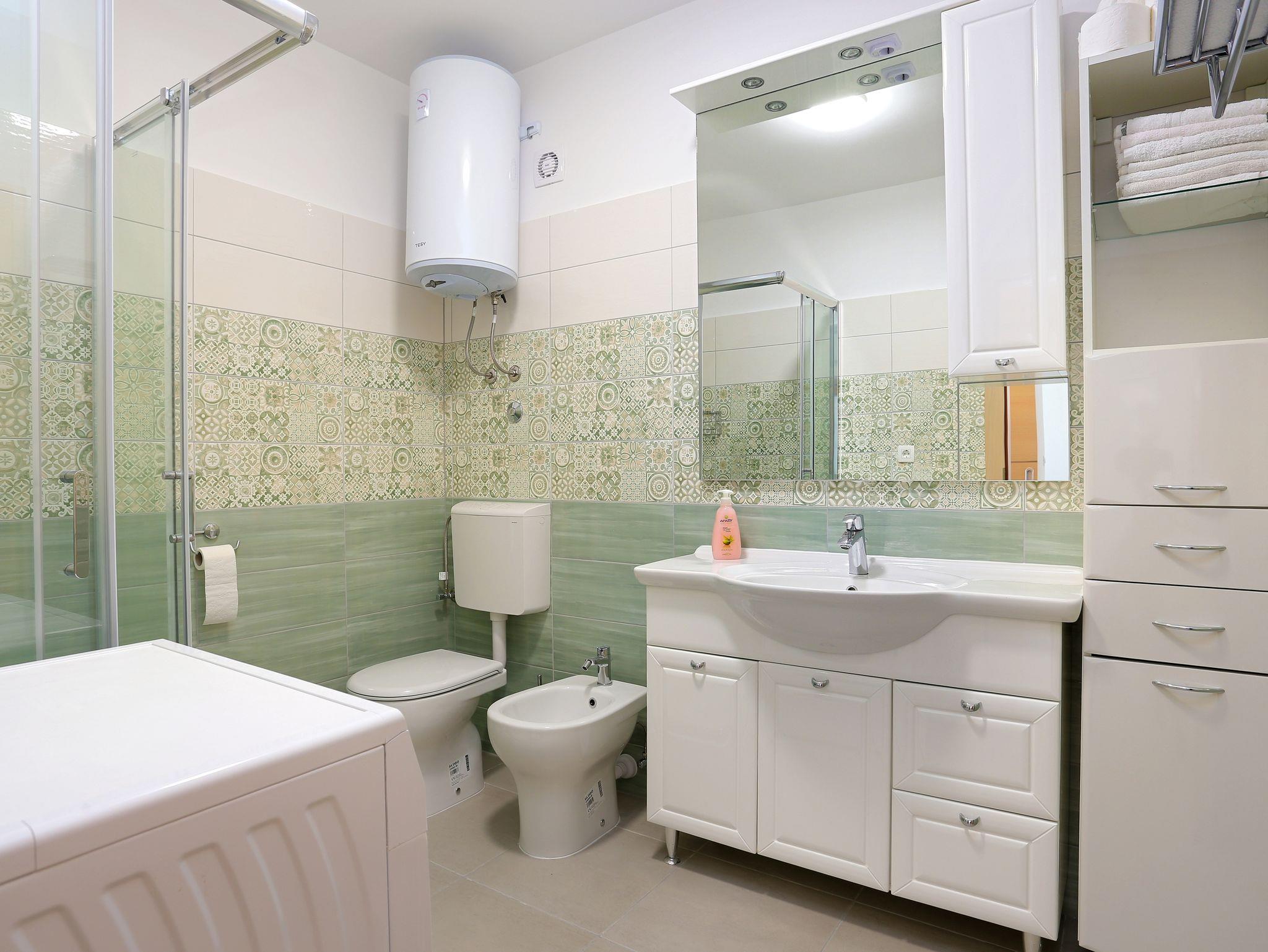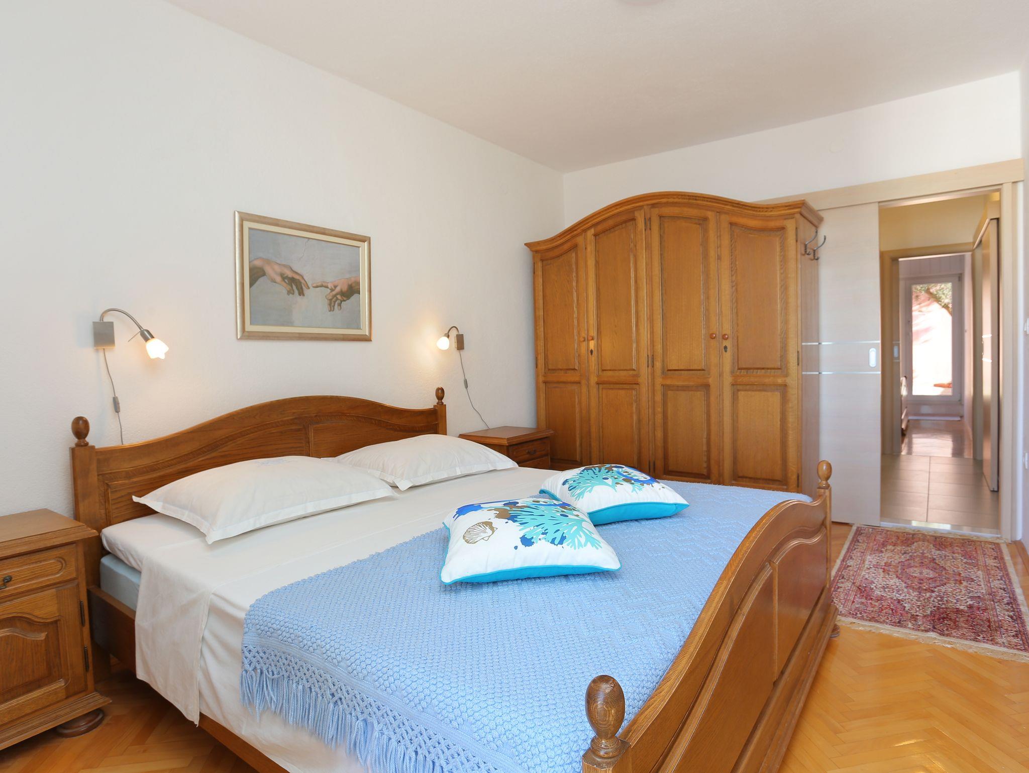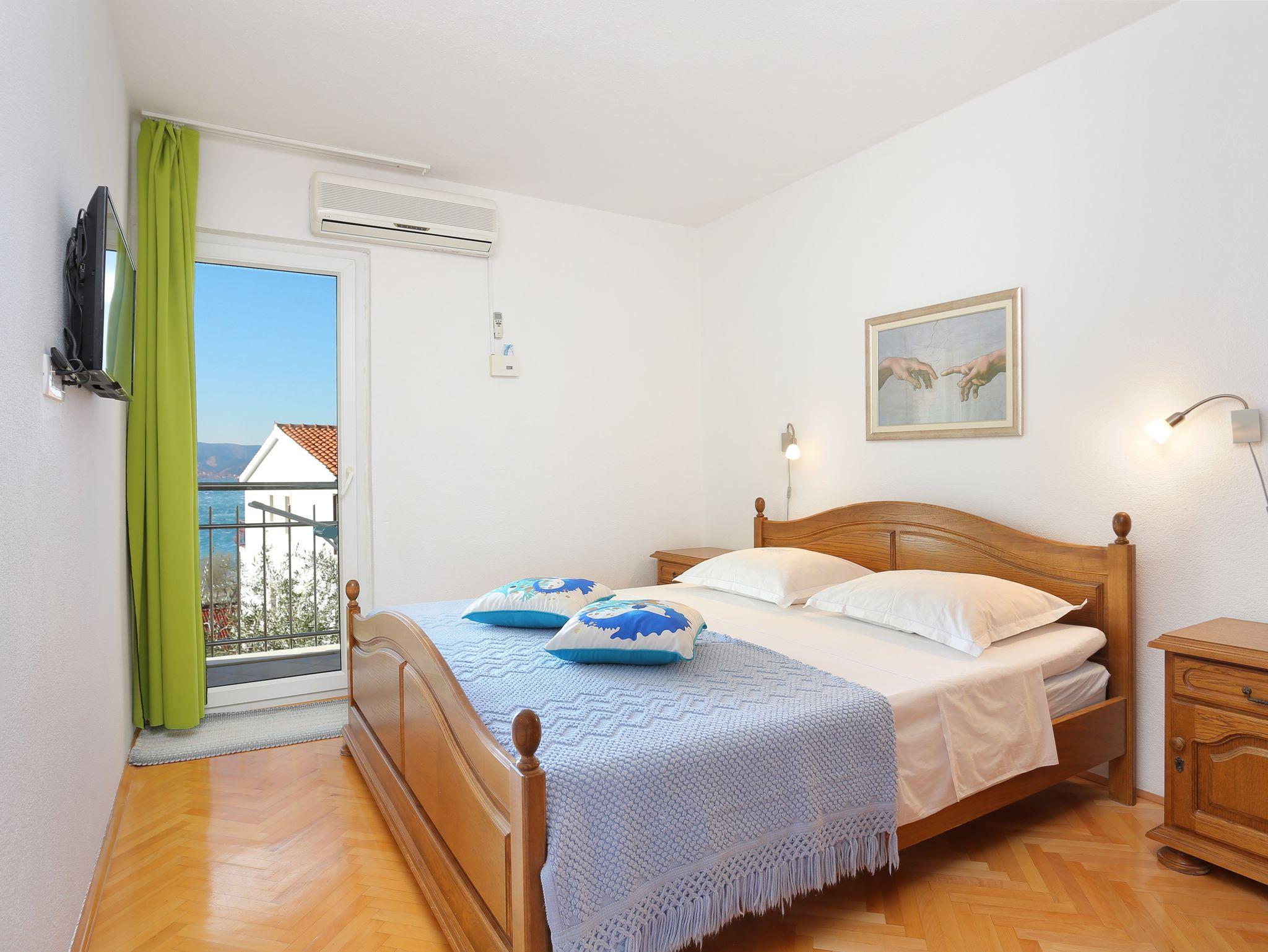 Ferienwohnung bietet Platz für 4 Gäste. Die Betten sind in Schlafzimmern, die es 2 gibt, innerhalb einer Gesamtfläche von 56m2, angeordnet. Die Gäste haben eine eigene Terrasse zur Verfügung, auf der sie in warmen Sommernächten genießen können. Das Apartment bietet Meerblick. Es ist erlaubt, Speisen auf dem Gemeinschafts-Grill vorzubereiten. IM PREIS INBEGRIFFEN: Kurtaxe, Endreinigung, Klimatisierung, Parkplatz, Garage, Internet, Bügeleisen, Bügelbrett, Föhn, tragbarer Grill. VERBINDLICHE ZUSÄTZLICHE KOSTEN: Aufzahlung für Kurzaufenthalte (prozentualer Zuschlag pro Nächtigungsanzahl: 30% - 1, 20% - 2, 10% - 3). UNVERBINDLICHE ZUSÄTZLICHE KOSTEN: Wäschewaschen (3,00 € Waschen). Die Verfügbarkeit zusätzlicher Dienstleistungen in Ihrem reservierten Termin und die Preise derselben (falls nicht aufgeführt) müssen im Voraus überprüft werden. Zusätzliche Dienstleistungen die in der Zahlungsaufforderung nicht aufgeführt sind werden direkt beim Vermieter bezahlt, angenommen der Gast nutzt auch diese.