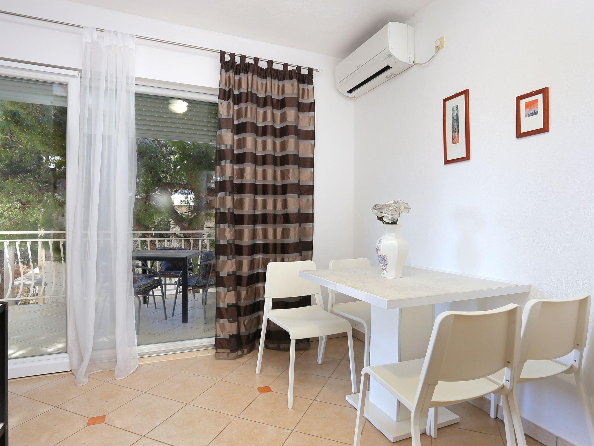 Ferienwohnung bietet Platz für 4 Gäste. Die Betten sind in Schlafzimmern, die es 1 gibt, und in Wohnzimmer, innerhalb einer Gesamtfläche von 40m2, angeordnet. Die Gäste haben eine eigene Terrasse zur Verfügung, auf der sie in warmen Sommernächten genießen können. Das Apartment bietet Meerblick. Es ist erlaubt, Speisen auf dem Gemeinschafts-Grill vorzubereiten. IM PREIS INBEGRIFFEN: Kurtaxe, Endreinigung, Klimatisierung, Parkplatz, Internet, Wäschewaschen, Bügeleisen, Bügelbrett, Föhn, Sonnenschirm, Liegestühle. VERBINDLICHE ZUSÄTZLICHE KOSTEN: Aufzahlung für Kurzaufenthalte (prozentualer Zuschlag pro Nächtigungsanzahl: 30% - 1, 20% - 2, 10% - 3). Die Verfügbarkeit zusätzlicher Dienstleistungen in Ihrem reservierten Termin und die Preise derselben (falls nicht aufgeführt) müssen im Voraus überprüft werden. Zusätzliche Dienstleistungen die in der Zahlungsaufforderung nicht aufgeführt sind werden direkt beim Vermieter bezahlt, angenommen der Gast nutzt auch diese.