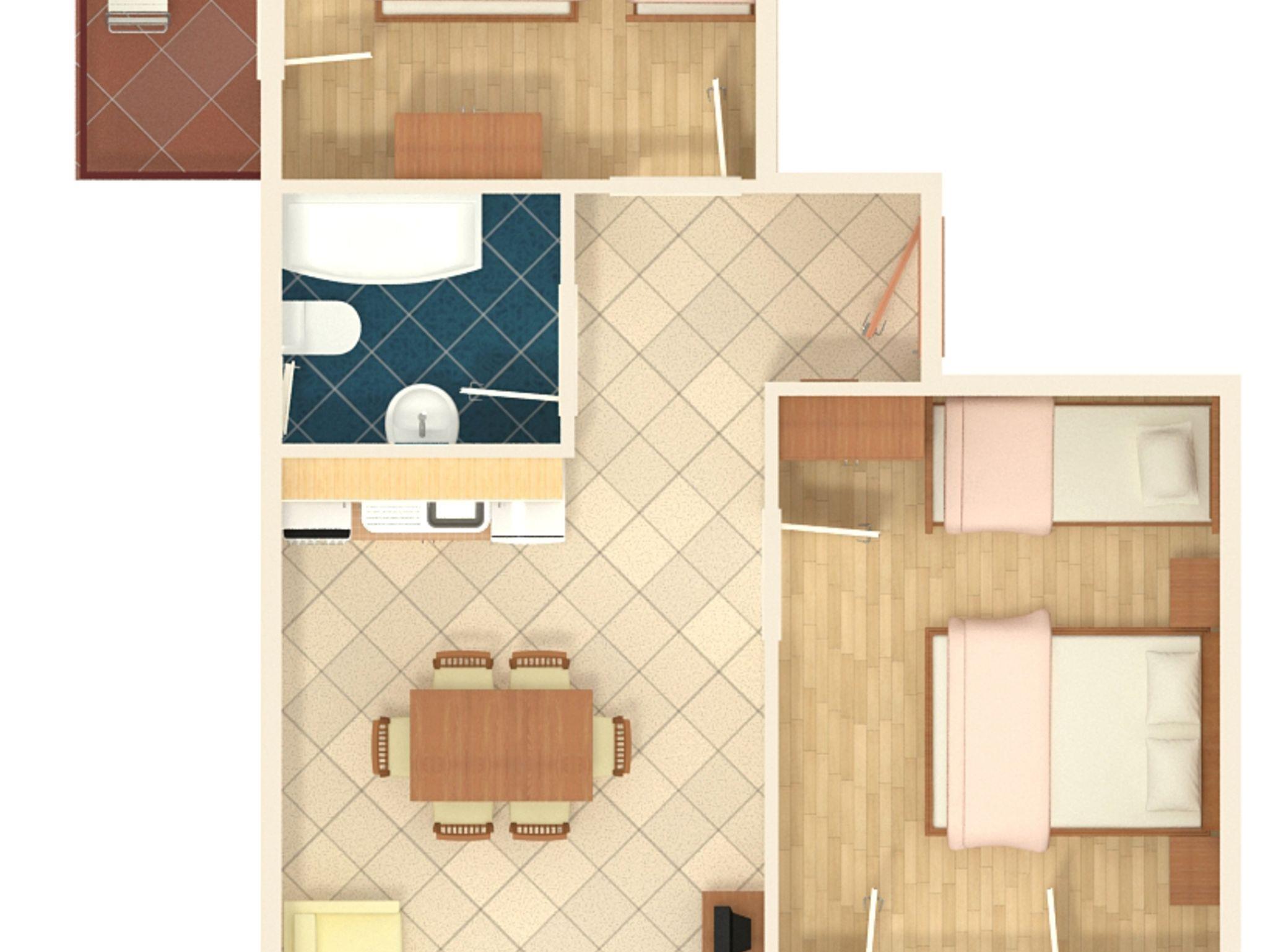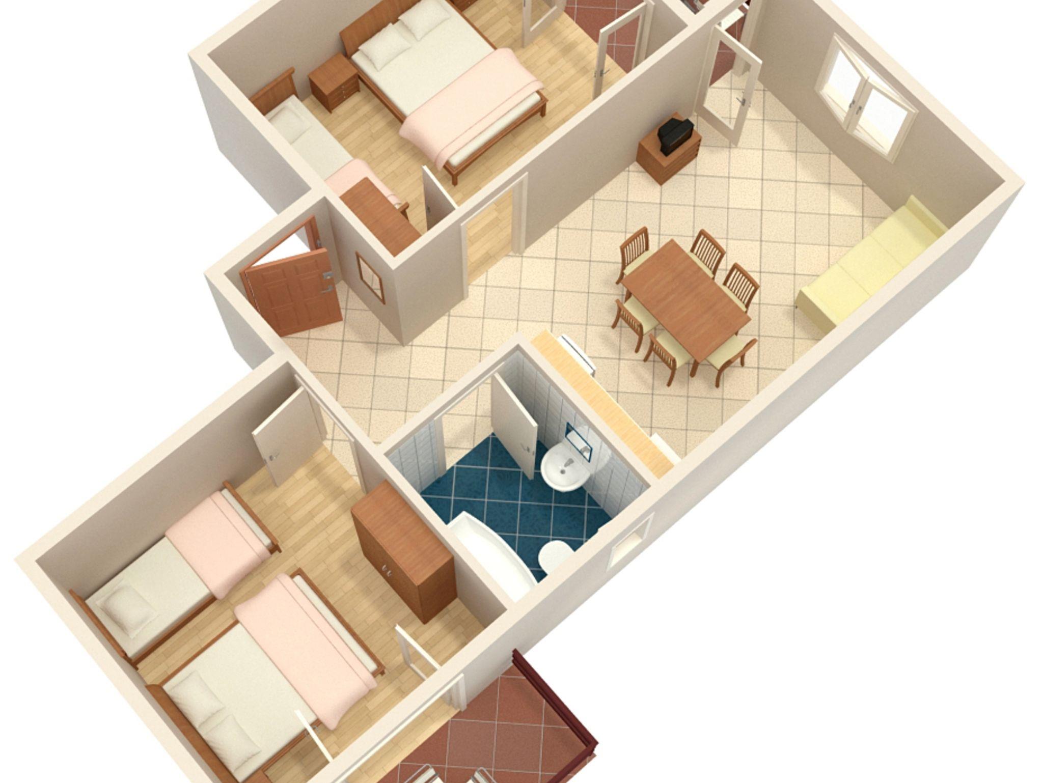 Ferienwohnung bietet Platz für 6 Gäste. Die Betten sind in Schlafzimmern, die es 2 gibt, innerhalb einer Gesamtfläche von 46m2, angeordnet. Die Gäste haben einen eigenen Balkon zur Verfügung, auf der sie in warmen Sommernächten genießen können. Das Apartment bietet Meerblick. Es ist erlaubt, Speisen auf dem Gemeinschafts-Grill vorzubereiten. Die reservierte Unterkunftseinheit verfügt über einen gemeinsame Terrasse. IM PREIS INBEGRIFFEN: Kurtaxe, Endreinigung, Klimatisierung, Parkplatz, Internet. VERBINDLICHE ZUSÄTZLICHE KOSTEN: Aufzahlung für Kurzaufenthalte (prozentualer Zuschlag pro Nächtigungsanzahl: 30% - 1, 20% - 2, 10% - 3). Die Verfügbarkeit zusätzlicher Dienstleistungen in Ihrem reservierten Termin und die Preise derselben (falls nicht aufgeführt) müssen im Voraus überprüft werden. Zusätzliche Dienstleistungen die in der Zahlungsaufforderung nicht aufgeführt sind werden direkt beim Vermieter bezahlt, angenommen der Gast nutzt auch diese.