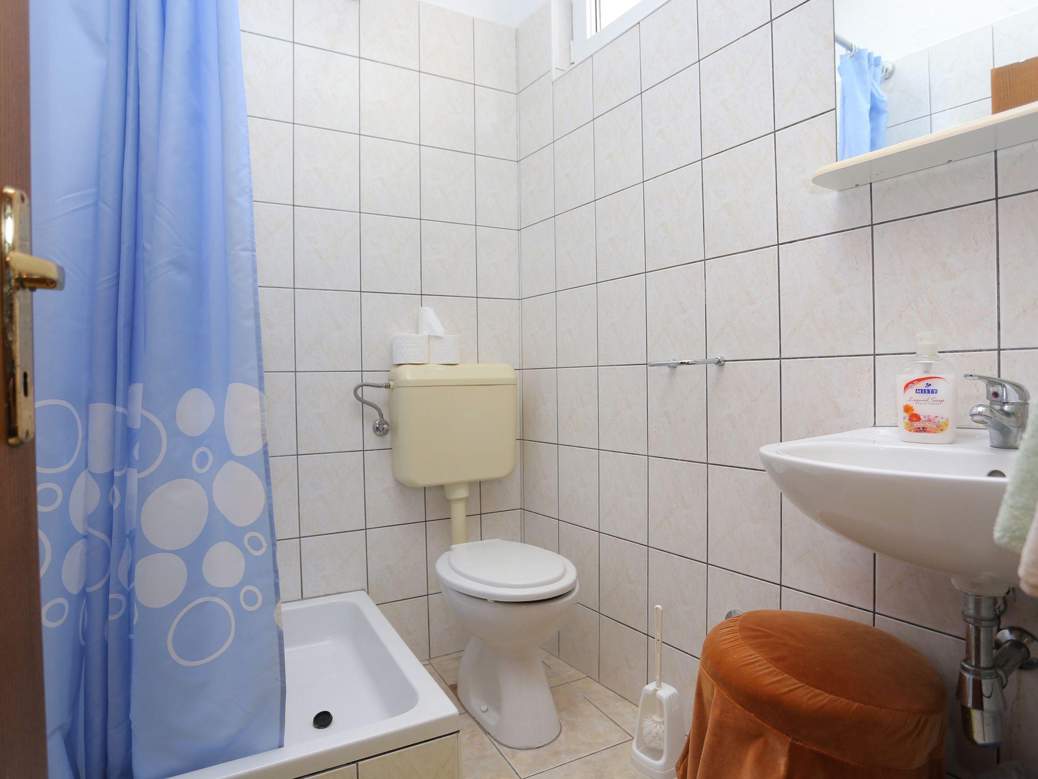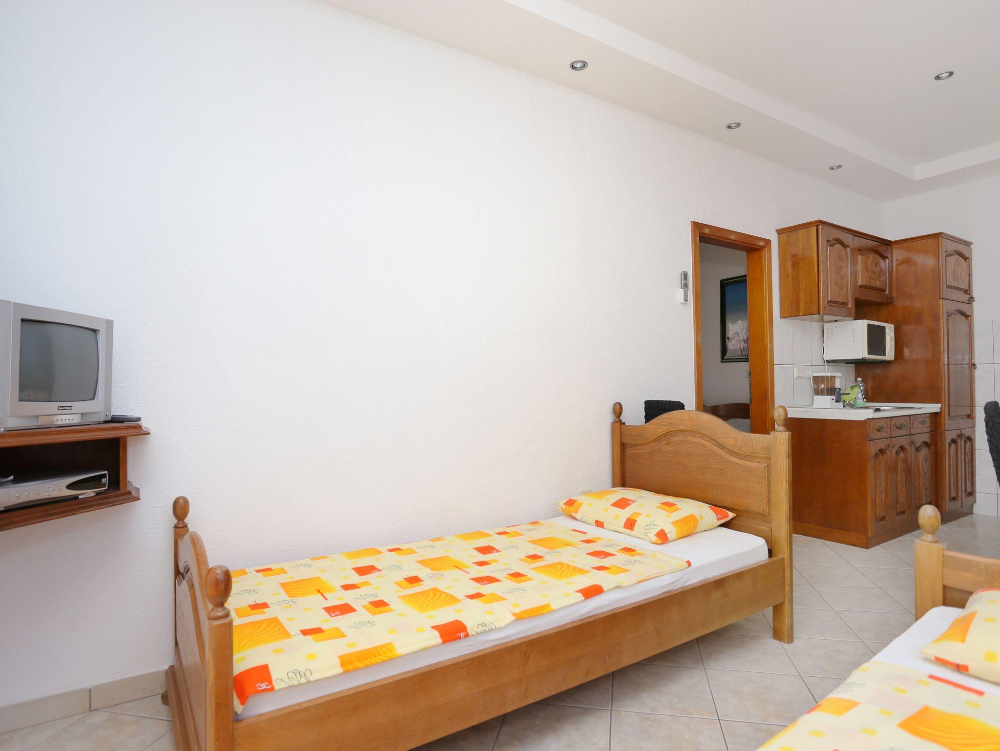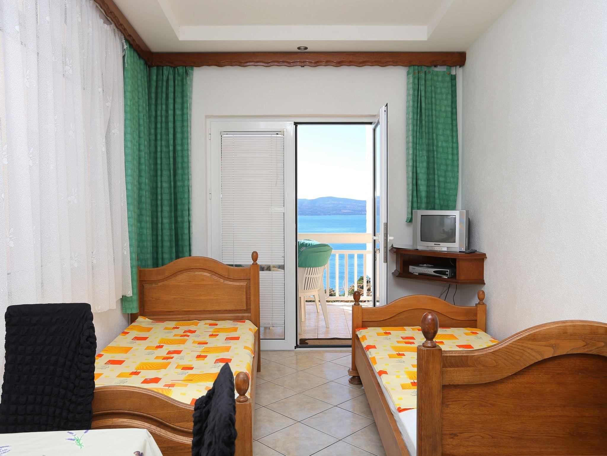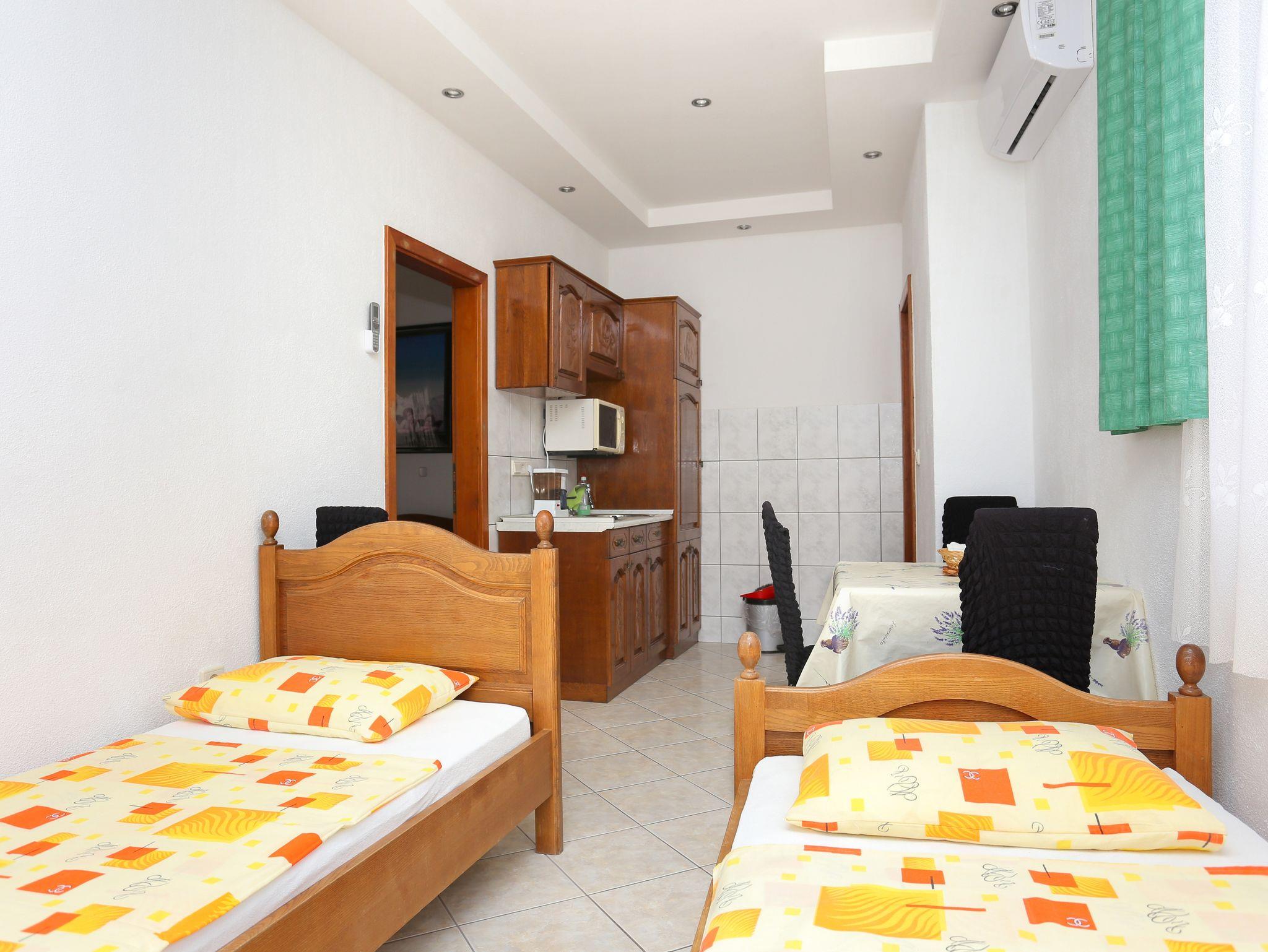 Ferienwohnung bietet Platz für 4 Gäste. Die Betten sind in Schlafzimmern, die es 1 gibt, und in Esszimmer, innerhalb einer Gesamtfläche von 27m2, angeordnet. Die Gäste haben eine eigene Terrasse zur Verfügung, auf der sie in warmen Sommernächten genießen können. Das Apartment bietet Meerblick. Es ist erlaubt, Speisen auf dem Gemeinschafts-Grill vorzubereiten. IM PREIS INBEGRIFFEN: Kurtaxe, Endreinigung, Parkplatz, Internet, Kinderbett, Bügeleisen, Bügelbrett, Föhn, tragbarer Grill. VERBINDLICHE ZUSÄTZLICHE KOSTEN: Aufzahlung für Kurzaufenthalte (prozentualer Zuschlag pro Nächtigungsanzahl: 30% - 1, 20% - 2, 10% - 3). UNVERBINDLICHE ZUSÄTZLICHE KOSTEN: Klimatisierung (5,00 € pro Nacht), Wäschewaschen (5,00 € Waschen). Die Verfügbarkeit zusätzlicher Dienstleistungen in Ihrem reservierten Termin und die Preise derselben (falls nicht aufgeführt) müssen im Voraus überprüft werden. Zusätzliche Dienstleistungen die in der Zahlungsaufforderung nicht aufgeführt sind werden direkt beim Vermieter bezahlt, angenommen der Gast nutzt auch diese. Ermäßigung auf den Grundpreis: Gratistag 14=13 (bei einem Aufenthalt von 14 Tagen oder mehr erhalten Sie einen Gratistag für den Aufenthalt bis 31.12.26).