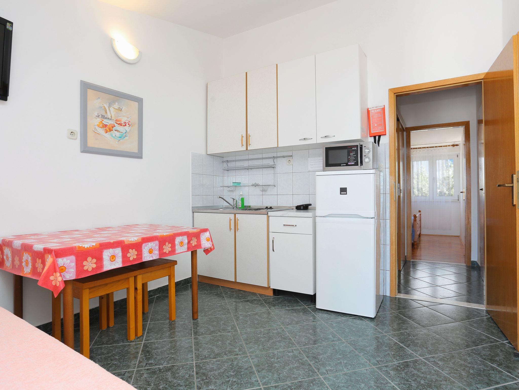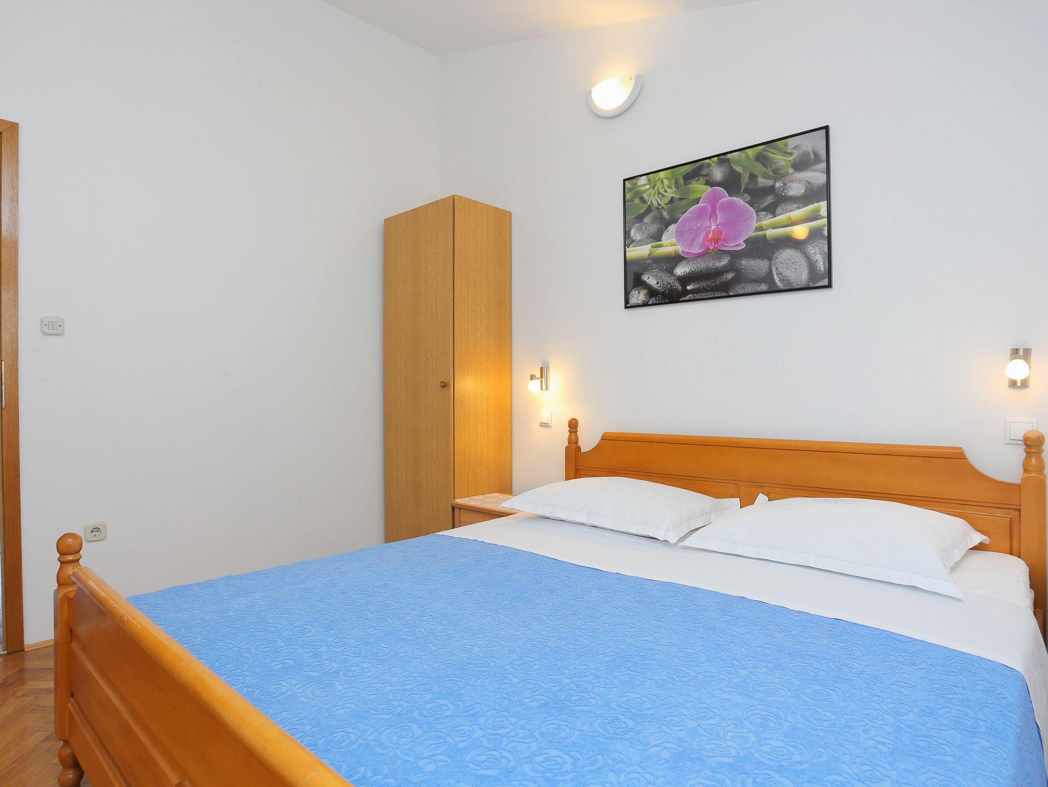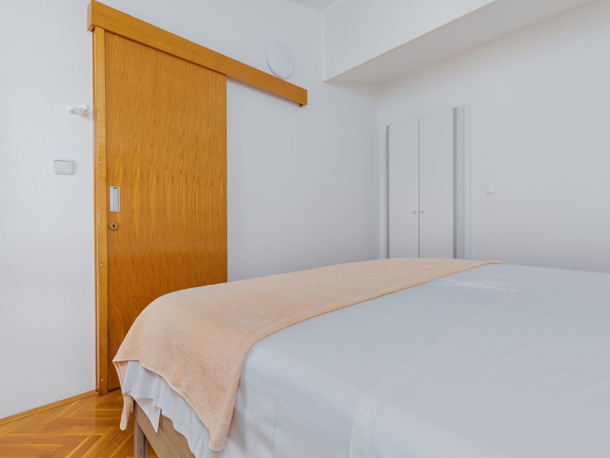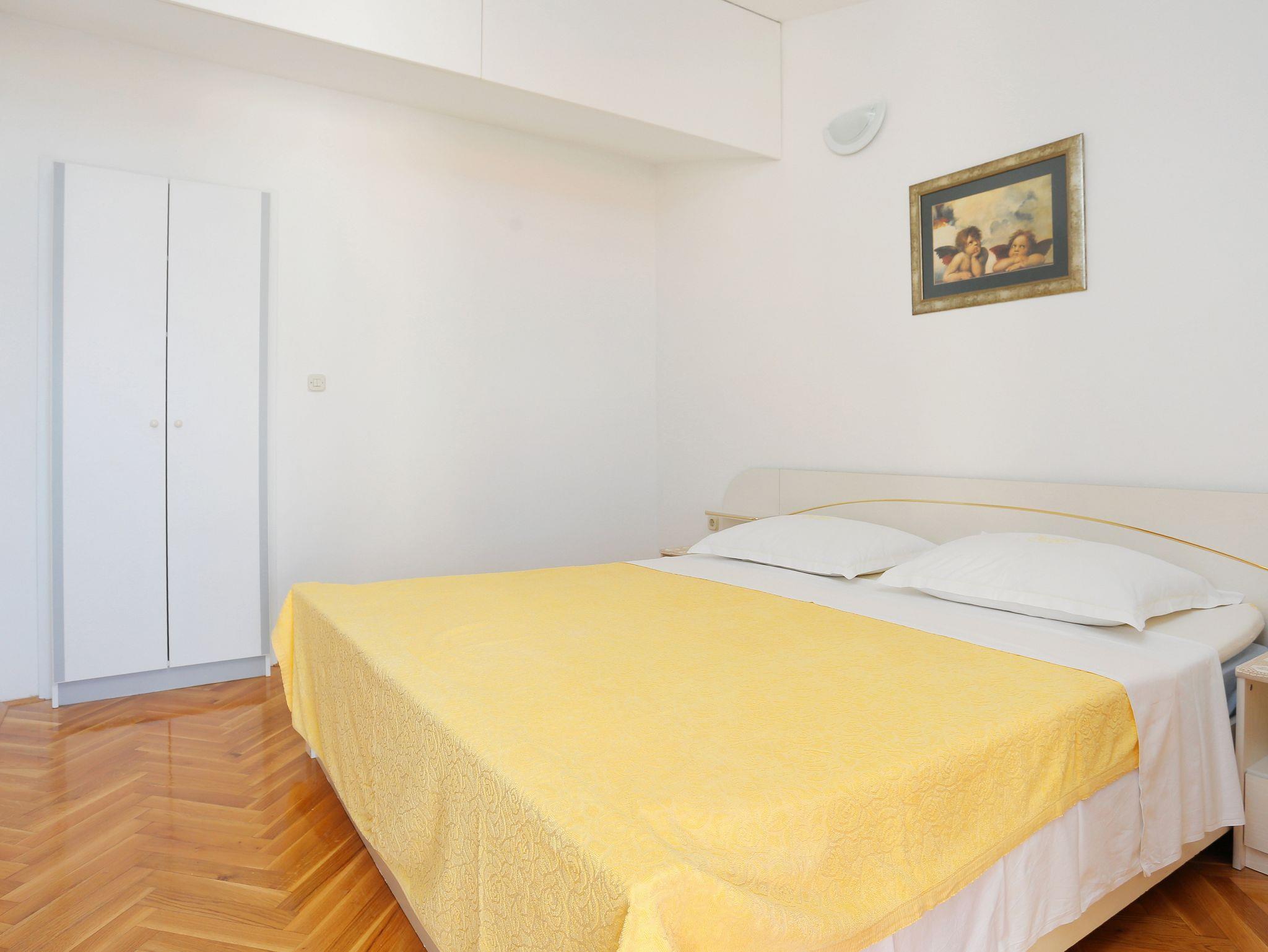 Ferienwohnung bietet Platz für 5 Gäste. Die Betten sind in Schlafzimmern, die es 2 gibt, und in Esszimmer, innerhalb einer Gesamtfläche von 38m2, angeordnet. Die Gäste haben eine eigene Terrasse zur Verfügung, auf der sie in warmen Sommernächten genießen können. Das Apartment bietet Meerblick. Es ist erlaubt, Speisen auf dem Gemeinschafts-Grill vorzubereiten. IM PREIS INBEGRIFFEN: Kurtaxe, Endreinigung, Klimatisierung, Parkplatz, Garage, Internet, Bügeleisen, Bügelbrett, Föhn, tragbarer Grill. VERBINDLICHE ZUSÄTZLICHE KOSTEN: Aufzahlung für Kurzaufenthalte (prozentualer Zuschlag pro Nächtigungsanzahl: 30% - 1, 20% - 2, 10% - 3). UNVERBINDLICHE ZUSÄTZLICHE KOSTEN: Wäschewaschen (3,00 € Waschen). Die Verfügbarkeit zusätzlicher Dienstleistungen in Ihrem reservierten Termin und die Preise derselben (falls nicht aufgeführt) müssen im Voraus überprüft werden. Zusätzliche Dienstleistungen die in der Zahlungsaufforderung nicht aufgeführt sind werden direkt beim Vermieter bezahlt, angenommen der Gast nutzt auch diese.