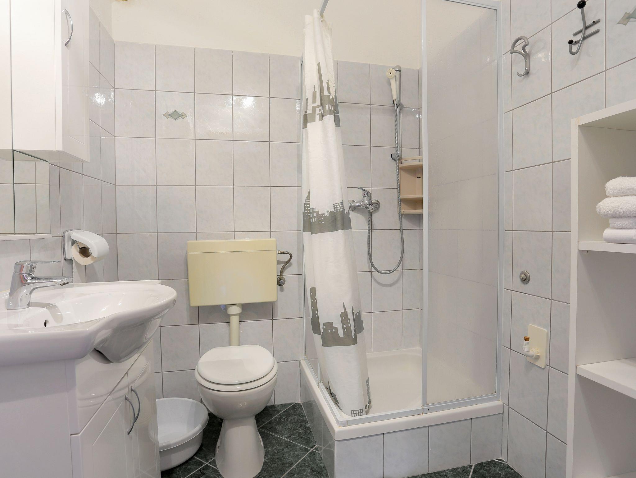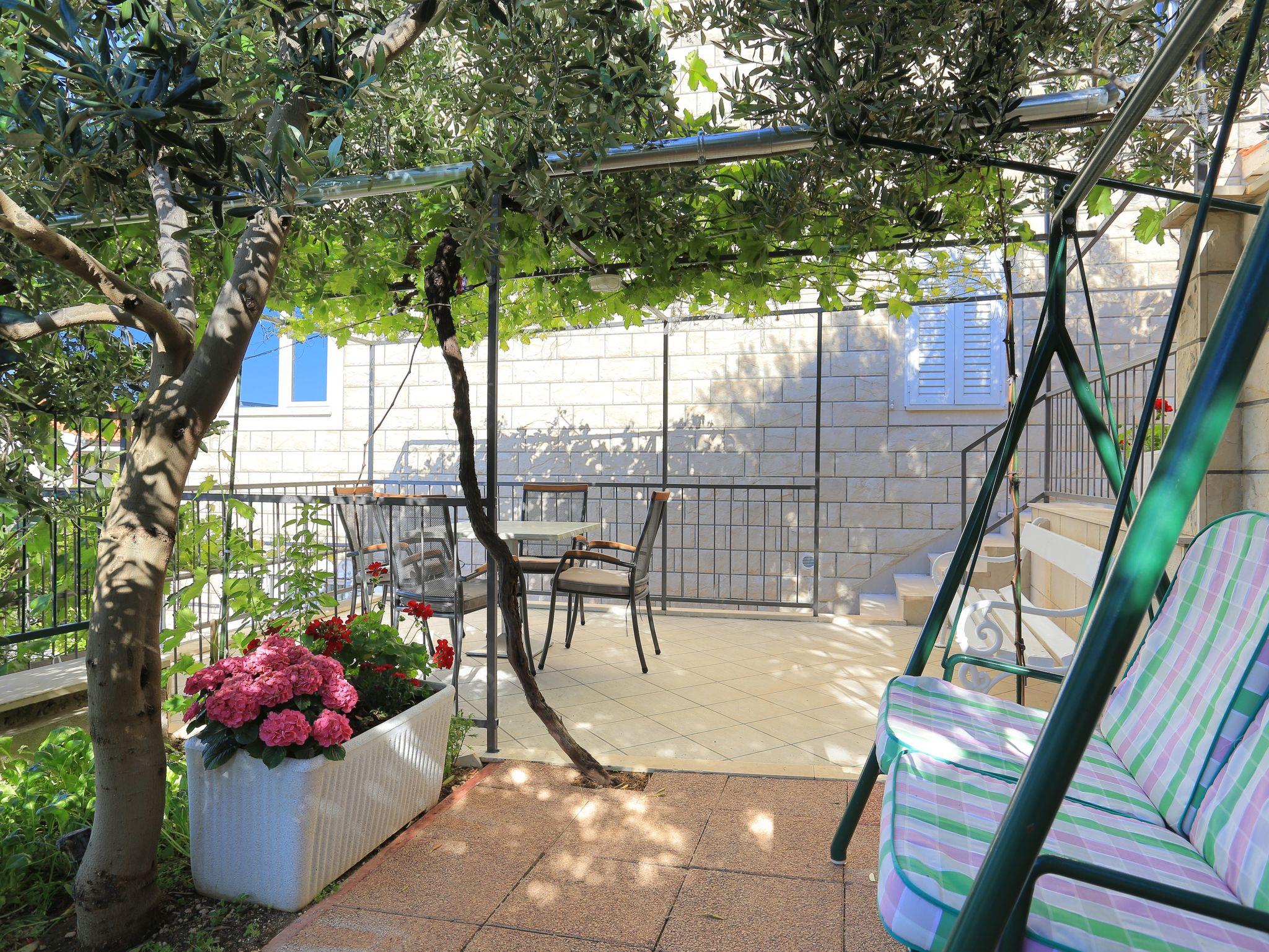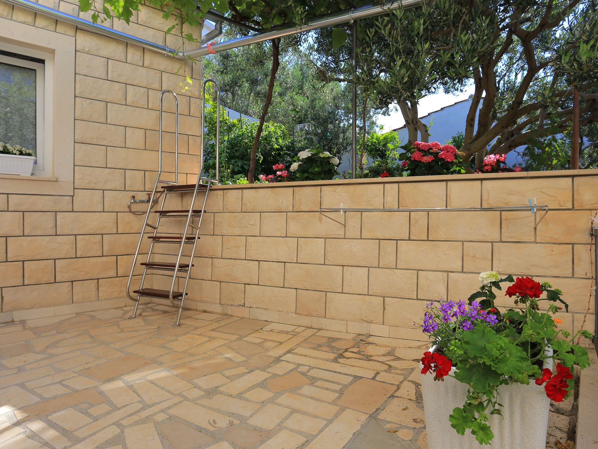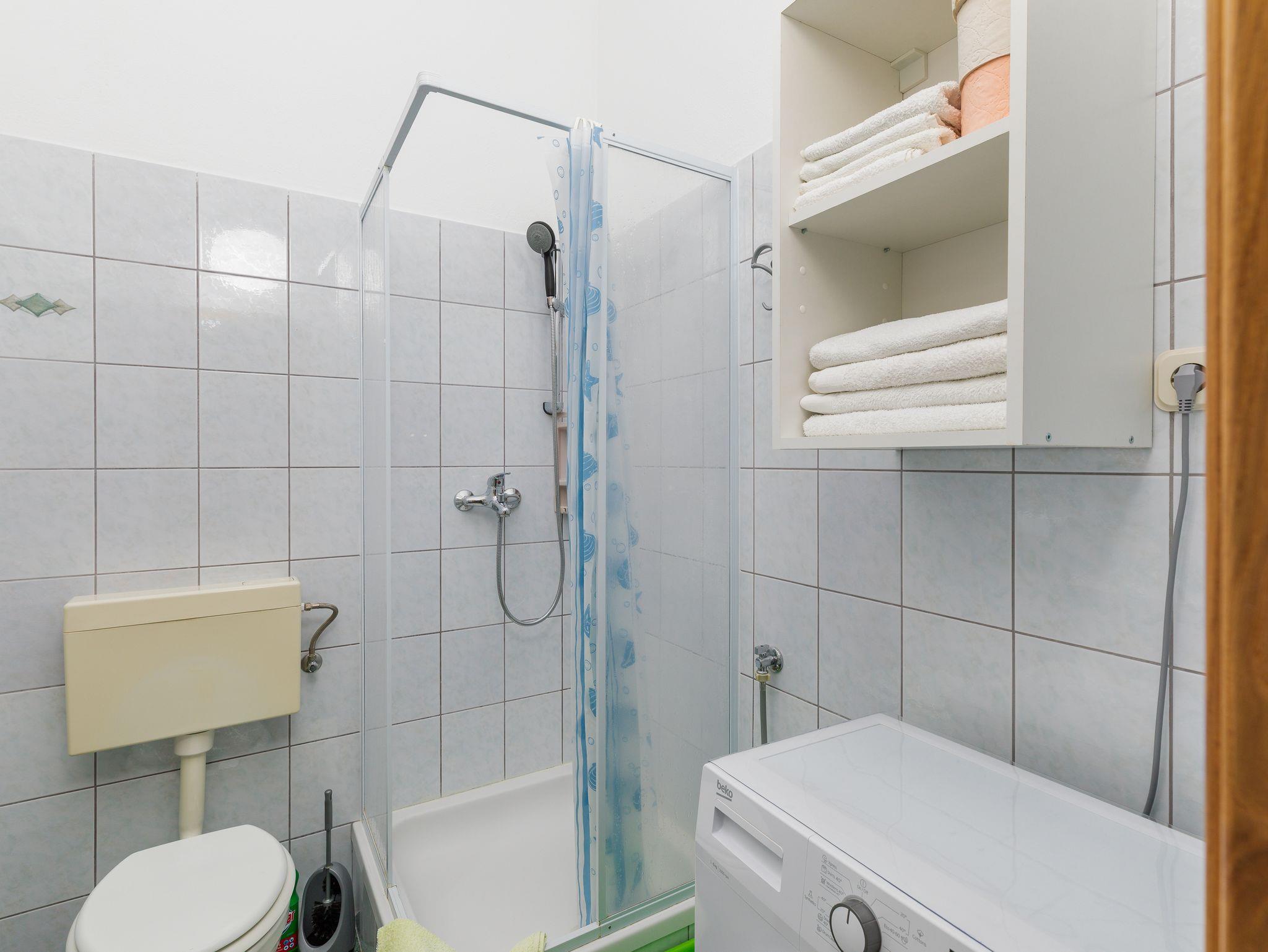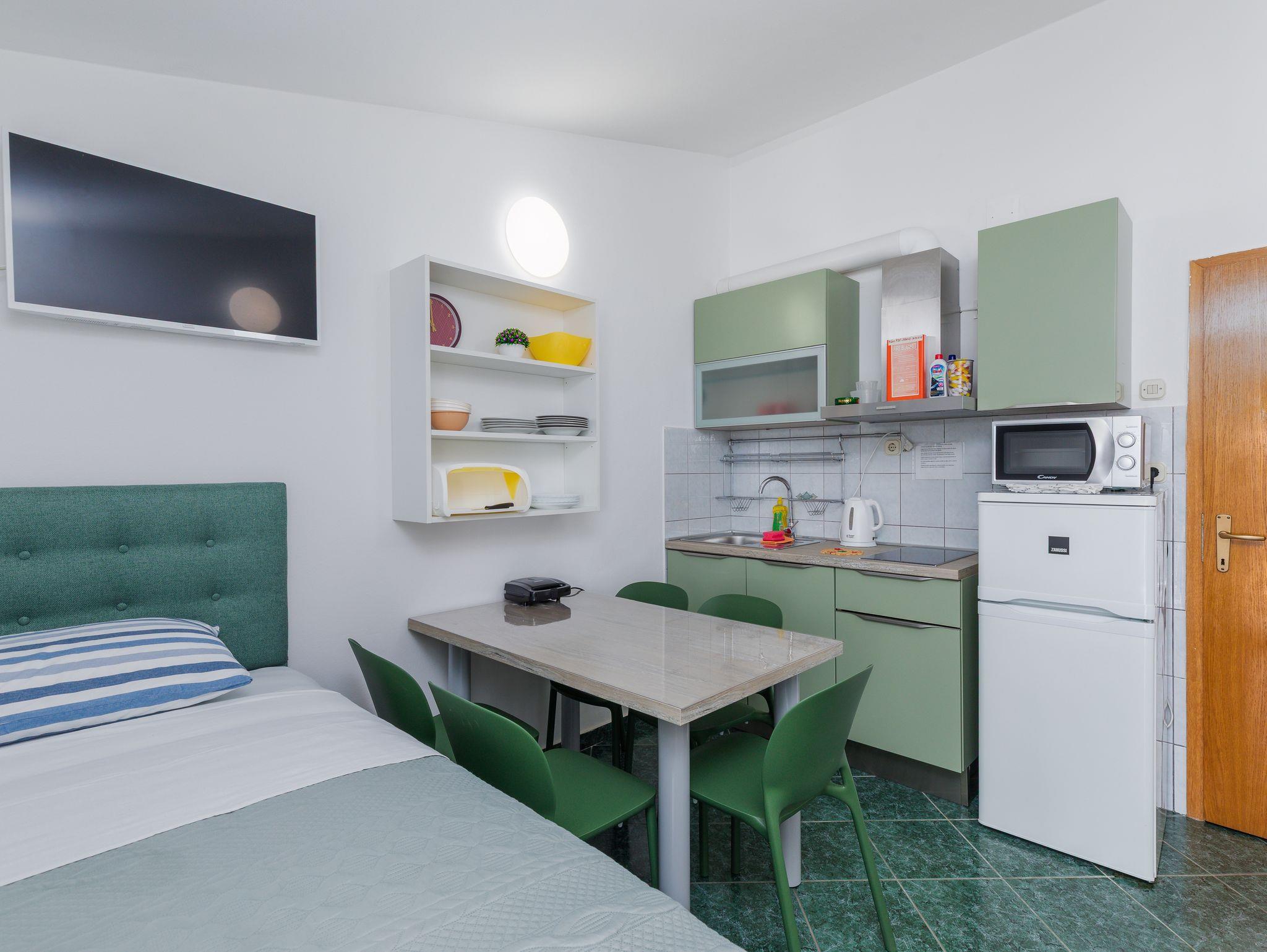 Ferienwohnung bietet Platz für 5 Gäste. Die Betten sind in Schlafzimmern, die es 2 gibt, und in Esszimmer, innerhalb einer Gesamtfläche von 38m2, angeordnet. Die Gäste haben eine eigene Terrasse zur Verfügung, auf der sie in warmen Sommernächten genießen können. Das Apartment bietet Meerblick. Es ist erlaubt, Speisen auf dem Gemeinschafts-Grill vorzubereiten. IM PREIS INBEGRIFFEN: Kurtaxe, Endreinigung, Klimatisierung, Parkplatz, Garage, Internet, Bügeleisen, Bügelbrett, Föhn, tragbarer Grill. VERBINDLICHE ZUSÄTZLICHE KOSTEN: Aufzahlung für Kurzaufenthalte (prozentualer Zuschlag pro Nächtigungsanzahl: 30% - 1, 20% - 2, 10% - 3). UNVERBINDLICHE ZUSÄTZLICHE KOSTEN: Wäschewaschen (3,00 € Waschen). Die Verfügbarkeit zusätzlicher Dienstleistungen in Ihrem reservierten Termin und die Preise derselben (falls nicht aufgeführt) müssen im Voraus überprüft werden. Zusätzliche Dienstleistungen die in der Zahlungsaufforderung nicht aufgeführt sind werden direkt beim Vermieter bezahlt, angenommen der Gast nutzt auch diese.