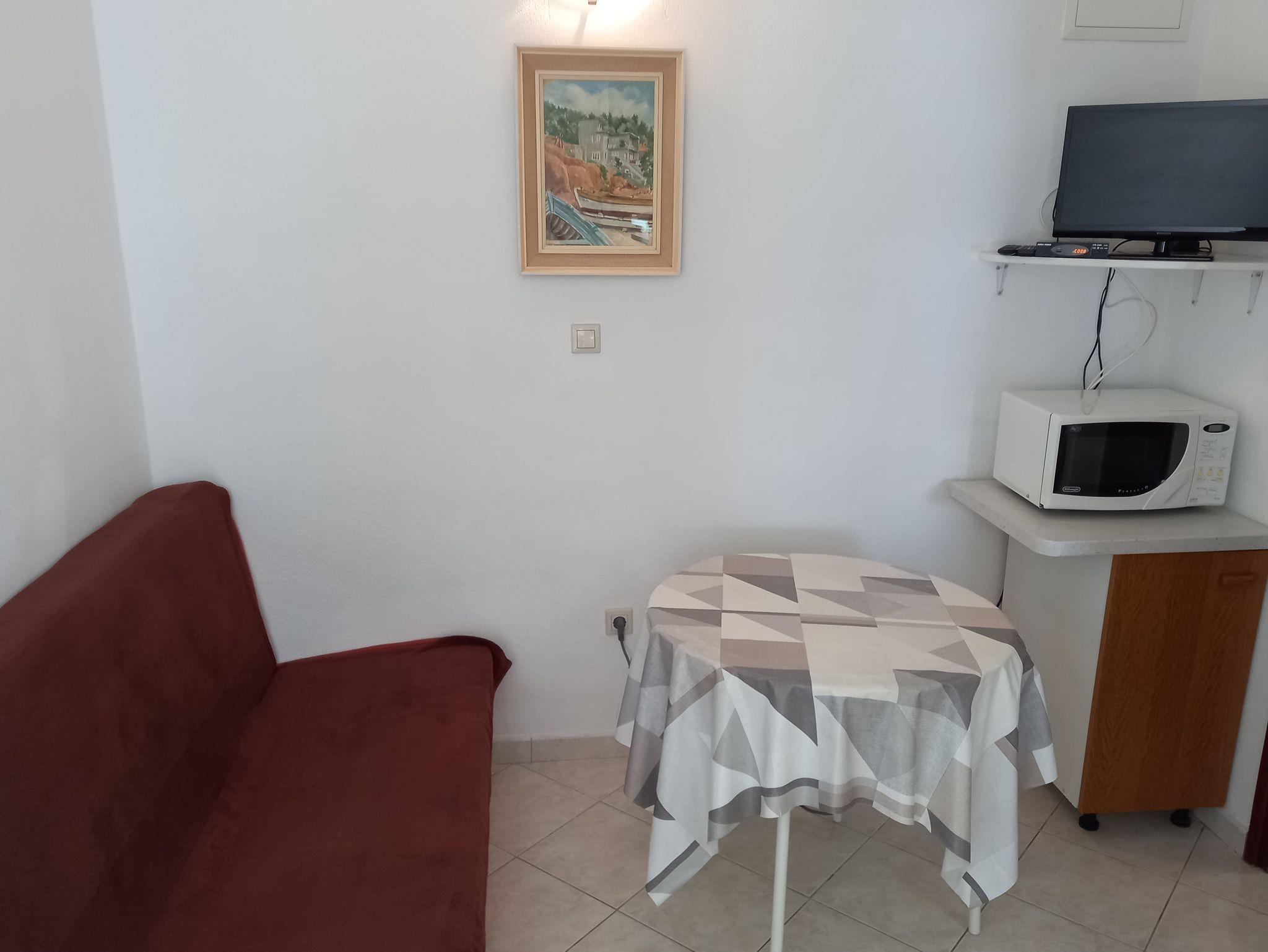Ferienwohnung bietet Platz für 3 Gäste. Die Betten sind in Schlafzimmern, die es 1 gibt, und in Wohnzimmer, innerhalb einer Gesamtfläche von 25m2, angeordnet. Die Gäste haben eine eigene Terrasse zur Verfügung, auf der sie in warmen Sommernächten genießen können. Das Apartment bietet Meerblick. Es ist erlaubt, Speisen auf dem Gemeinschafts-Grill vorzubereiten. IM PREIS INBEGRIFFEN: Kurtaxe, Endreinigung, Parkplatz, Garage, Internet. VERBINDLICHE ZUSÄTZLICHE KOSTEN: Aufzahlung für Kurzaufenthalte (prozentualer Zuschlag pro Nächtigungsanzahl: 30% - 1, 20% - 2, 10% - 3). UNVERBINDLICHE ZUSÄTZLICHE KOSTEN: Klimatisierung (0,40 € pro Stunde). Die Verfügbarkeit zusätzlicher Dienstleistungen in Ihrem reservierten Termin und die Preise derselben (falls nicht aufgeführt) müssen im Voraus überprüft werden. Zusätzliche Dienstleistungen die in der Zahlungsaufforderung nicht aufgeführt sind werden direkt beim Vermieter bezahlt, angenommen der Gast nutzt auch diese. Ermäßigung auf den Grundpreis: Gratistag 14=13 (bei einem Aufenthalt von 14 Tagen oder mehr erhalten Sie einen Gratistag für den Aufenthalt bis 31.12.26).
