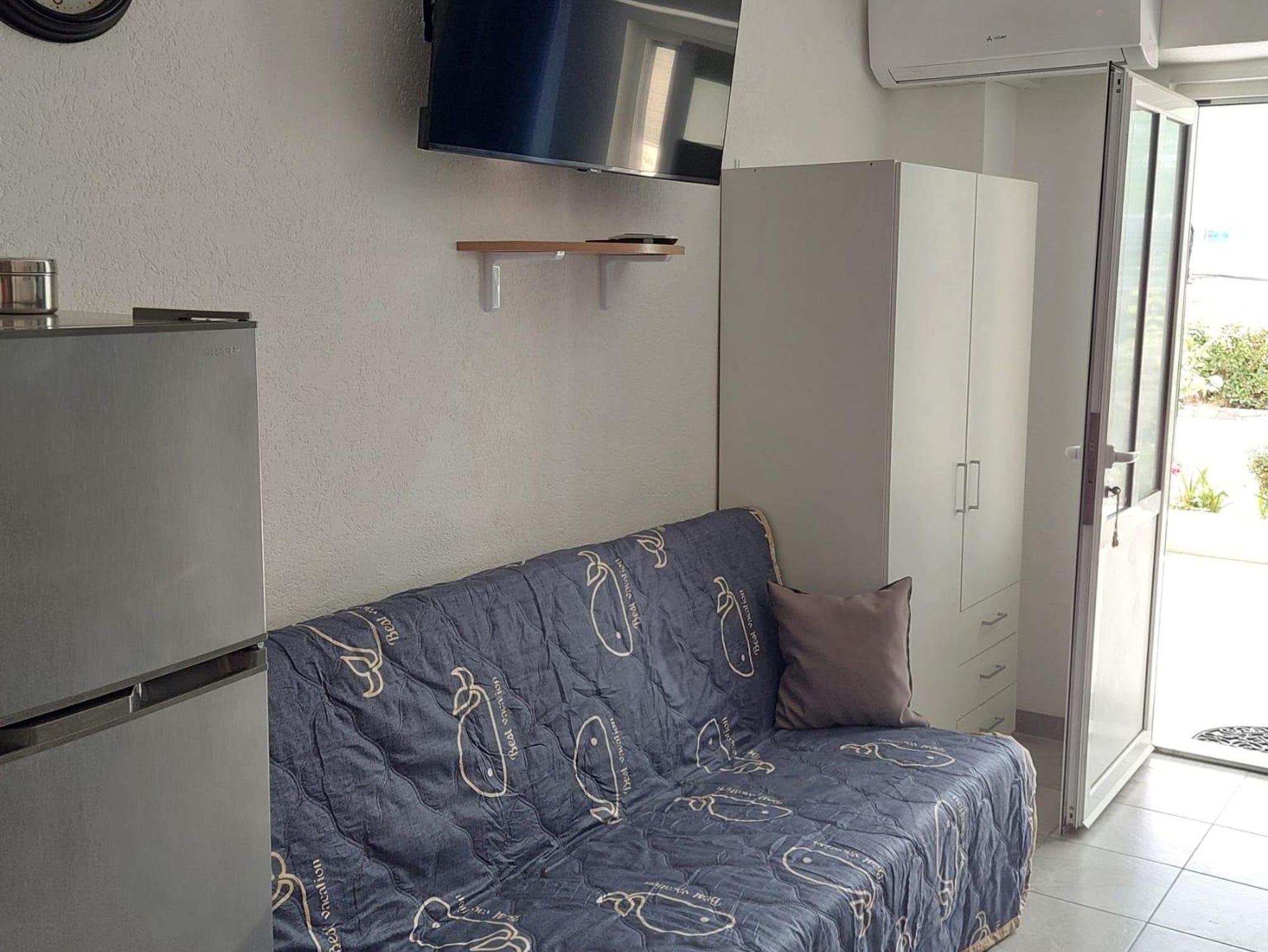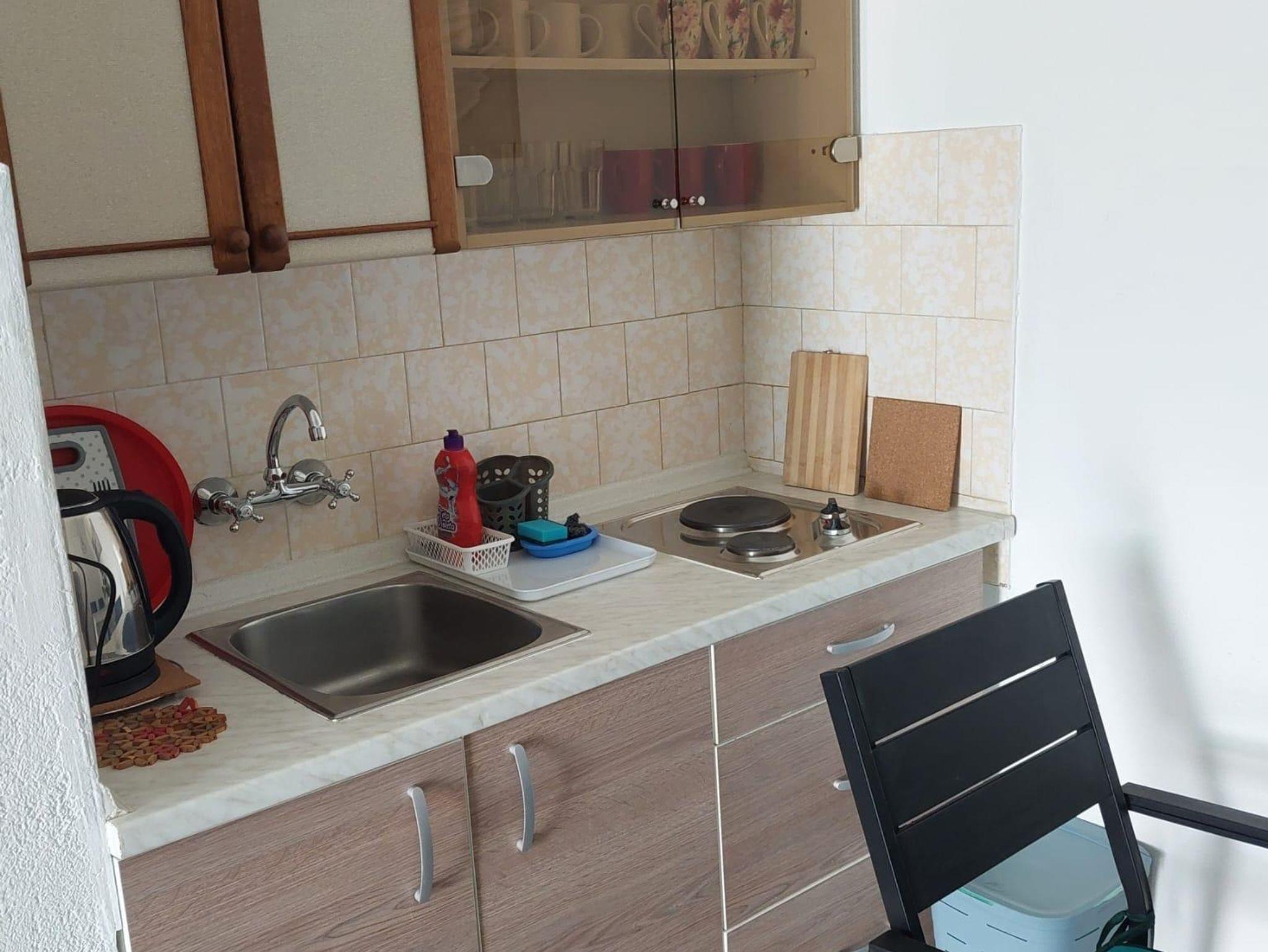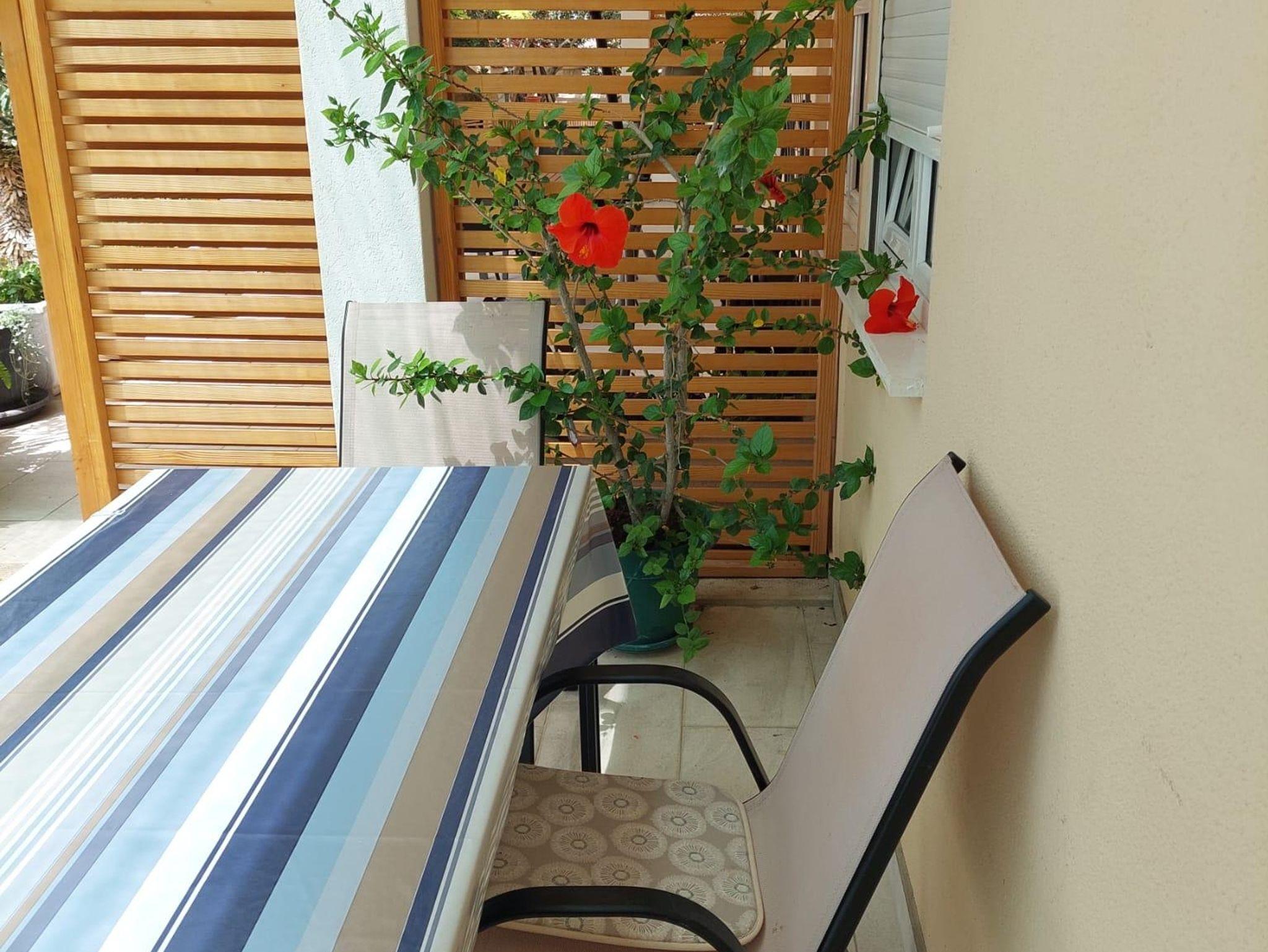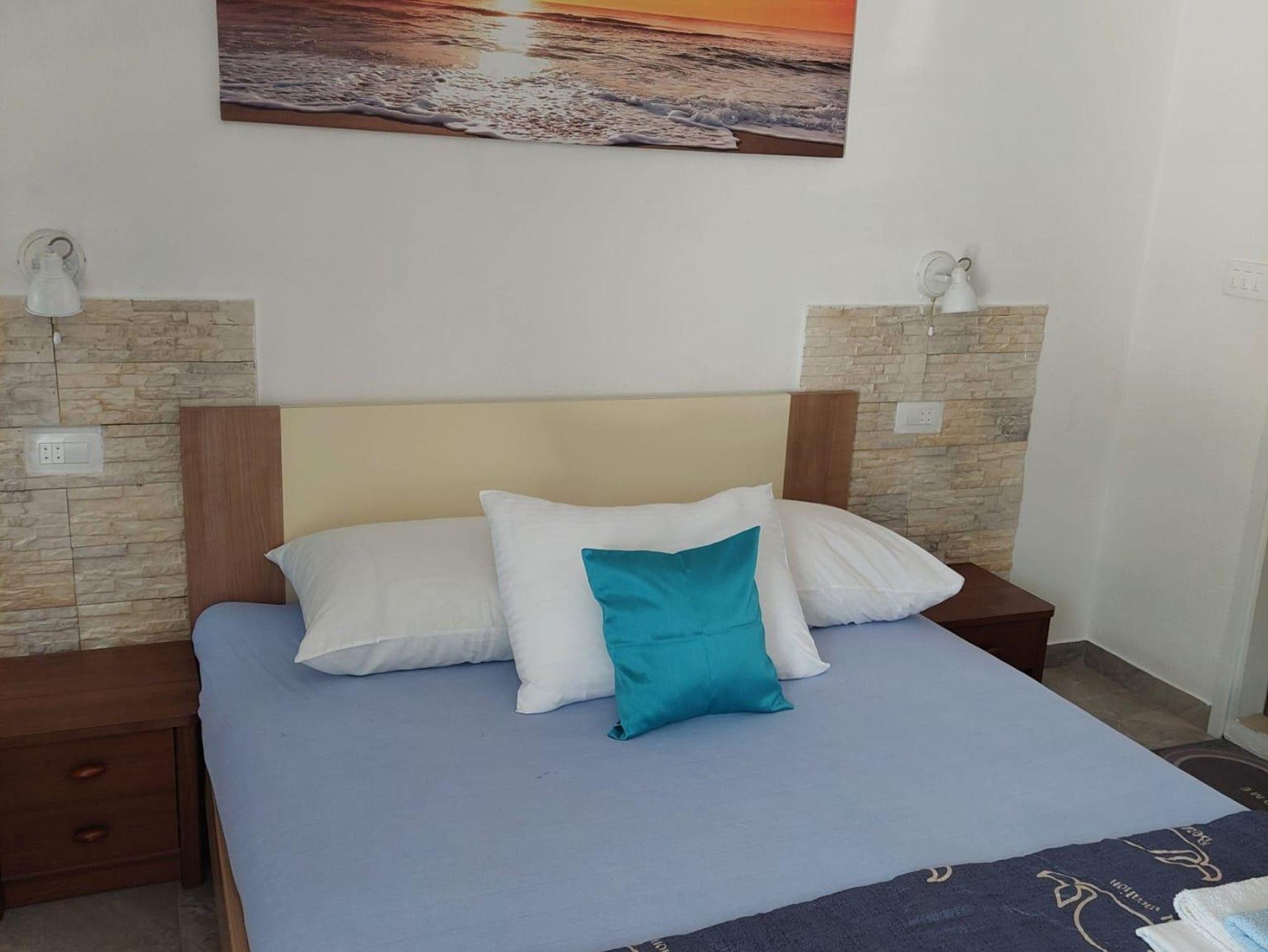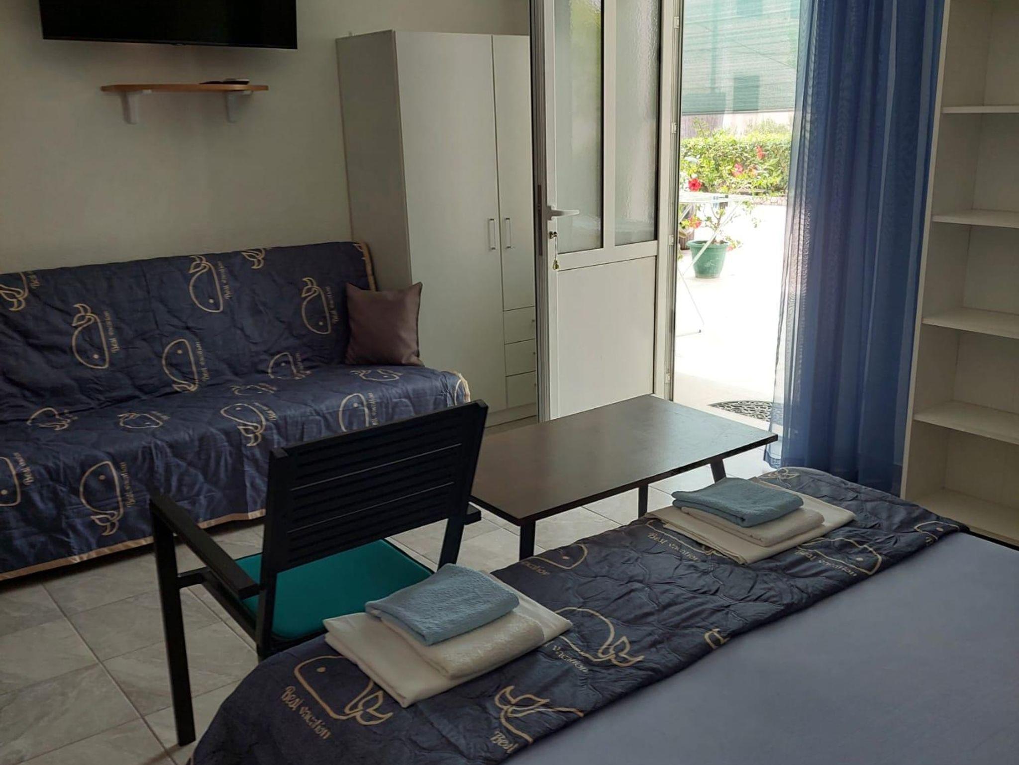 Studio bietet Platz für 3 Gäste. Die Betten sind in Schlafzimmern, die es 1 gibt, innerhalb einer Gesamtfläche von 21m2, angeordnet. Die Gäste haben eine eigene Terrasse zur Verfügung, auf der sie in warmen Sommernächten genießen können. Das Studio-Apartment bietet Meerblick. Es ist erlaubt, Speisen auf dem Gemeinschafts-Grill vorzubereiten. IM PREIS INBEGRIFFEN: Kurtaxe, Endreinigung, Klimatisierung, Parkplatz, Internet, Bügelbrett, Föhn. VERBINDLICHE ZUSÄTZLICHE KOSTEN: Aufzahlung für Kurzaufenthalte (prozentualer Zuschlag pro Nächtigungsanzahl: 30% - 1, 20% - 2, 10% - 3). Die Verfügbarkeit zusätzlicher Dienstleistungen in Ihrem reservierten Termin und die Preise derselben (falls nicht aufgeführt) müssen im Voraus überprüft werden. Zusätzliche Dienstleistungen die in der Zahlungsaufforderung nicht aufgeführt sind werden direkt beim Vermieter bezahlt, angenommen der Gast nutzt auch diese. Ermäßigung auf den Grundpreis: Gratistag 14=13 (bei einem Aufenthalt von 14 Tagen oder mehr erhalten Sie einen Gratistag für den Aufenthalt bis 31.12.26).