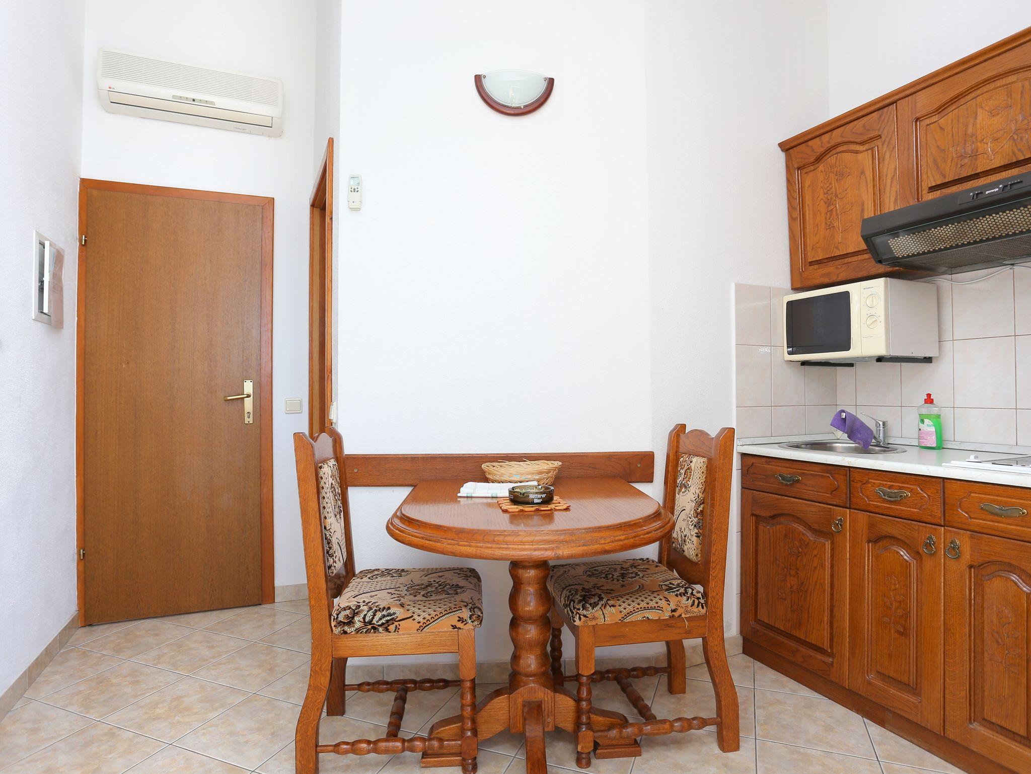 Ferienwohnung bietet Platz für 2 Gäste. Die Betten sind in Schlafzimmern, die es 1 gibt, innerhalb einer Gesamtfläche von 20m2, angeordnet. Die Gäste haben einen eigenen Balkon zur Verfügung, auf der sie in warmen Sommernächten genießen können. Das Apartment bietet Meerblick. Es ist erlaubt, Speisen auf dem Gemeinschafts-Grill vorzubereiten. IM PREIS INBEGRIFFEN: Kurtaxe, Endreinigung, Parkplatz, Internet, Kinderbett, Zusatzbett, Bügeleisen, Bügelbrett, Föhn, tragbarer Grill. VERBINDLICHE ZUSÄTZLICHE KOSTEN: Aufzahlung für Kurzaufenthalte (prozentualer Zuschlag pro Nächtigungsanzahl: 30% - 1, 20% - 2, 10% - 3). UNVERBINDLICHE ZUSÄTZLICHE KOSTEN: Klimatisierung (5,00 € pro Nacht), Wäschewaschen (5,00 € Waschen). Die Verfügbarkeit zusätzlicher Dienstleistungen in Ihrem reservierten Termin und die Preise derselben (falls nicht aufgeführt) müssen im Voraus überprüft werden. Zusätzliche Dienstleistungen die in der Zahlungsaufforderung nicht aufgeführt sind werden direkt beim Vermieter bezahlt, angenommen der Gast nutzt auch diese. Ermäßigung auf den Grundpreis: Gratistag 14=13 (bei einem Aufenthalt von 14 Tagen oder mehr erhalten Sie einen Gratistag für den Aufenthalt bis 31.12.26).