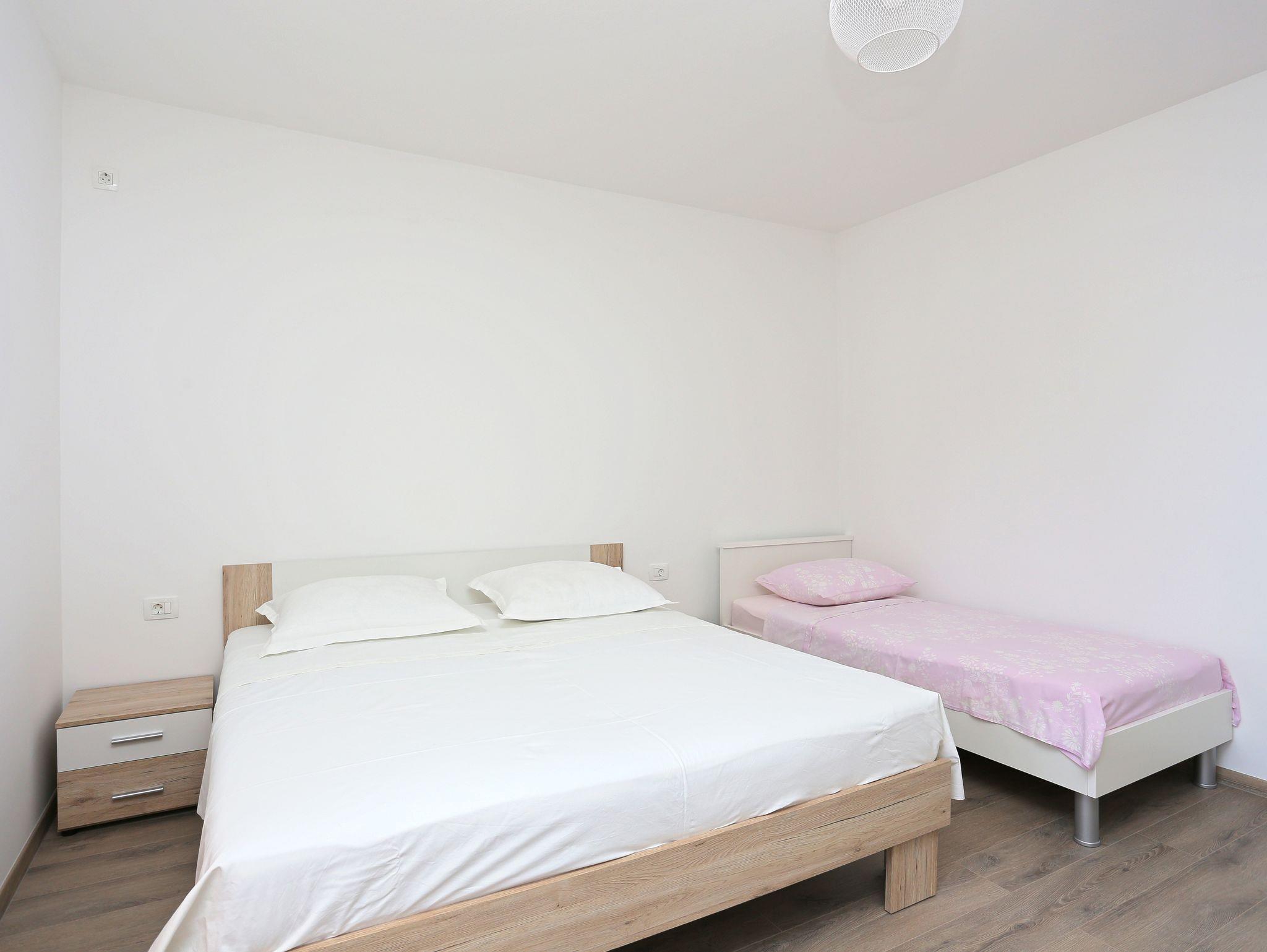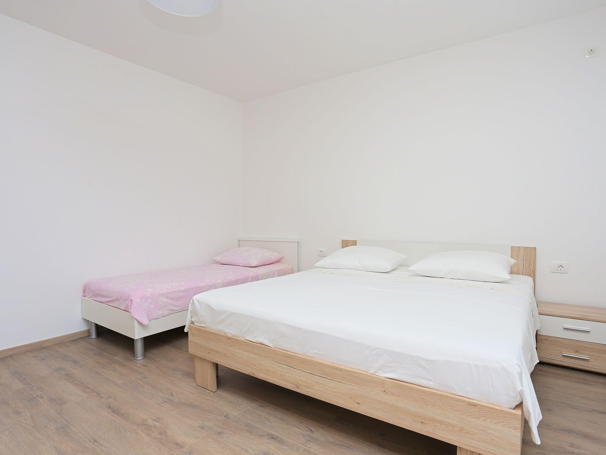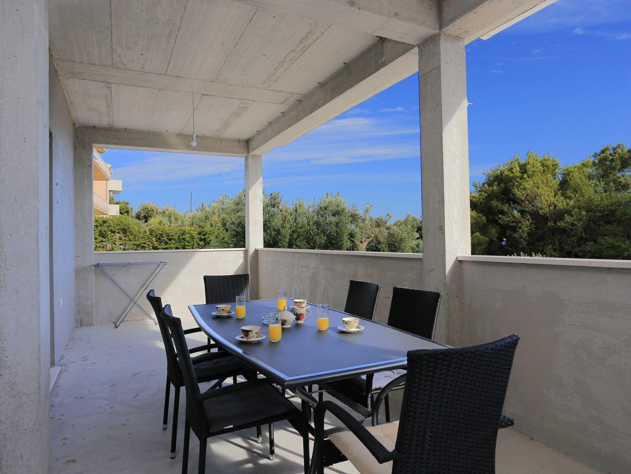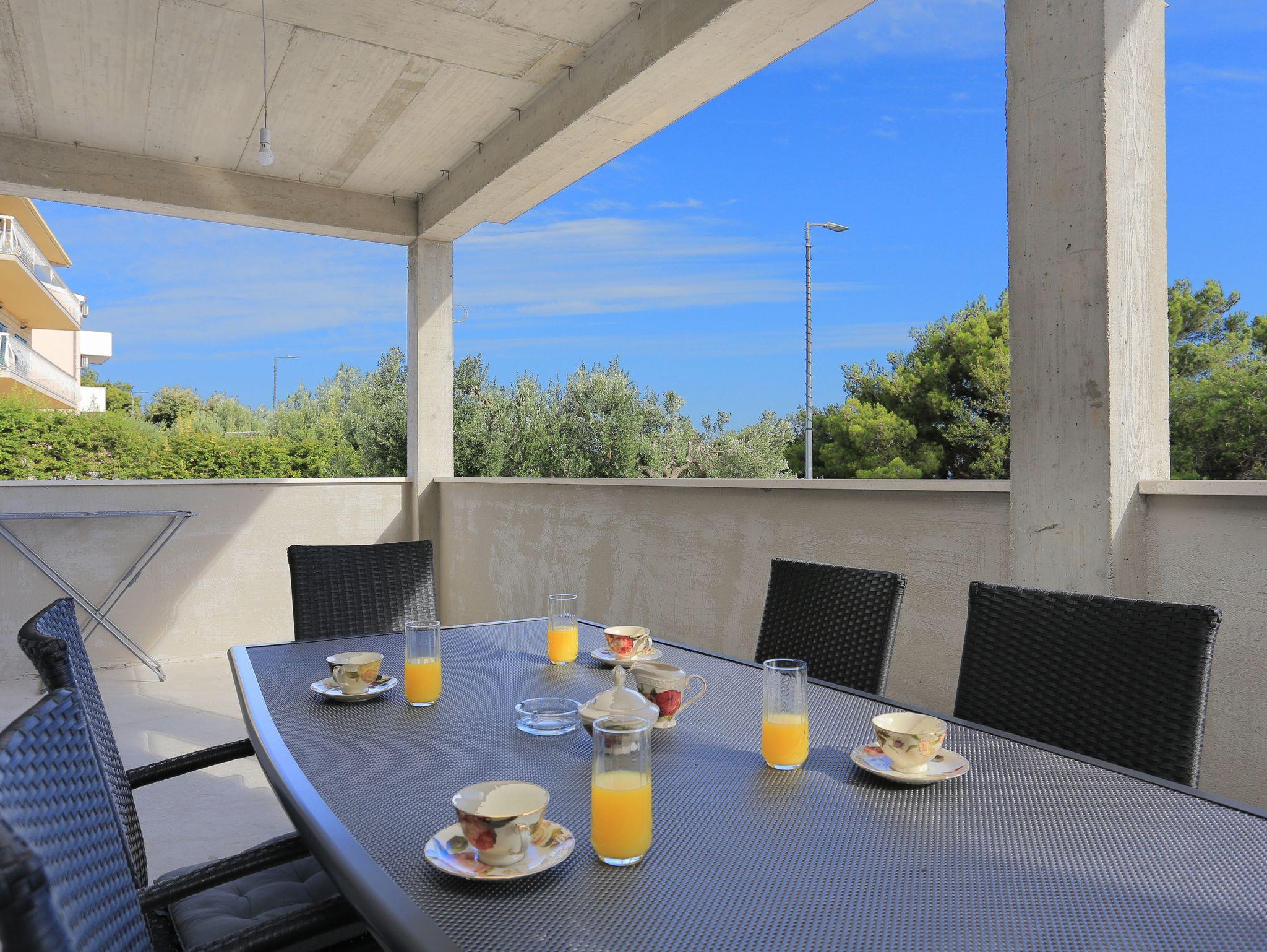 Ferienwohnung bietet Platz für 6 Gäste. Die Betten sind in Schlafzimmern, die es 2 gibt, innerhalb einer Gesamtfläche von 65m2, angeordnet. Die Gäste haben eine eigene Terrasse zur Verfügung, auf der sie in warmen Sommernächten genießen können. Das Apartment bietet Meerblick. Es ist erlaubt, Speisen auf dem Gemeinschafts-Grill vorzubereiten. IM PREIS INBEGRIFFEN: Kurtaxe, Endreinigung, Klimatisierung, Parkplatz, Internet, Bügeleisen, Föhn. VERBINDLICHE ZUSÄTZLICHE KOSTEN: Aufzahlung für Kurzaufenthalte (prozentualer Zuschlag pro Nächtigungsanzahl: 30% - 1, 20% - 2, 10% - 3). UNVERBINDLICHE ZUSÄTZLICHE KOSTEN: Zusatzbett (10,00 € pro Nacht). Die Verfügbarkeit zusätzlicher Dienstleistungen in Ihrem reservierten Termin und die Preise derselben (falls nicht aufgeführt) müssen im Voraus überprüft werden. Zusätzliche Dienstleistungen die in der Zahlungsaufforderung nicht aufgeführt sind werden direkt beim Vermieter bezahlt, angenommen der Gast nutzt auch diese.