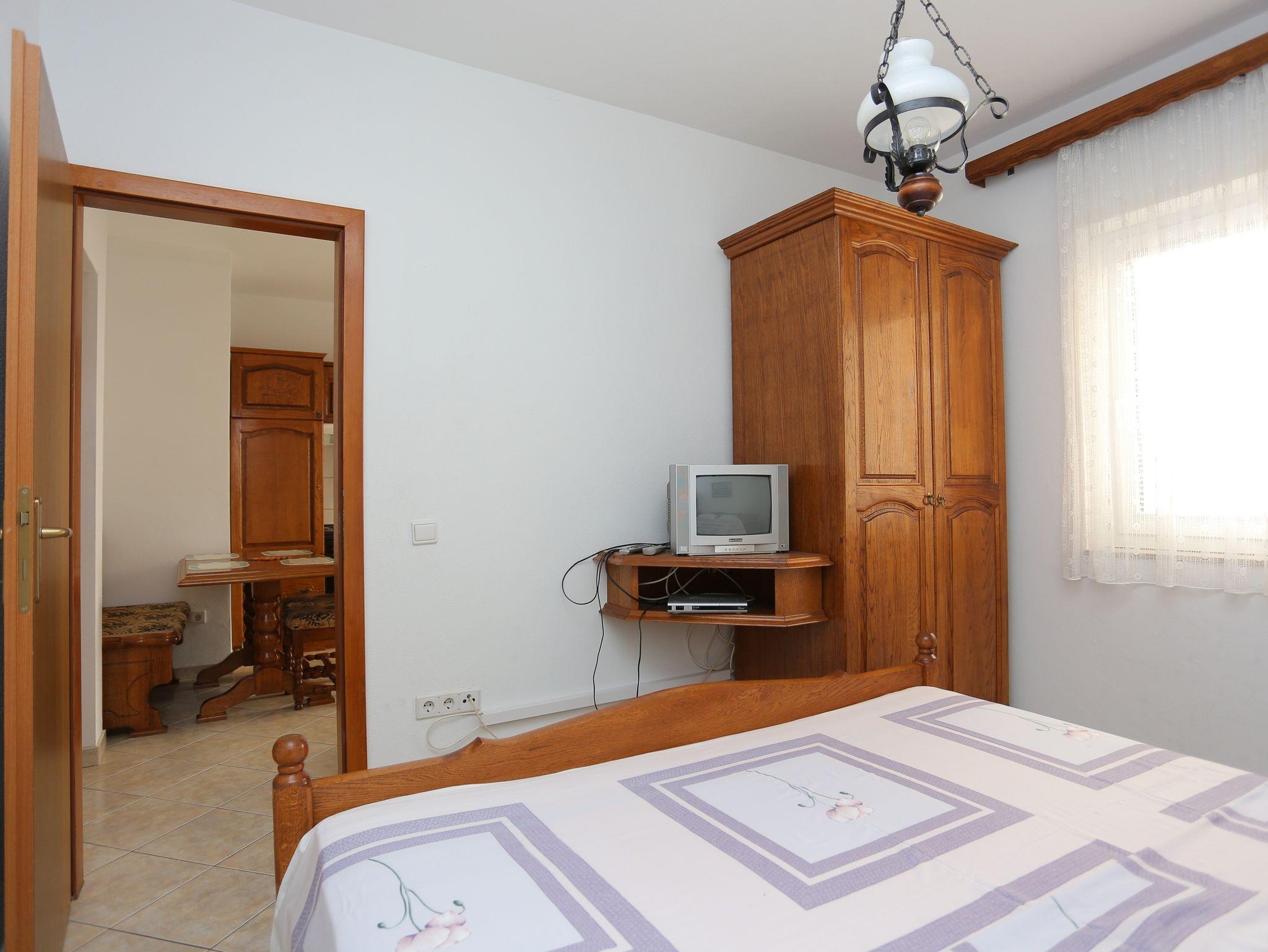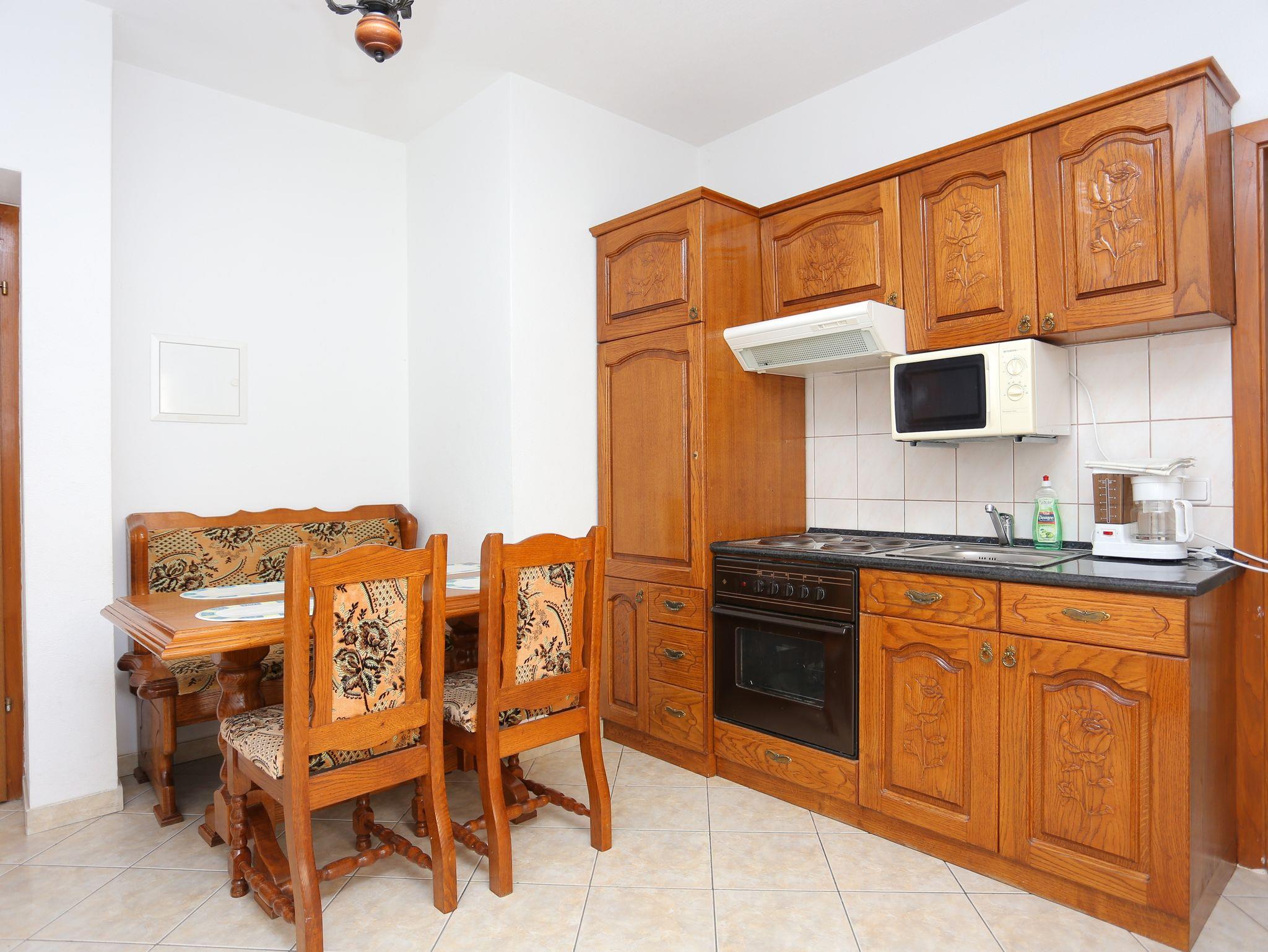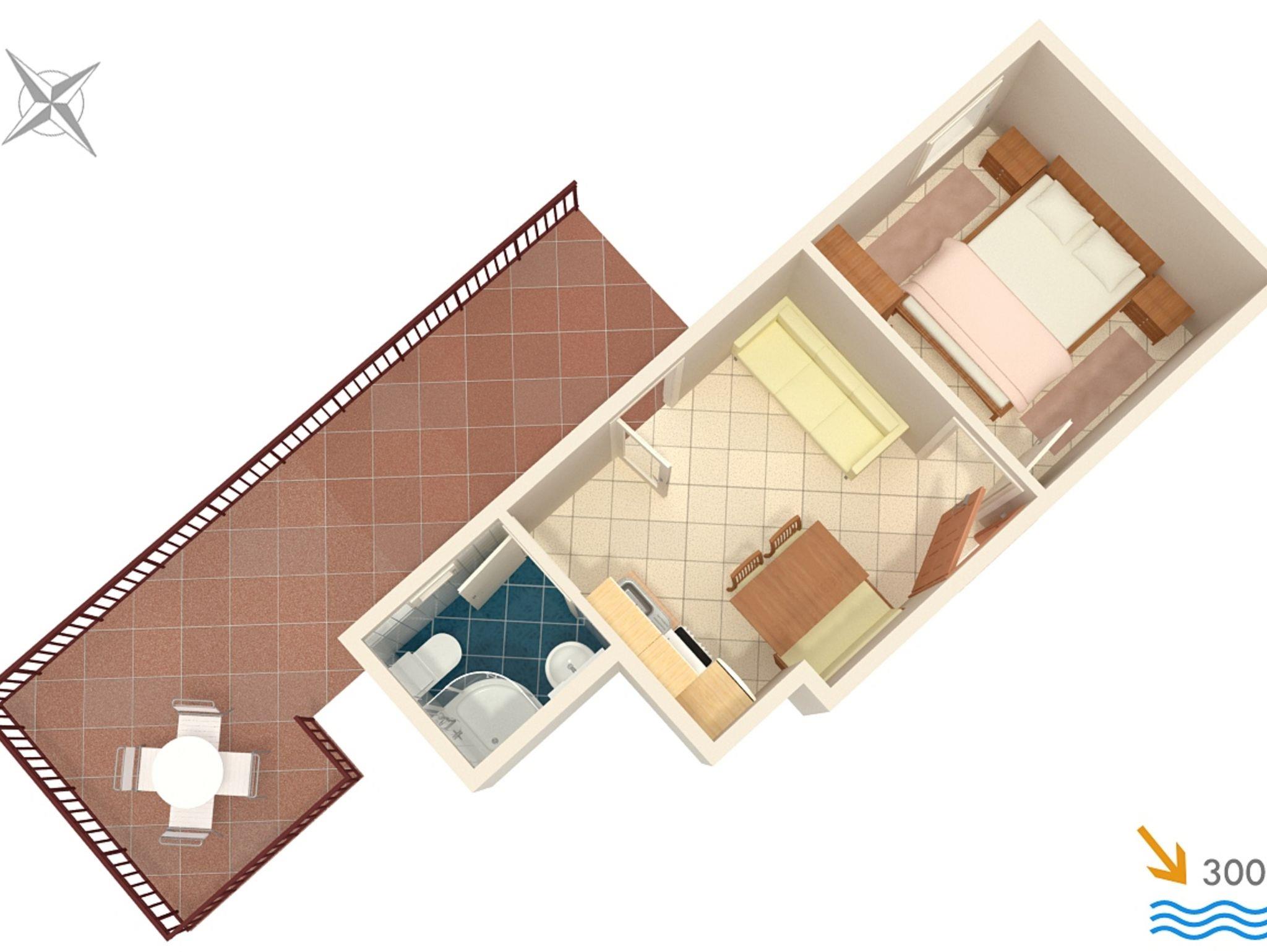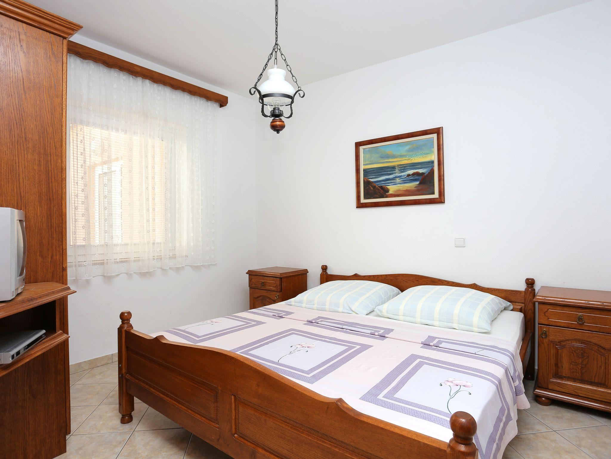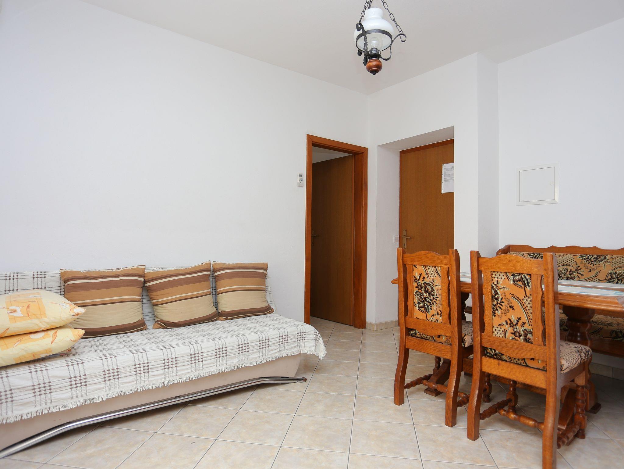 Ferienwohnung bietet Platz für 4 Gäste. Die Betten sind in Schlafzimmern, die es 1 gibt, und in Esszimmer, innerhalb einer Gesamtfläche von 27m2, angeordnet. Die Gäste haben eine eigene Terrasse zur Verfügung, auf der sie in warmen Sommernächten genießen können. Das Apartment bietet Meerblick. Es ist erlaubt, Speisen auf dem Gemeinschafts-Grill vorzubereiten. IM PREIS INBEGRIFFEN: Kurtaxe, Endreinigung, Parkplatz, Internet, Kinderbett, Bügeleisen, Bügelbrett, Föhn, tragbarer Grill. VERBINDLICHE ZUSÄTZLICHE KOSTEN: Aufzahlung für Kurzaufenthalte (prozentualer Zuschlag pro Nächtigungsanzahl: 30% - 1, 20% - 2, 10% - 3). UNVERBINDLICHE ZUSÄTZLICHE KOSTEN: Klimatisierung (5,00 € pro Nacht), Wäschewaschen (5,00 € Waschen). Die Verfügbarkeit zusätzlicher Dienstleistungen in Ihrem reservierten Termin und die Preise derselben (falls nicht aufgeführt) müssen im Voraus überprüft werden. Zusätzliche Dienstleistungen die in der Zahlungsaufforderung nicht aufgeführt sind werden direkt beim Vermieter bezahlt, angenommen der Gast nutzt auch diese. Ermäßigung auf den Grundpreis: Gratistag 14=13 (bei einem Aufenthalt von 14 Tagen oder mehr erhalten Sie einen Gratistag für den Aufenthalt bis 31.12.26).
