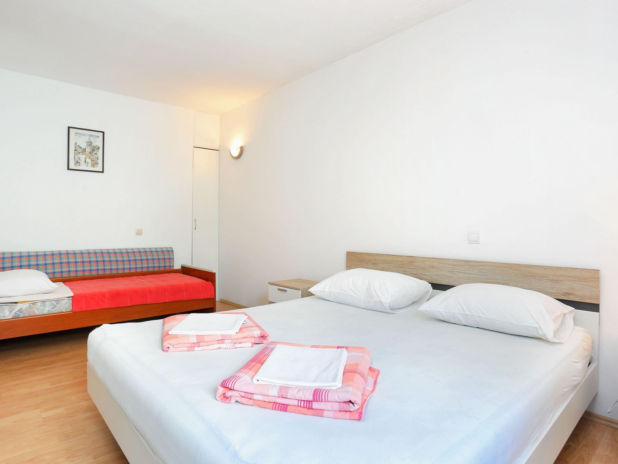 Ferienwohnung bietet Platz für 5 Gäste. Die Betten sind in Schlafzimmern, die es 1 gibt, und in Wohnzimmer, innerhalb einer Gesamtfläche von 49m2, angeordnet. Die Gäste haben eine eigene Terrasse zur Verfügung, auf der sie in warmen Sommernächten genießen können. Das Apartment bietet Meerblick. Es ist erlaubt, Speisen auf dem Gemeinschafts-Grill vorzubereiten. IM PREIS INBEGRIFFEN: Kurtaxe, Endreinigung, Klimatisierung, Parkplatz, Internet, Wäschewaschen, Bügeleisen, Bügelbrett, Föhn, Sonnenschirm, Liegestühle. VERBINDLICHE ZUSÄTZLICHE KOSTEN: Aufzahlung für Kurzaufenthalte (prozentualer Zuschlag pro Nächtigungsanzahl: 30% - 1, 20% - 2, 10% - 3). Die Verfügbarkeit zusätzlicher Dienstleistungen in Ihrem reservierten Termin und die Preise derselben (falls nicht aufgeführt) müssen im Voraus überprüft werden. Zusätzliche Dienstleistungen die in der Zahlungsaufforderung nicht aufgeführt sind werden direkt beim Vermieter bezahlt, angenommen der Gast nutzt auch diese.
