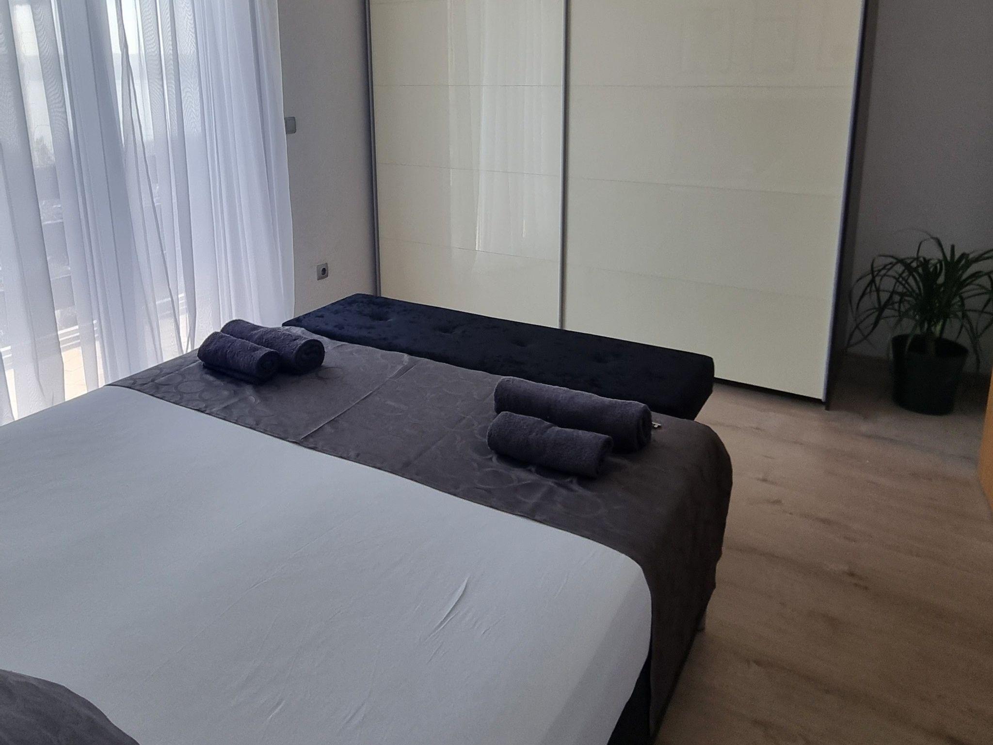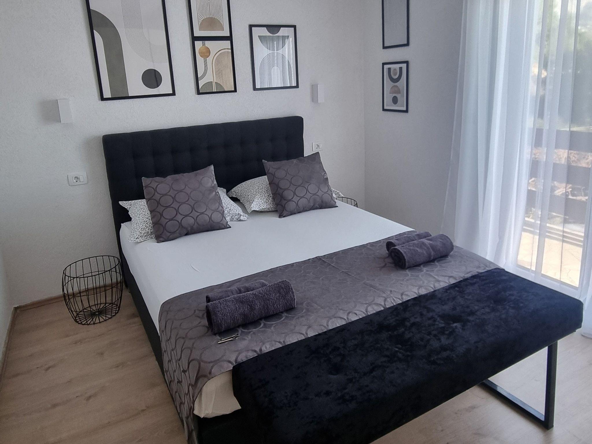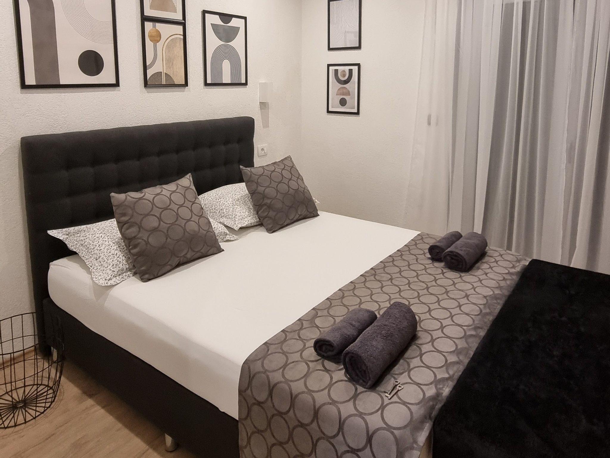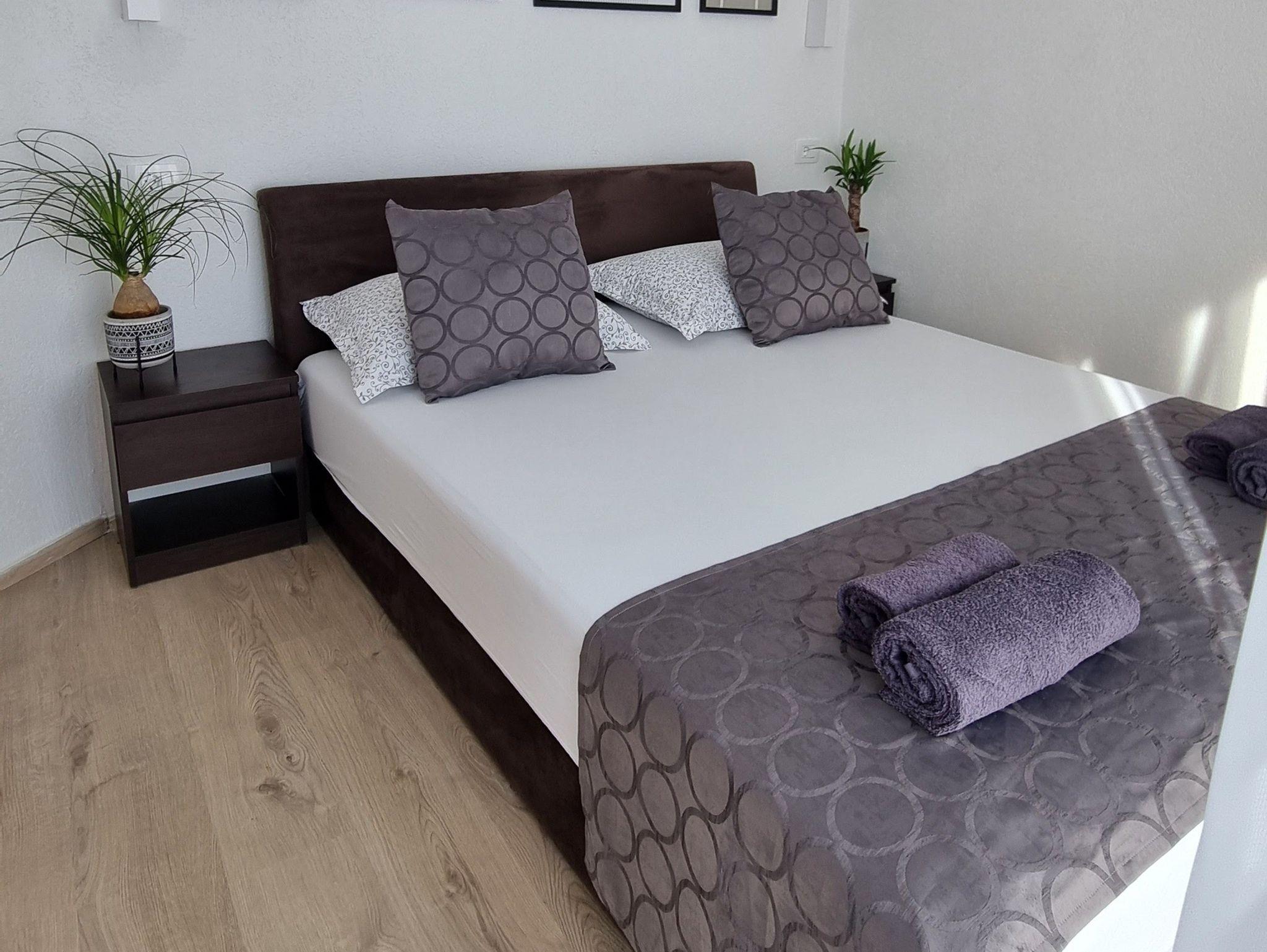 Ferienwohnung bietet Platz für 6 Gäste. Die Betten sind in Schlafzimmern, die es 3 gibt, innerhalb einer Gesamtfläche von 80m2, angeordnet. Die Gäste haben einen eigenen Balkon zur Verfügung, auf der sie in warmen Sommernächten genießen können. Das Apartment bietet Meerblick. Es ist erlaubt, Speisen auf dem Gemeinschafts-Grill vorzubereiten. In der Unterkunftseinheit besteht die Möglichkeit des Mitbringens von Haustieren, und die Dienstleistung ist im Preis der Unterkunft enthalten. IM PREIS INBEGRIFFEN: Kurtaxe, Endreinigung, Klimatisierung, Parkplatz, Internet, Haustiere, Kinderbett, Bügeleisen, Bügelbrett, Föhn. Die Verfügbarkeit zusätzlicher Dienstleistungen in Ihrem reservierten Termin und die Preise derselben (falls nicht aufgeführt) müssen im Voraus überprüft werden. Zusätzliche Dienstleistungen die in der Zahlungsaufforderung nicht aufgeführt sind werden direkt beim Vermieter bezahlt, angenommen der Gast nutzt auch diese. Ermäßigung auf den Grundpreis: Gratistag 14=13 (bei einem Aufenthalt von 14 Tagen oder mehr erhalten Sie einen Gratistag für den Aufenthalt bis 31.12.26).