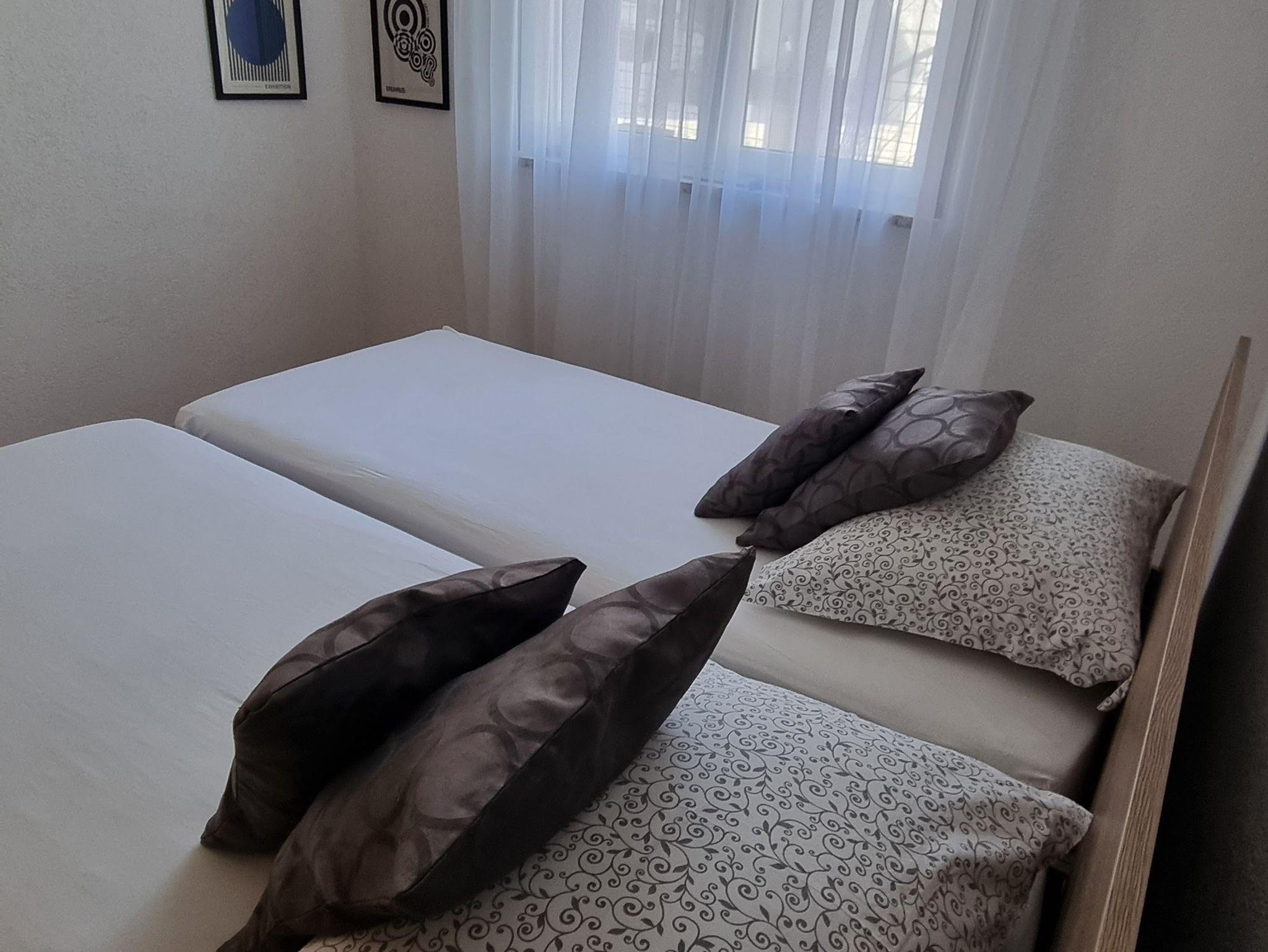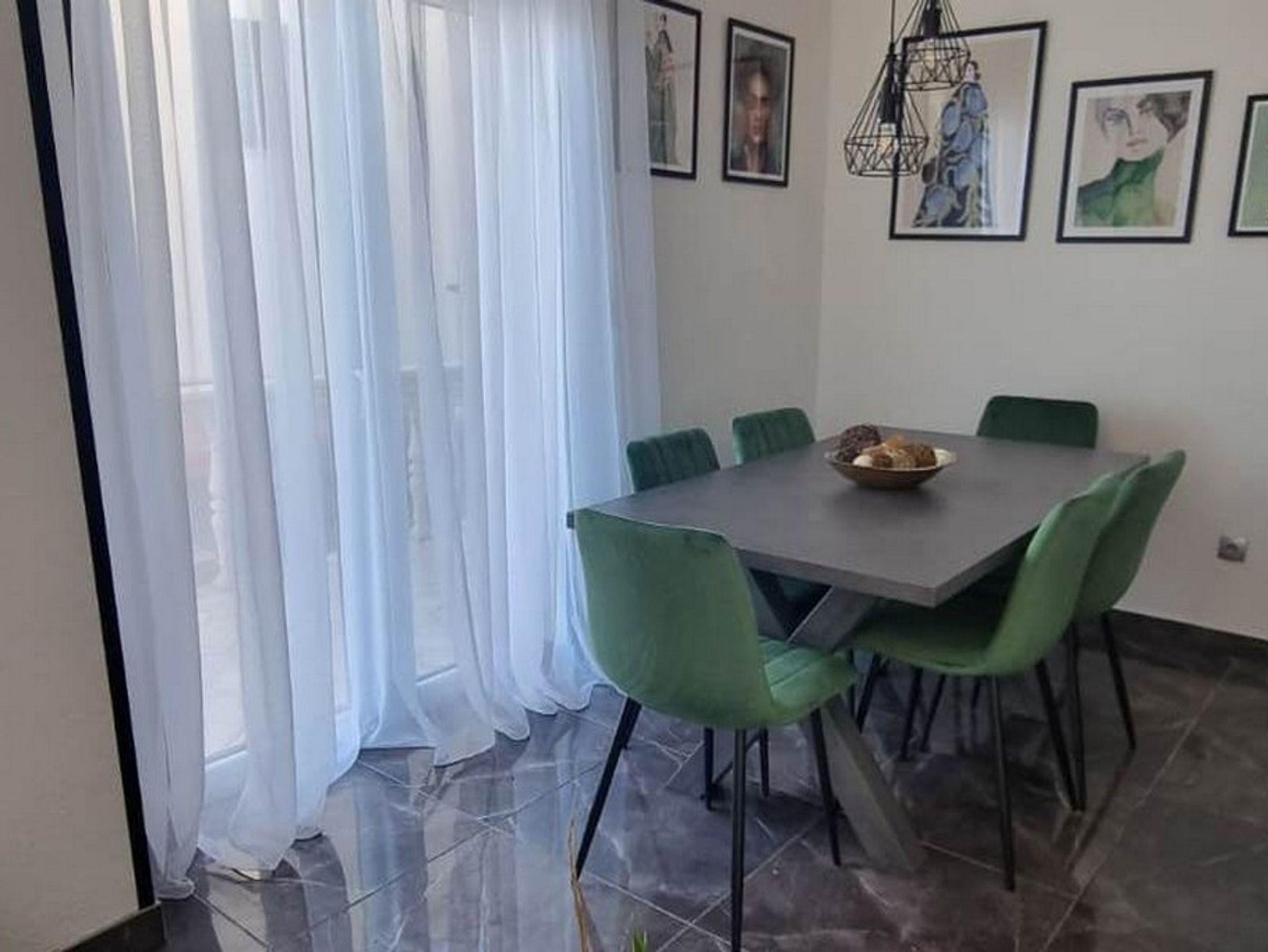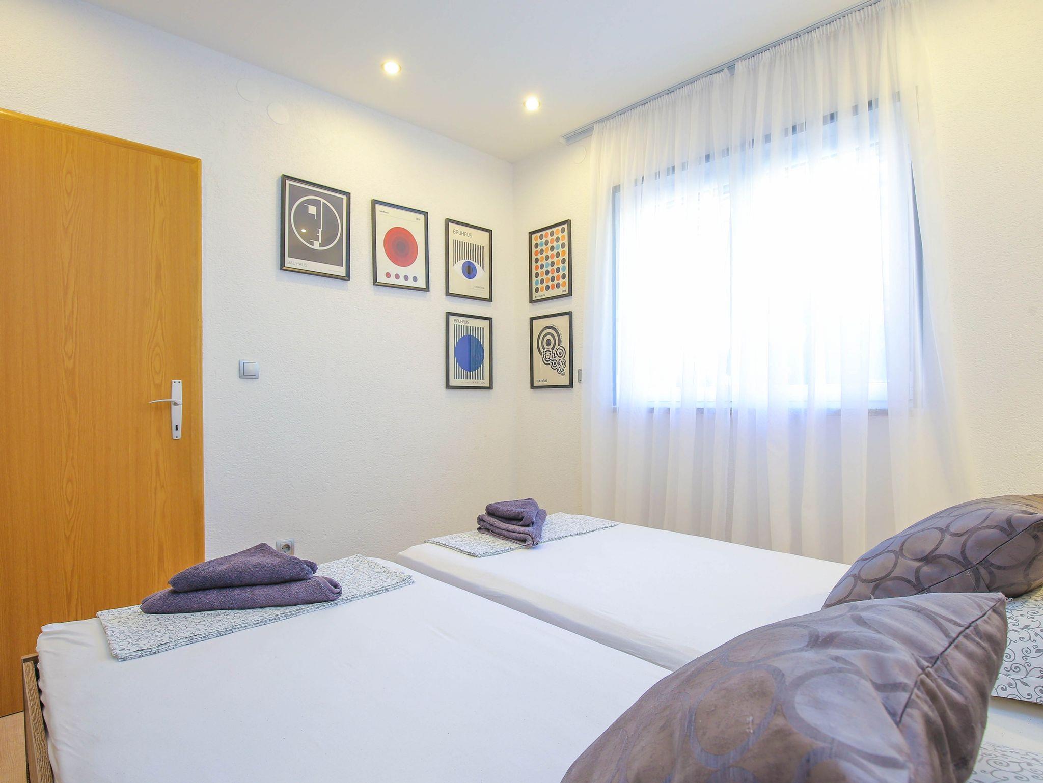 Ferienwohnung bietet Platz für 6 Gäste. Die Betten sind in Schlafzimmern, die es 3 gibt, innerhalb einer Gesamtfläche von 80m2, angeordnet. Die Gäste haben einen eigenen Balkon zur Verfügung, auf der sie in warmen Sommernächten genießen können. Das Apartment bietet Meerblick. Es ist erlaubt, Speisen auf dem Gemeinschafts-Grill vorzubereiten. In der Unterkunftseinheit besteht die Möglichkeit des Mitbringens von Haustieren, und die Dienstleistung ist im Preis der Unterkunft enthalten. IM PREIS INBEGRIFFEN: Kurtaxe, Endreinigung, Klimatisierung, Parkplatz, Internet, Haustiere, Kinderbett, Bügeleisen, Bügelbrett, Föhn. Die Verfügbarkeit zusätzlicher Dienstleistungen in Ihrem reservierten Termin und die Preise derselben (falls nicht aufgeführt) müssen im Voraus überprüft werden. Zusätzliche Dienstleistungen die in der Zahlungsaufforderung nicht aufgeführt sind werden direkt beim Vermieter bezahlt, angenommen der Gast nutzt auch diese. Ermäßigung auf den Grundpreis: Gratistag 14=13 (bei einem Aufenthalt von 14 Tagen oder mehr erhalten Sie einen Gratistag für den Aufenthalt bis 31.12.26).