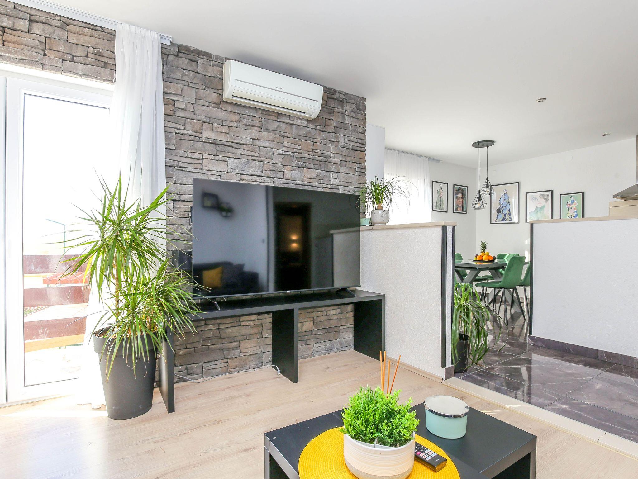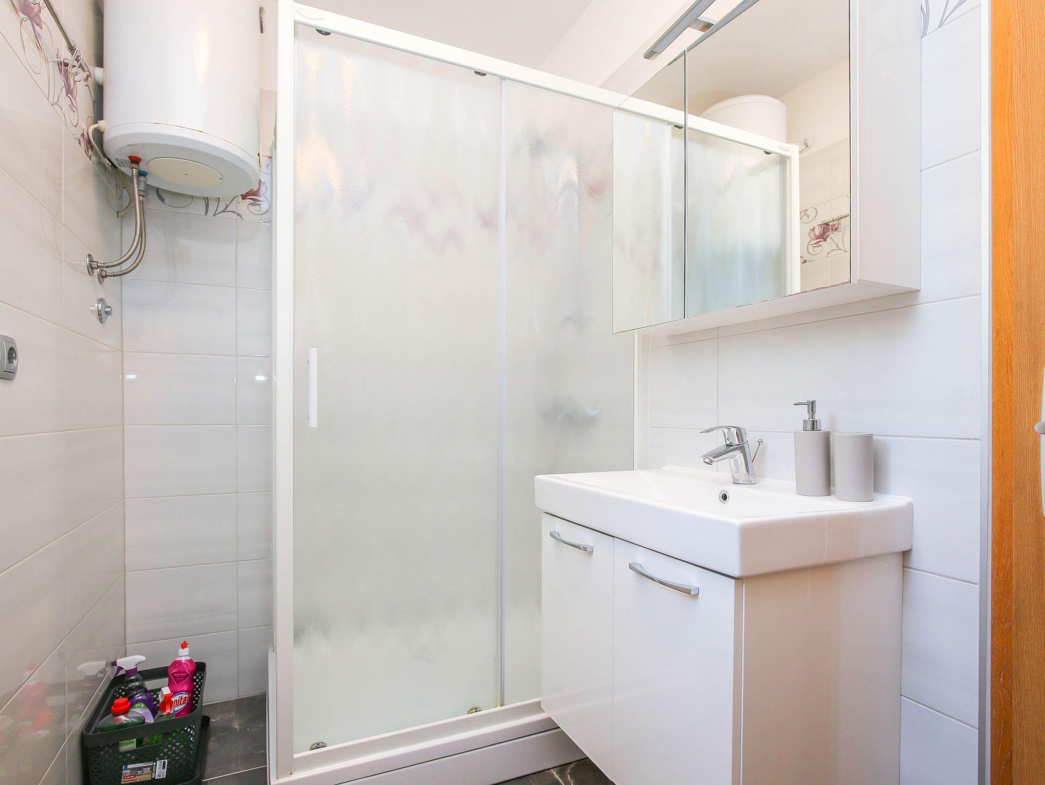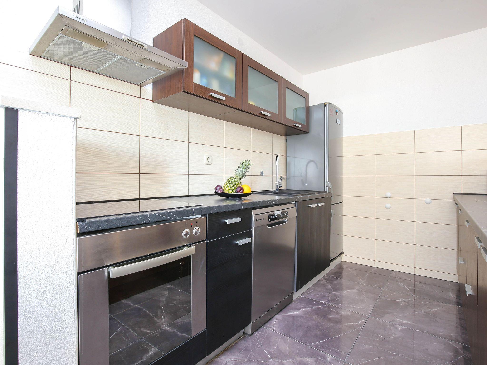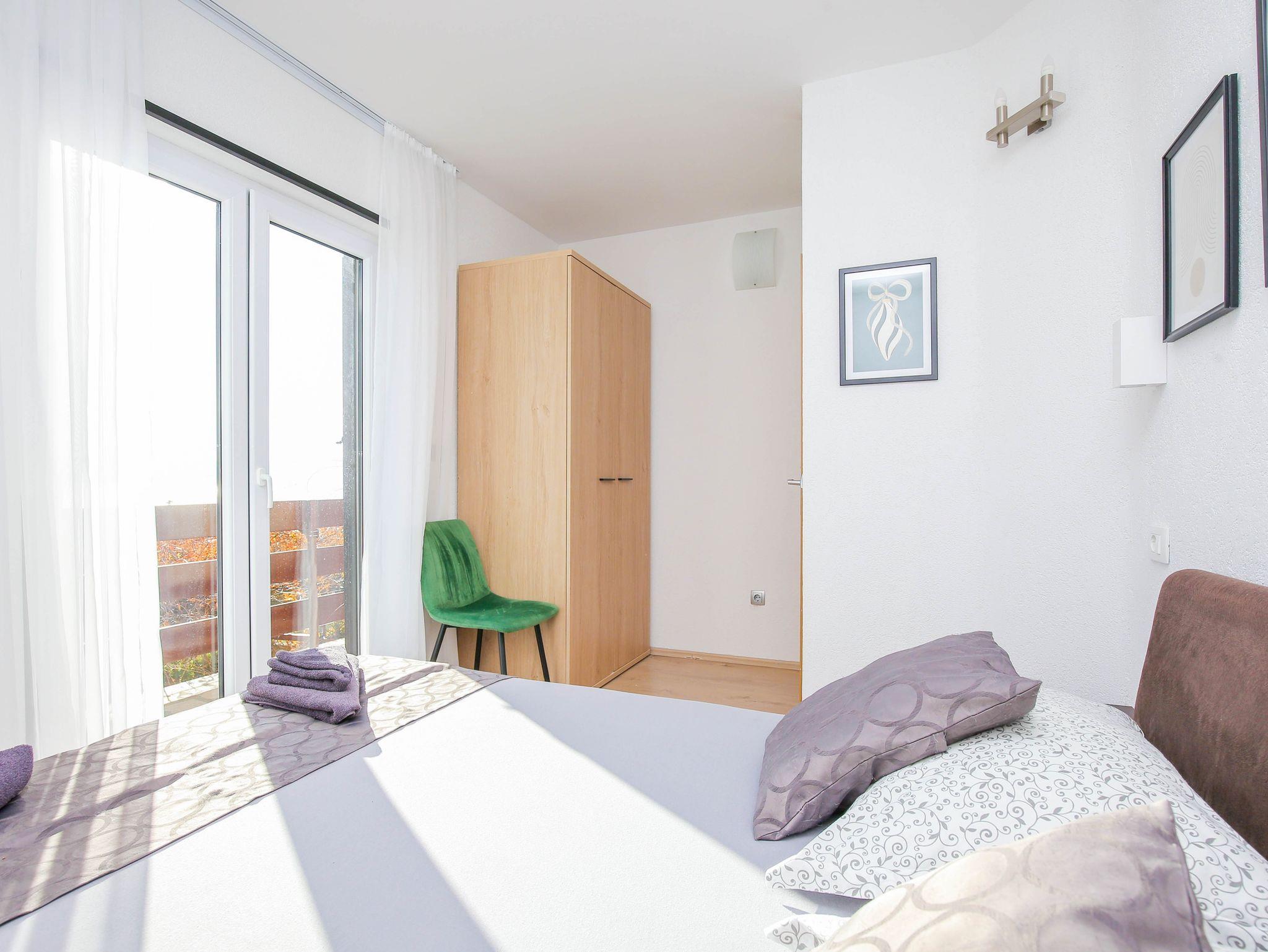 Ferienwohnung bietet Platz für 6 Gäste. Die Betten sind in Schlafzimmern, die es 3 gibt, innerhalb einer Gesamtfläche von 80m2, angeordnet. Die Gäste haben einen eigenen Balkon zur Verfügung, auf der sie in warmen Sommernächten genießen können. Das Apartment bietet Meerblick. Es ist erlaubt, Speisen auf dem Gemeinschafts-Grill vorzubereiten. In der Unterkunftseinheit besteht die Möglichkeit des Mitbringens von Haustieren, und die Dienstleistung ist im Preis der Unterkunft enthalten. IM PREIS INBEGRIFFEN: Kurtaxe, Endreinigung, Klimatisierung, Parkplatz, Internet, Haustiere, Kinderbett, Bügeleisen, Bügelbrett, Föhn. Die Verfügbarkeit zusätzlicher Dienstleistungen in Ihrem reservierten Termin und die Preise derselben (falls nicht aufgeführt) müssen im Voraus überprüft werden. Zusätzliche Dienstleistungen die in der Zahlungsaufforderung nicht aufgeführt sind werden direkt beim Vermieter bezahlt, angenommen der Gast nutzt auch diese. Ermäßigung auf den Grundpreis: Gratistag 14=13 (bei einem Aufenthalt von 14 Tagen oder mehr erhalten Sie einen Gratistag für den Aufenthalt bis 31.12.26).