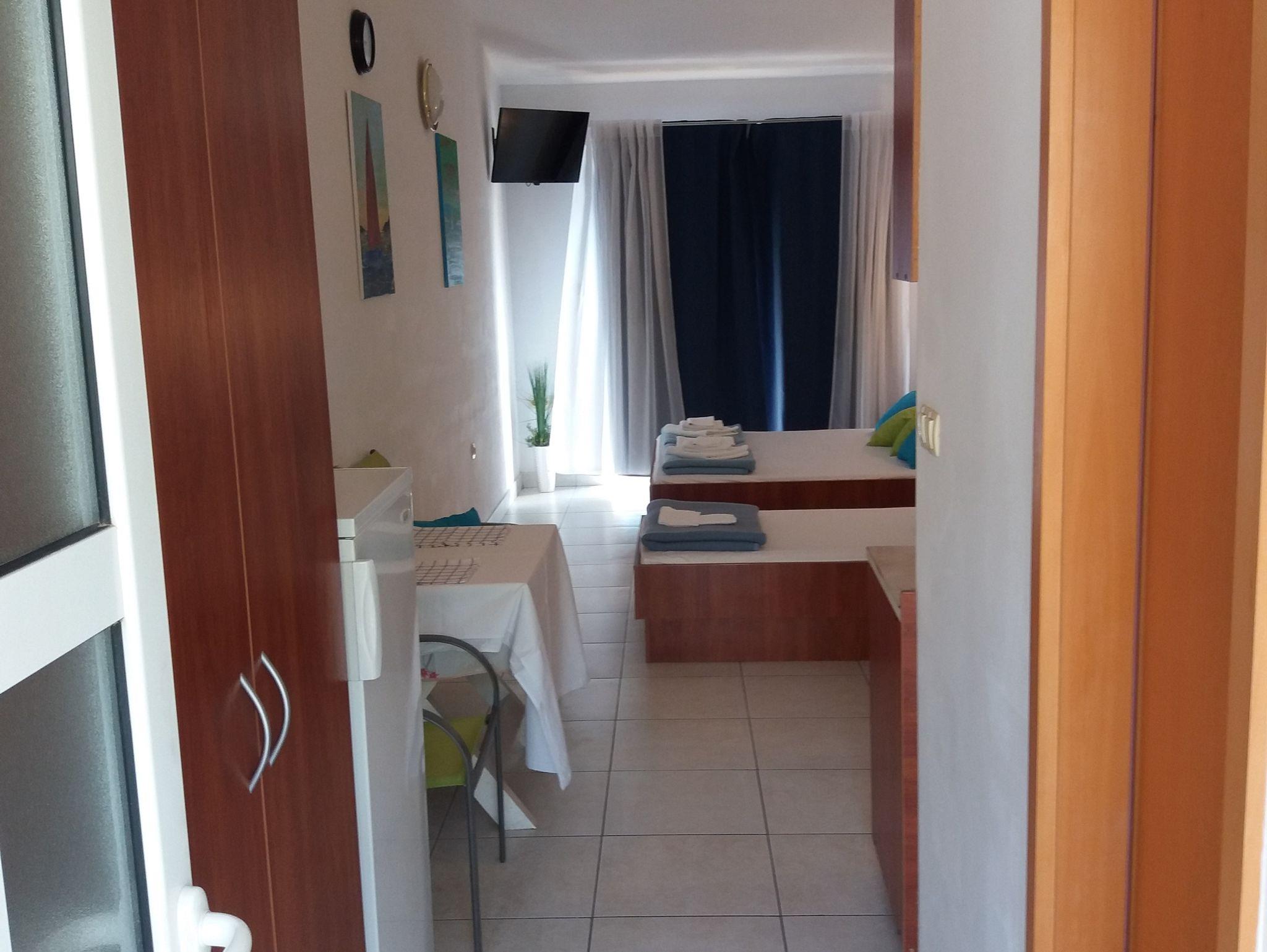 Studio bietet Platz für 3 Gäste. Die Betten sind in Schlafzimmern, die es 1 gibt, innerhalb einer Gesamtfläche von 23m2, angeordnet. Die Gäste haben einen eigenen Balkon zur Verfügung, auf der sie in warmen Sommernächten genießen können. Das Studio-Apartment bietet Meerblick. Es ist erlaubt, Speisen auf dem Gemeinschafts-Grill vorzubereiten. IM PREIS INBEGRIFFEN: Kurtaxe, Endreinigung, Klimatisierung, Parkplatz, Internet, Bügelbrett, Föhn. VERBINDLICHE ZUSÄTZLICHE KOSTEN: Aufzahlung für Kurzaufenthalte (prozentualer Zuschlag pro Nächtigungsanzahl: 30% - 1, 20% - 2, 10% - 3). UNVERBINDLICHE ZUSÄTZLICHE KOSTEN: Zusatzbett (10,00 € pro Nacht). Die Verfügbarkeit zusätzlicher Dienstleistungen in Ihrem reservierten Termin und die Preise derselben (falls nicht aufgeführt) müssen im Voraus überprüft werden. Zusätzliche Dienstleistungen die in der Zahlungsaufforderung nicht aufgeführt sind werden direkt beim Vermieter bezahlt, angenommen der Gast nutzt auch diese. Ermäßigung auf den Grundpreis: Gratistag 14=13 (bei einem Aufenthalt von 14 Tagen oder mehr erhalten Sie einen Gratistag für den Aufenthalt bis 31.12.26).