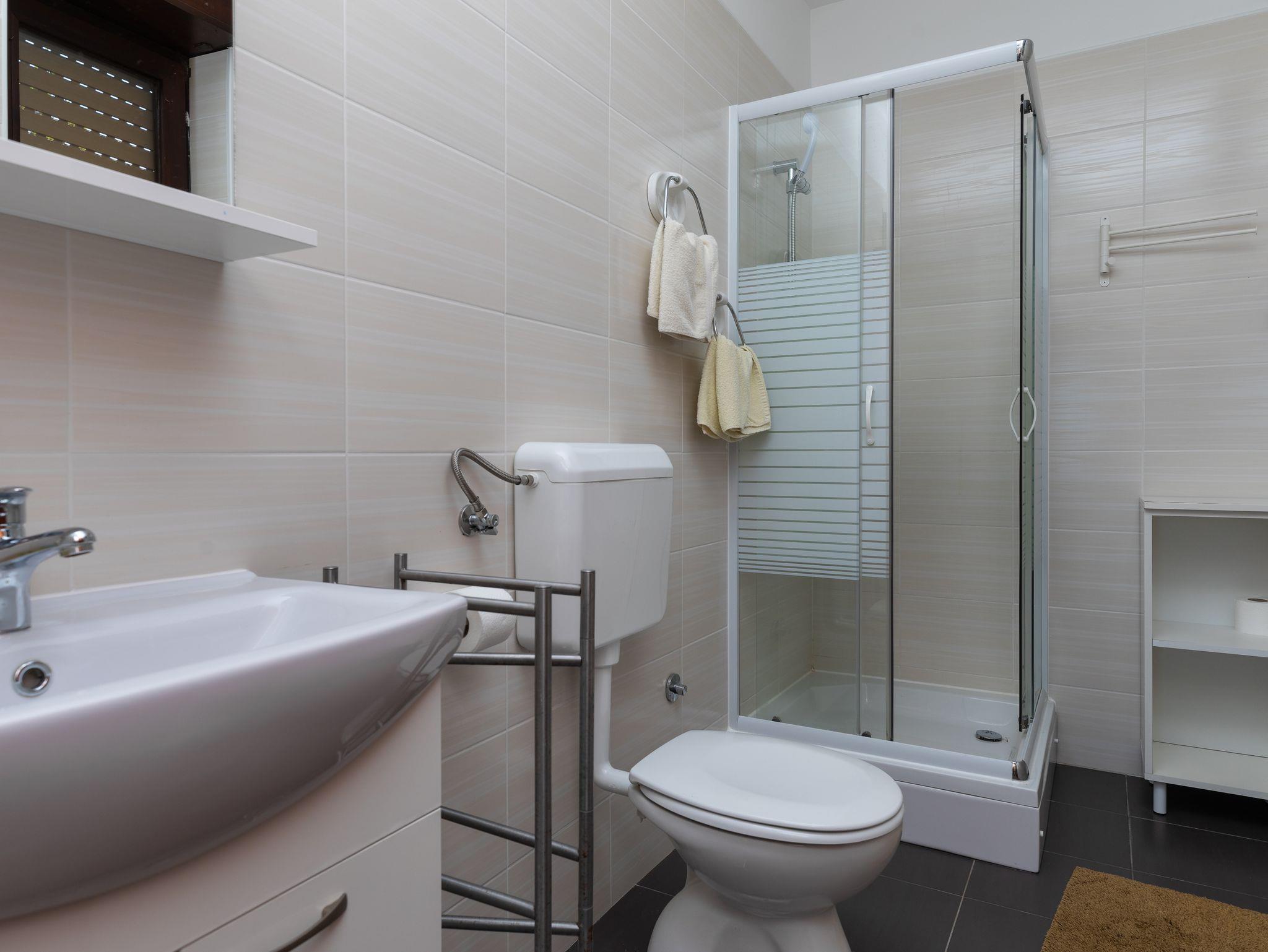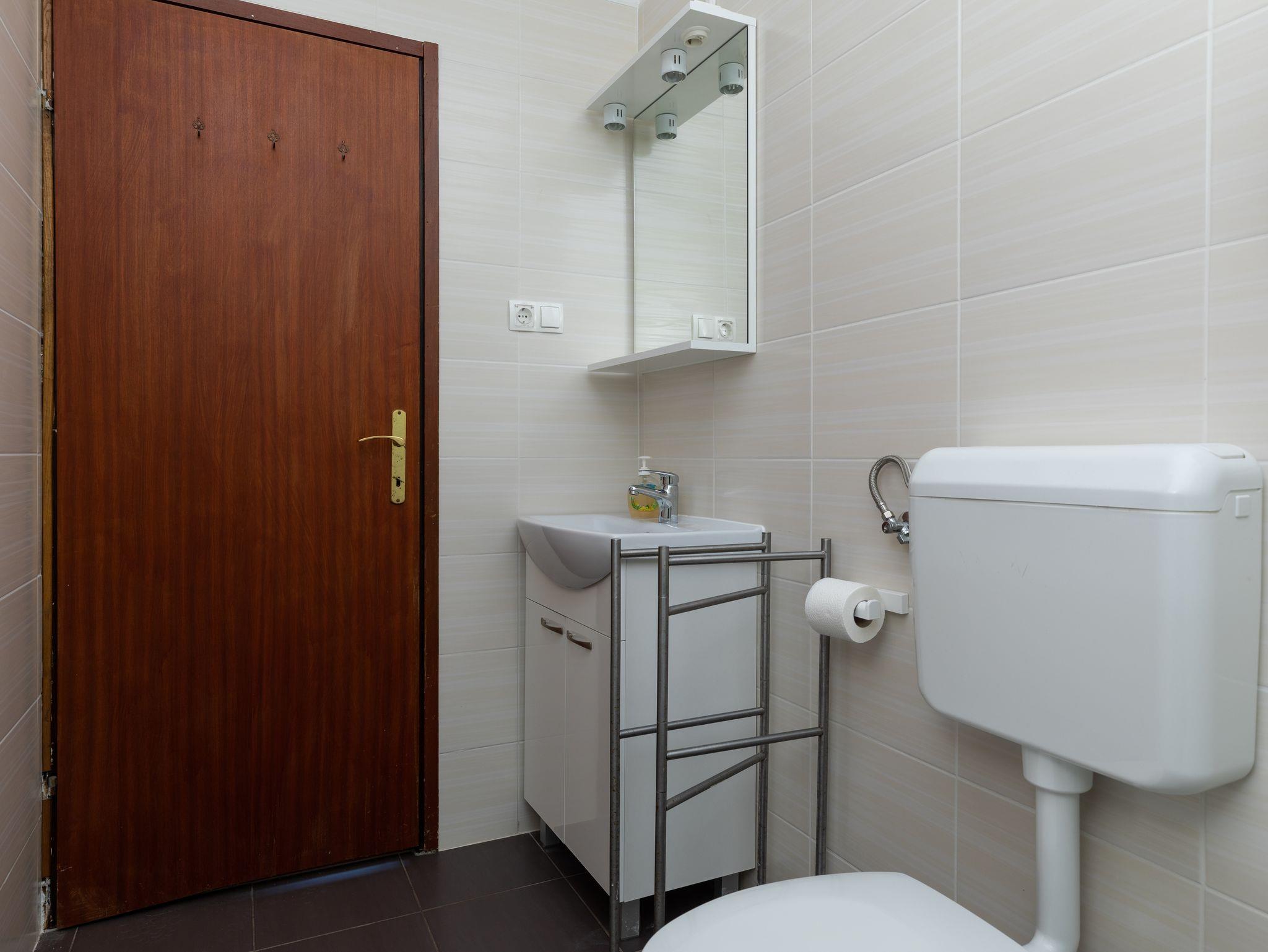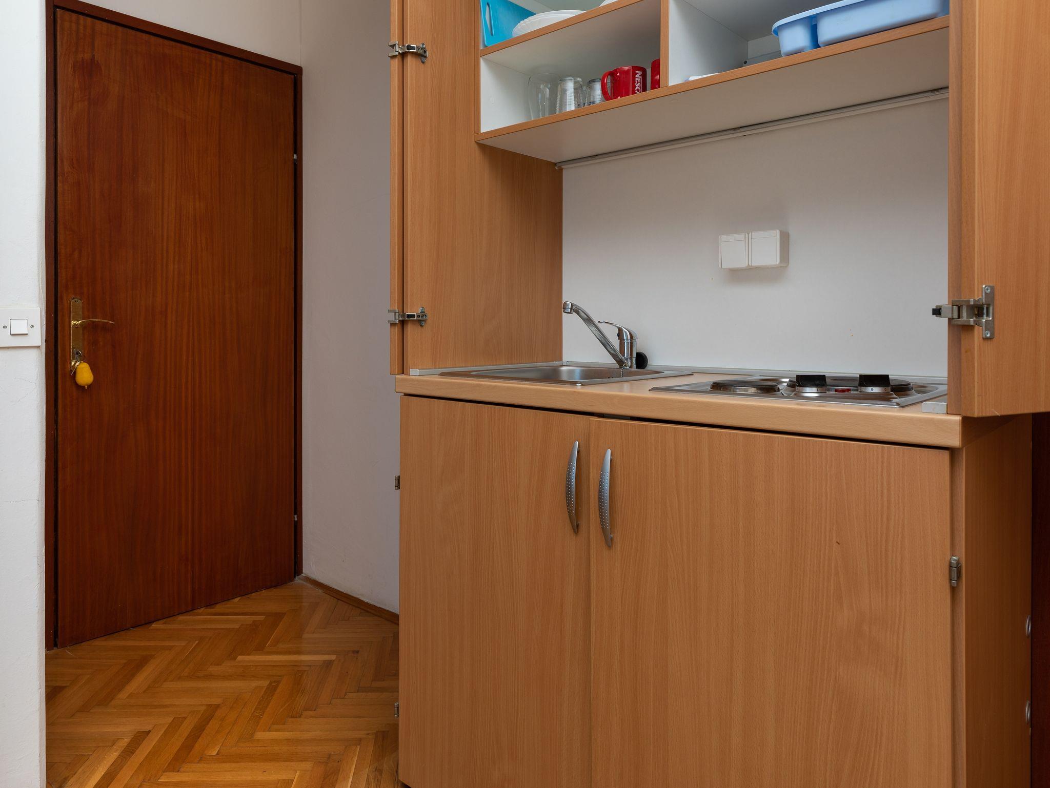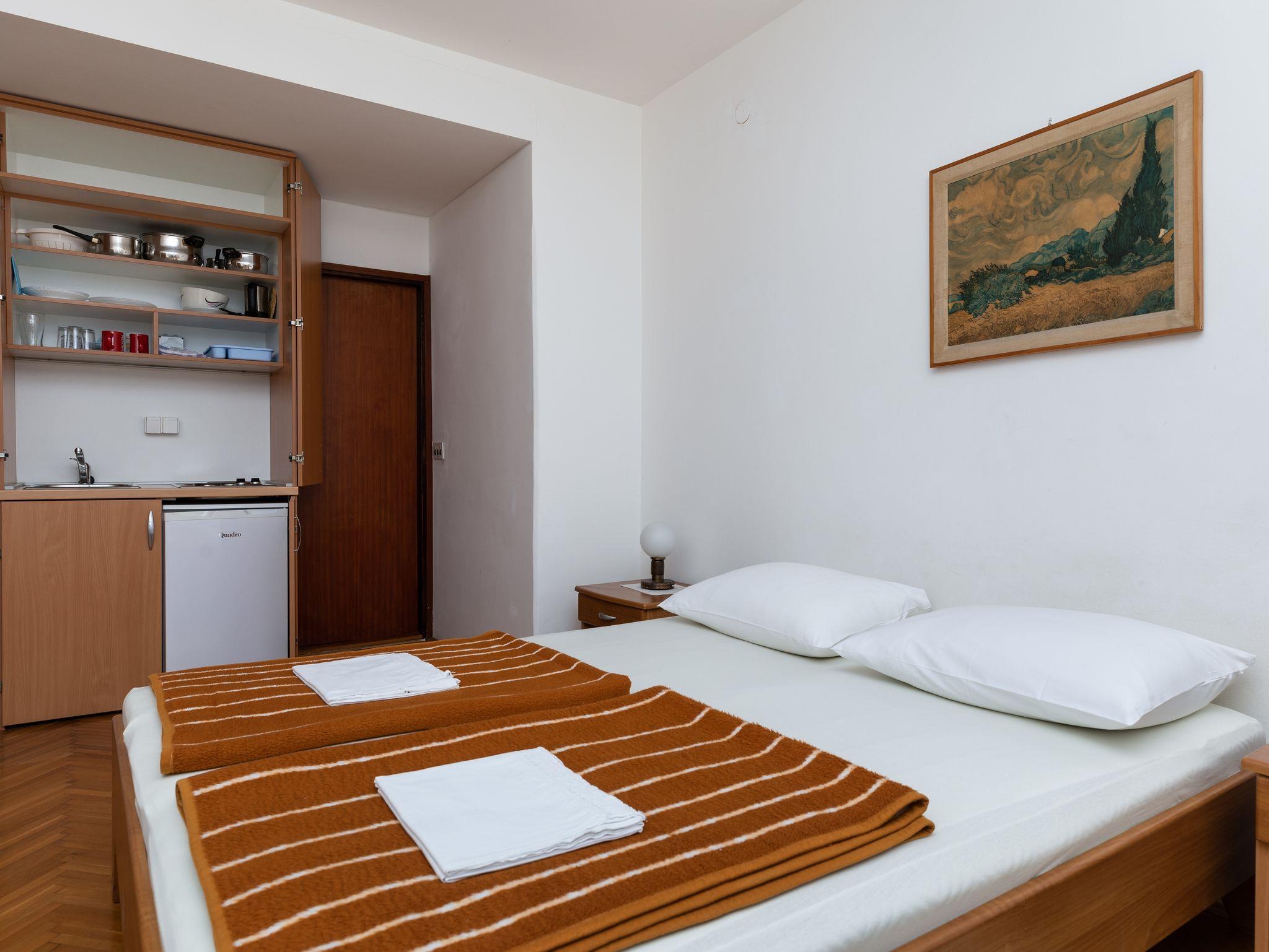 Studio bietet Platz für 2 Gäste. Die Betten sind in Schlafzimmern, die es 1 gibt, innerhalb einer Gesamtfläche von 19m2, angeordnet. Die Gäste haben einen eigenen Balkon zur Verfügung, auf der sie in warmen Sommernächten genießen können. Das Studio-Apartment bietet Meerblick. Es ist erlaubt, Speisen auf dem Gemeinschafts-Grill vorzubereiten. In der Unterkunftseinheit besteht die Möglichkeit des Mitbringens von Haustieren gegen Aufpreis. IM PREIS INBEGRIFFEN: Kurtaxe, Endreinigung, Parkplatz, Internet, Wäschewaschen, Kinderbett, Bügeleisen, Föhn, Sonnenschirm. VERBINDLICHE ZUSÄTZLICHE KOSTEN: Aufzahlung für Kurzaufenthalte (prozentualer Zuschlag pro Nächtigungsanzahl: 30% - 1, 20% - 2, 10% - 3). UNVERBINDLICHE ZUSÄTZLICHE KOSTEN: Klimatisierung (0,30 € pro Stunde), Haustiere (5,00 € pro Nacht). Die Verfügbarkeit zusätzlicher Dienstleistungen in Ihrem reservierten Termin und die Preise derselben (falls nicht aufgeführt) müssen im Voraus überprüft werden. Zusätzliche Dienstleistungen die in der Zahlungsaufforderung nicht aufgeführt sind werden direkt beim Vermieter bezahlt, angenommen der Gast nutzt auch diese.