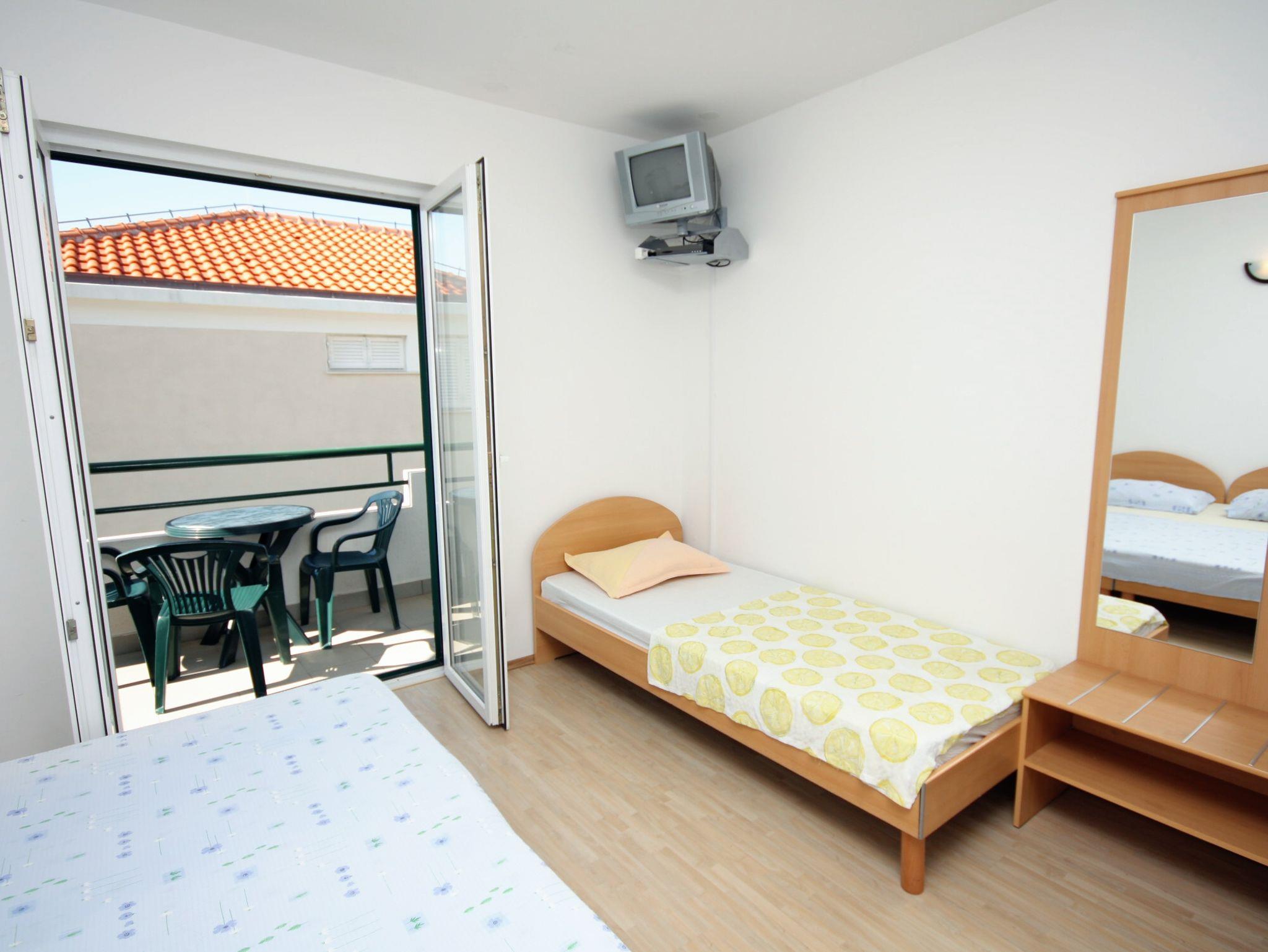 Studio bietet Platz für 3 Gäste. Die Betten sind in Schlafzimmern, die es 1 gibt, innerhalb einer Gesamtfläche von 20m2, angeordnet. Die Gäste haben eine eigene Terrasse zur Verfügung, auf der sie in warmen Sommernächten genießen können. Das Studio-Apartment bietet Meerblick. Es ist erlaubt, Speisen auf dem Gemeinschafts-Grill vorzubereiten. IM PREIS INBEGRIFFEN: Kurtaxe, Endreinigung, Klimatisierung, Parkplatz, Internet, Wäschewaschen, Bügeleisen, Bügelbrett, Föhn. VERBINDLICHE ZUSÄTZLICHE KOSTEN: Aufzahlung für Kurzaufenthalte (prozentualer Zuschlag pro Nächtigungsanzahl: 30% - 1, 20% - 2, 10% - 3). UNVERBINDLICHE ZUSÄTZLICHE KOSTEN: Zusatzbett (5,00 € pro Nacht). Die Verfügbarkeit zusätzlicher Dienstleistungen in Ihrem reservierten Termin und die Preise derselben (falls nicht aufgeführt) müssen im Voraus überprüft werden. Zusätzliche Dienstleistungen die in der Zahlungsaufforderung nicht aufgeführt sind werden direkt beim Vermieter bezahlt, angenommen der Gast nutzt auch diese.