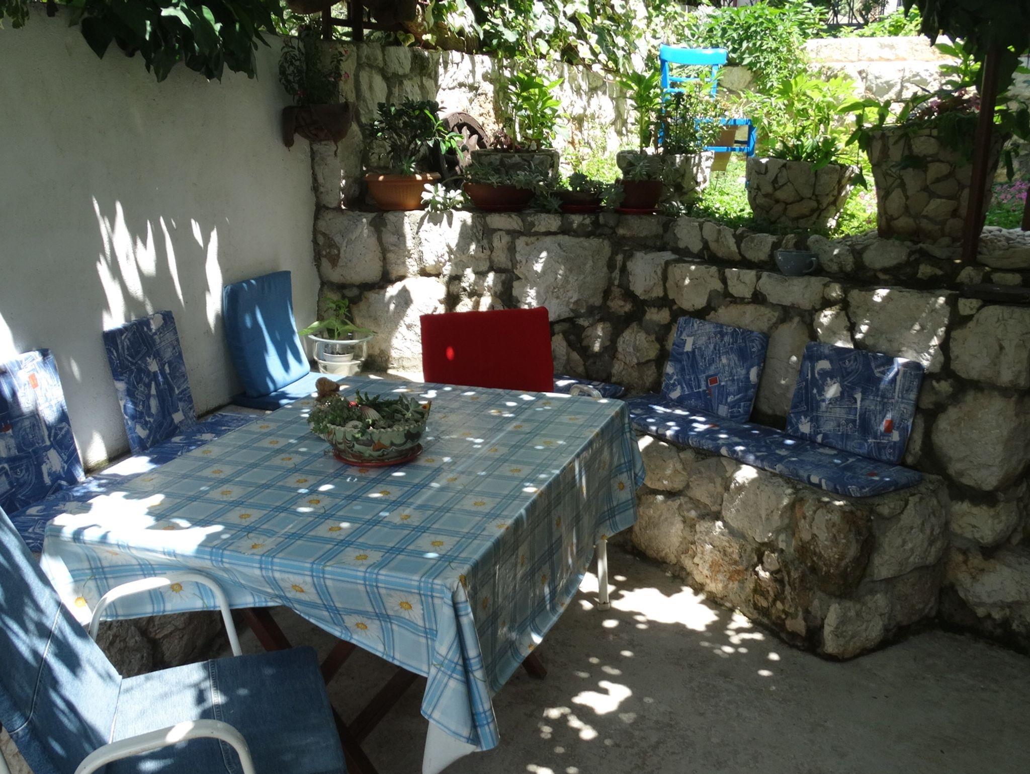Umgebung des Objekts (Ordentlich), Hof (600m2, Sitzbereich), Parkplatz (Anzahl der Parkplätze: 6, Entfernung vom Objekt: im Hof), Grill: gemeinsam, WiFi Internet, Wäschewaschen, Bügeleisen, Bügelbrett, Sonnenschirm, Liegestühle, Kinderbett