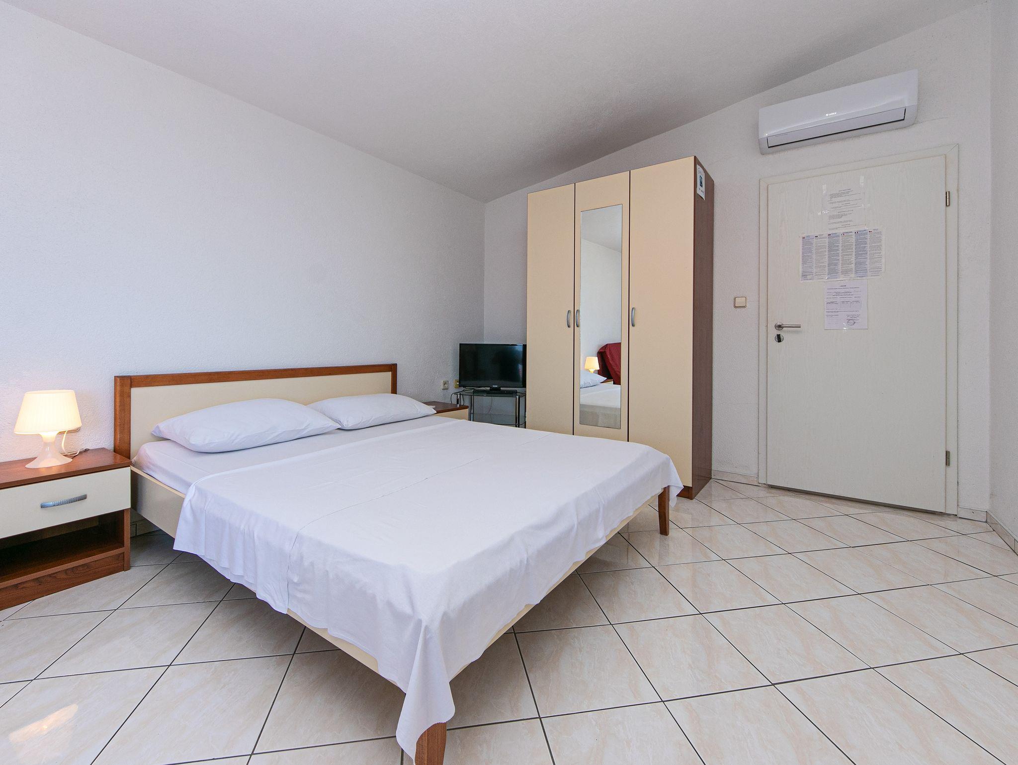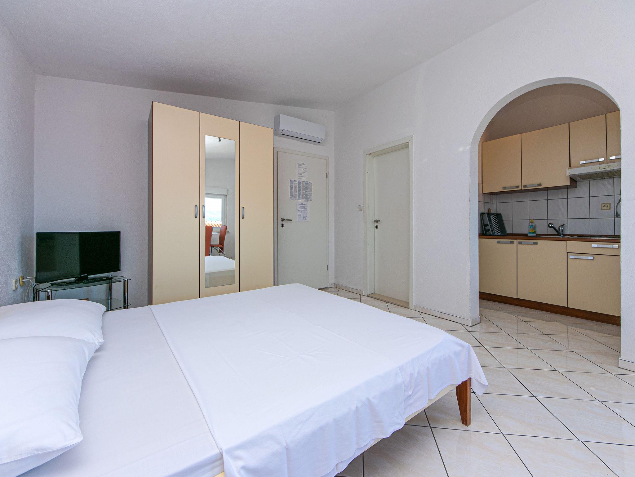 Studio bietet Platz für 2 Gäste. Die Betten sind in Schlafzimmern, die es 1 gibt, innerhalb einer Gesamtfläche von 27m2, angeordnet. Die Gäste haben eine eigene Terrasse zur Verfügung, auf der sie in warmen Sommernächten genießen können. Das Studio-Apartment bietet Meerblick. Es ist erlaubt, Speisen auf dem Gemeinschafts-Grill vorzubereiten. IM PREIS INBEGRIFFEN: Kurtaxe, Endreinigung, Klimatisierung, Garage, Internet, Kinderbett, Zusatzbett, Föhn, 2 Kinderbettchen (im Preis enthalten). VERBINDLICHE ZUSÄTZLICHE KOSTEN: Aufzahlung für Kurzaufenthalte (prozentualer Zuschlag pro Nächtigungsanzahl: 30% - 1, 20% - 2, 10% - 3). UNVERBINDLICHE ZUSÄTZLICHE KOSTEN: Wäschewaschen (5,00 € Waschen). Die Verfügbarkeit zusätzlicher Dienstleistungen in Ihrem reservierten Termin und die Preise derselben (falls nicht aufgeführt) müssen im Voraus überprüft werden. Zusätzliche Dienstleistungen die in der Zahlungsaufforderung nicht aufgeführt sind werden direkt beim Vermieter bezahlt, angenommen der Gast nutzt auch diese.